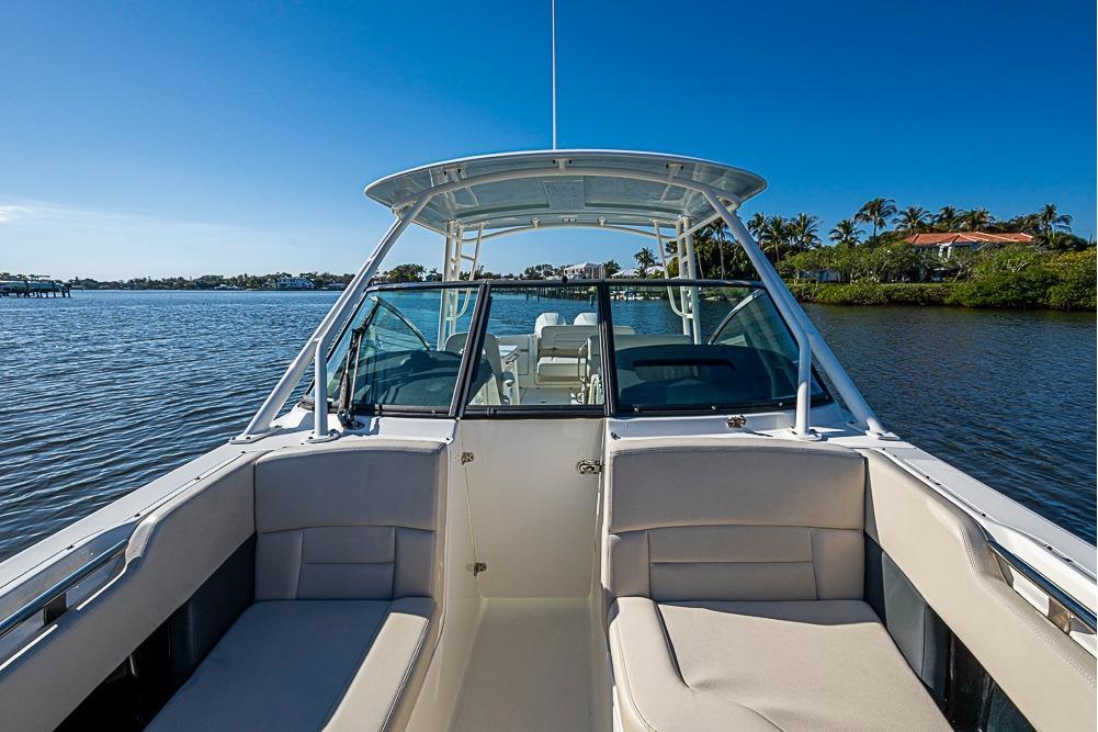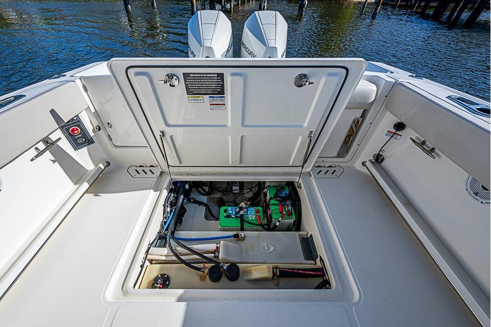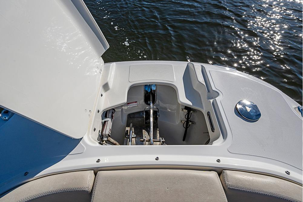 - Console storage with stainless steel latch with storage system for life jackets, dock lines, fenders