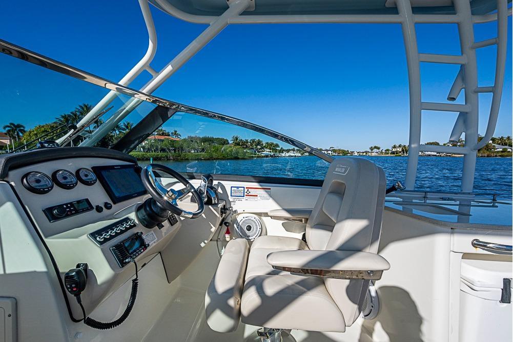- Deluxe custom Boston Whaler helm seat with high/low pedestal