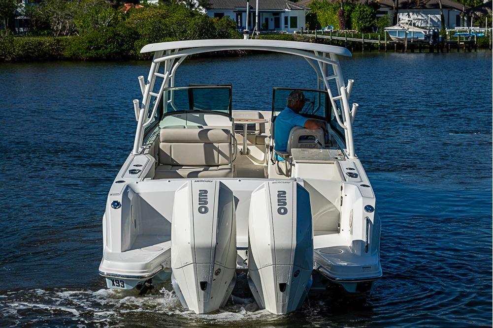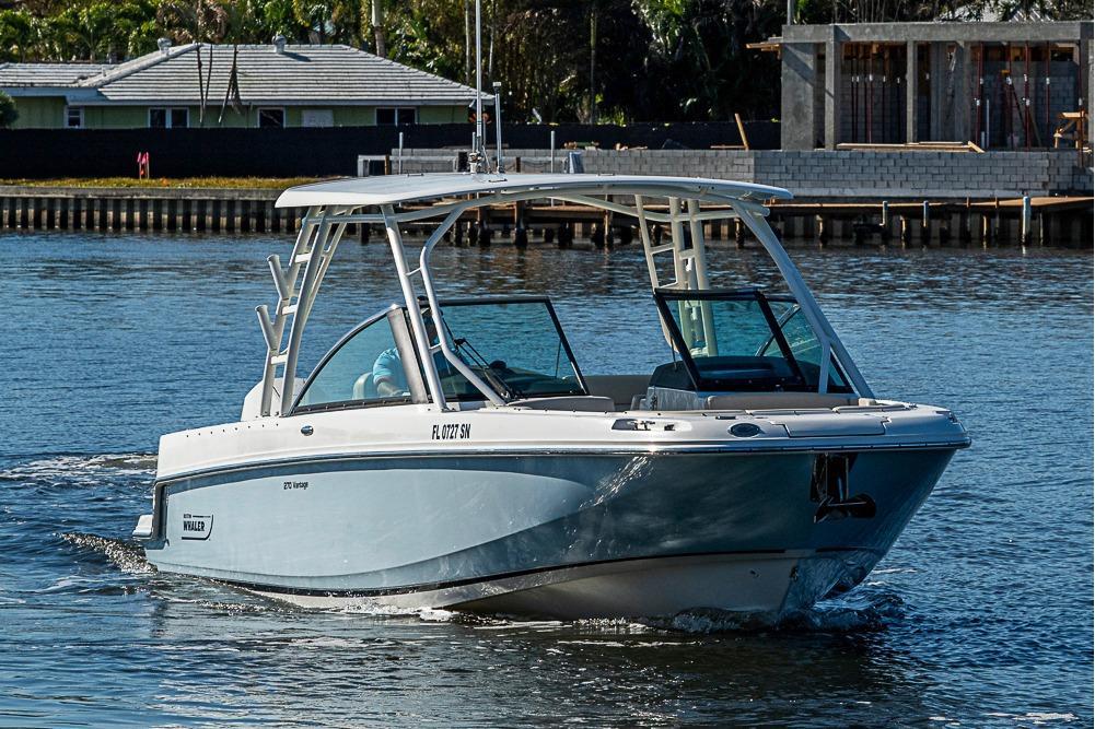 Beyond providing incredibly smooth, predictable handling and unmatched ride quality, the 270 Vantage® is equipped for every activity you and your crew can dream up. Eager for saltwater fishing? Craving watersports action? Entertaining friends? This dual-console has you covered. Boston Whaler knows what you need and makes sure the 270 Vantage is ready for everything you might do. Optional Fishing Package features a 19-gallon lighted livewell, a fishing station and stainless-steel transom-mounted rod holders. Upgraded 250hp Mercury V8 DTS White Verados Raymarine Hybrid Touch GPS, Fishfinder