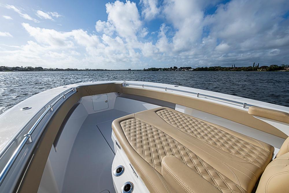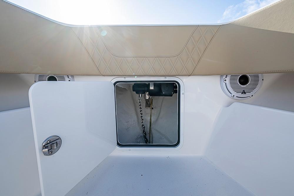 - Fiberglass leaning post with tackle storage and slide out cooler