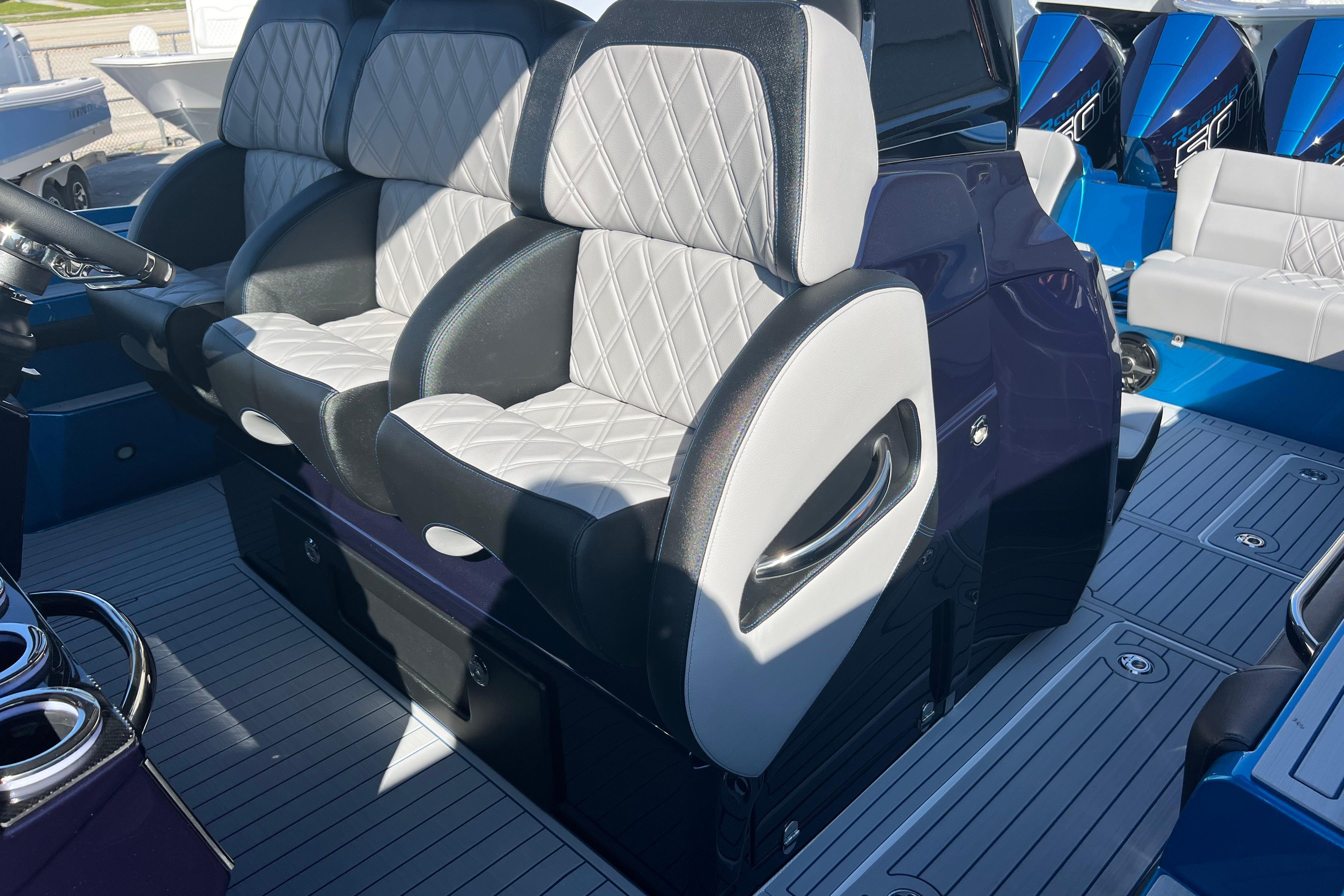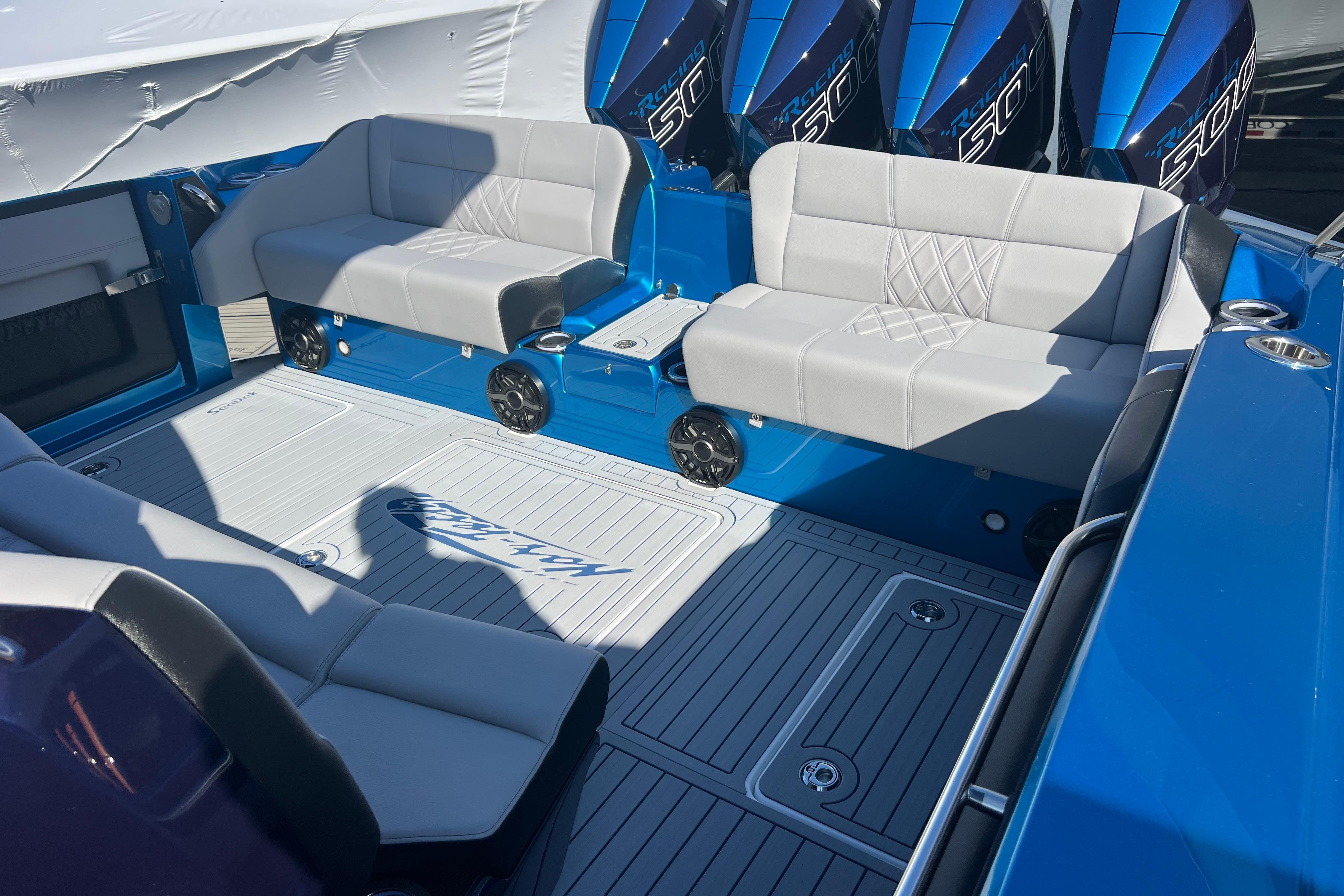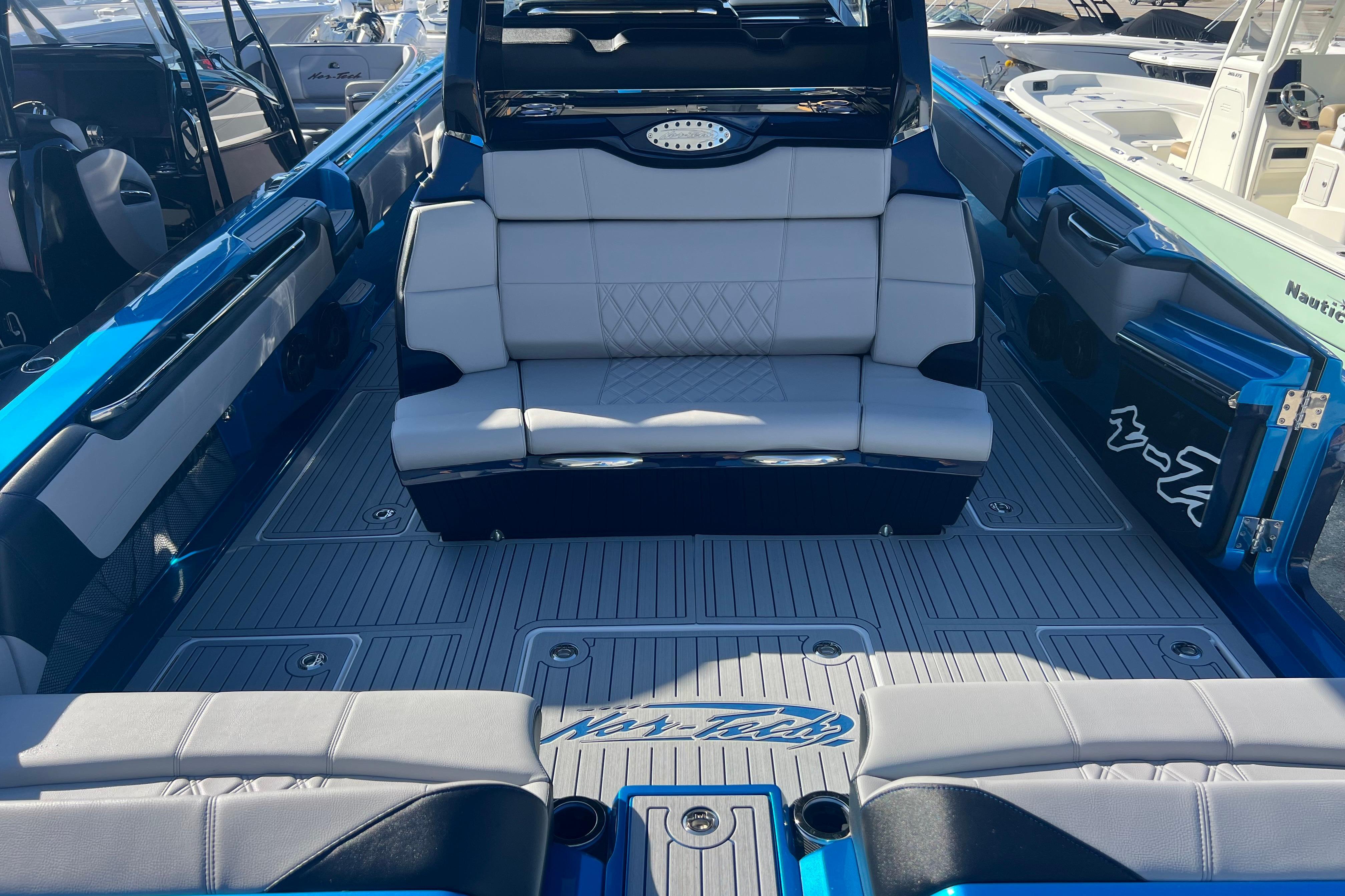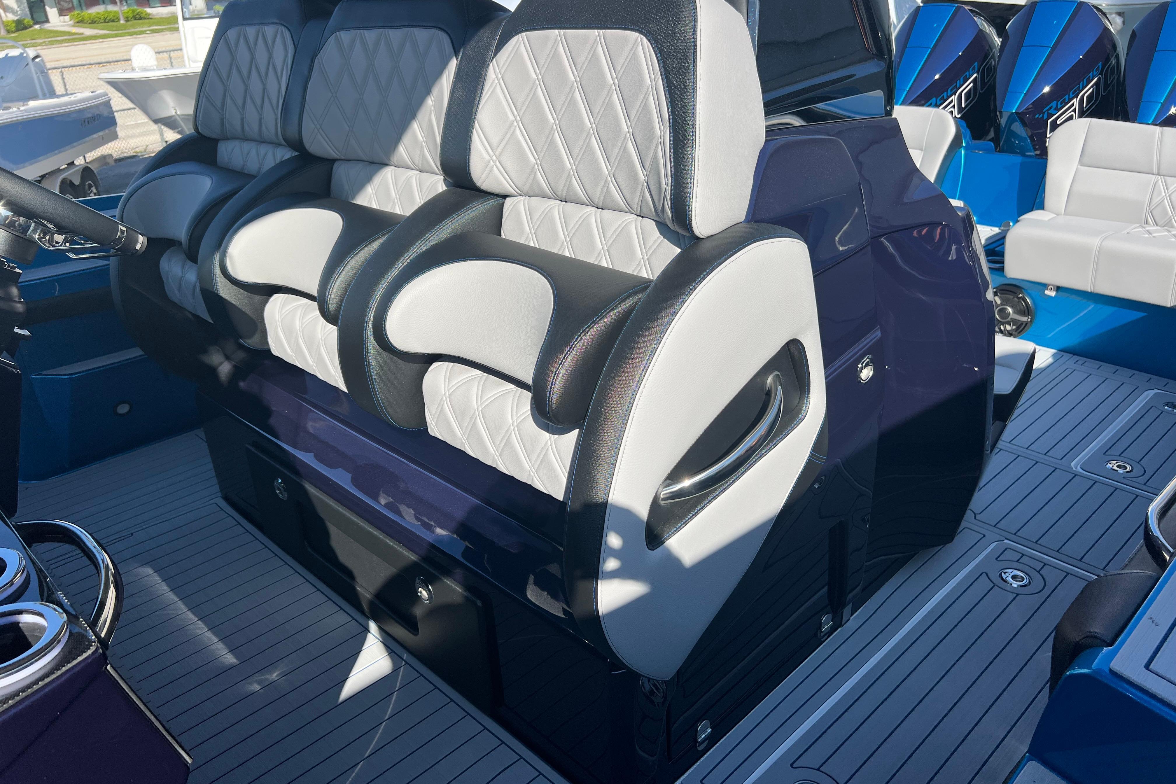 This Nor-Tech 450 Sport Center Console is here at the dealership right now and it is absolutely beautiful! The boat has a Sea Keeper 6 Gyro Stabilizer in it and is powered by Quad 500 HP Mercury Racing Engines. The boat has two Garmin 9622's flush mounted in the dash, Auto Pilot, FLIR Night Vision, Radar, VHF Radio, XM Weather & Radio, and 1KW Transducer. It has the Upgraded Premium Stereo System and the Sure Shade - Power Retractable. The cabin is Air Conditioned and has an enclosed Head & Shower. It has large windows that give you a very open feel inside. The seating in the rear of the boat is very large and comfortable. There is a Northern Lights Generator - Diesel, which is in an easily accessible compartment under the rear seat. The bow has the Electric Table and a Bow Thruster. There is Sea Deck flooring throughout the boat. Custom Painted Graphics, Paint console, Helm Seat, & Interior walls. The engines are hooked up to a Reverso Flush System making it very easy to flush the engines. Other options include, Bar w/ Cold Plate, Marine Guardian Security System, Black Oak LED Light Bar, & Underwater Lights color changing.