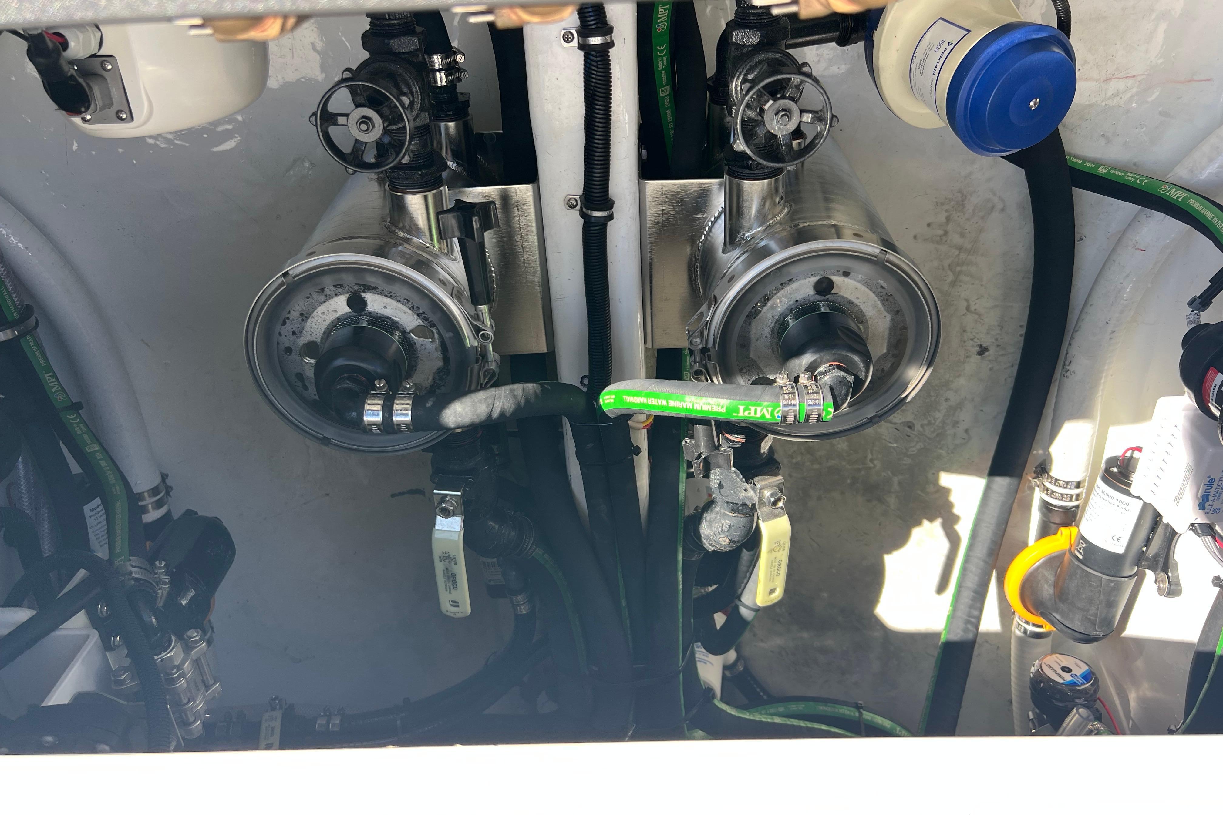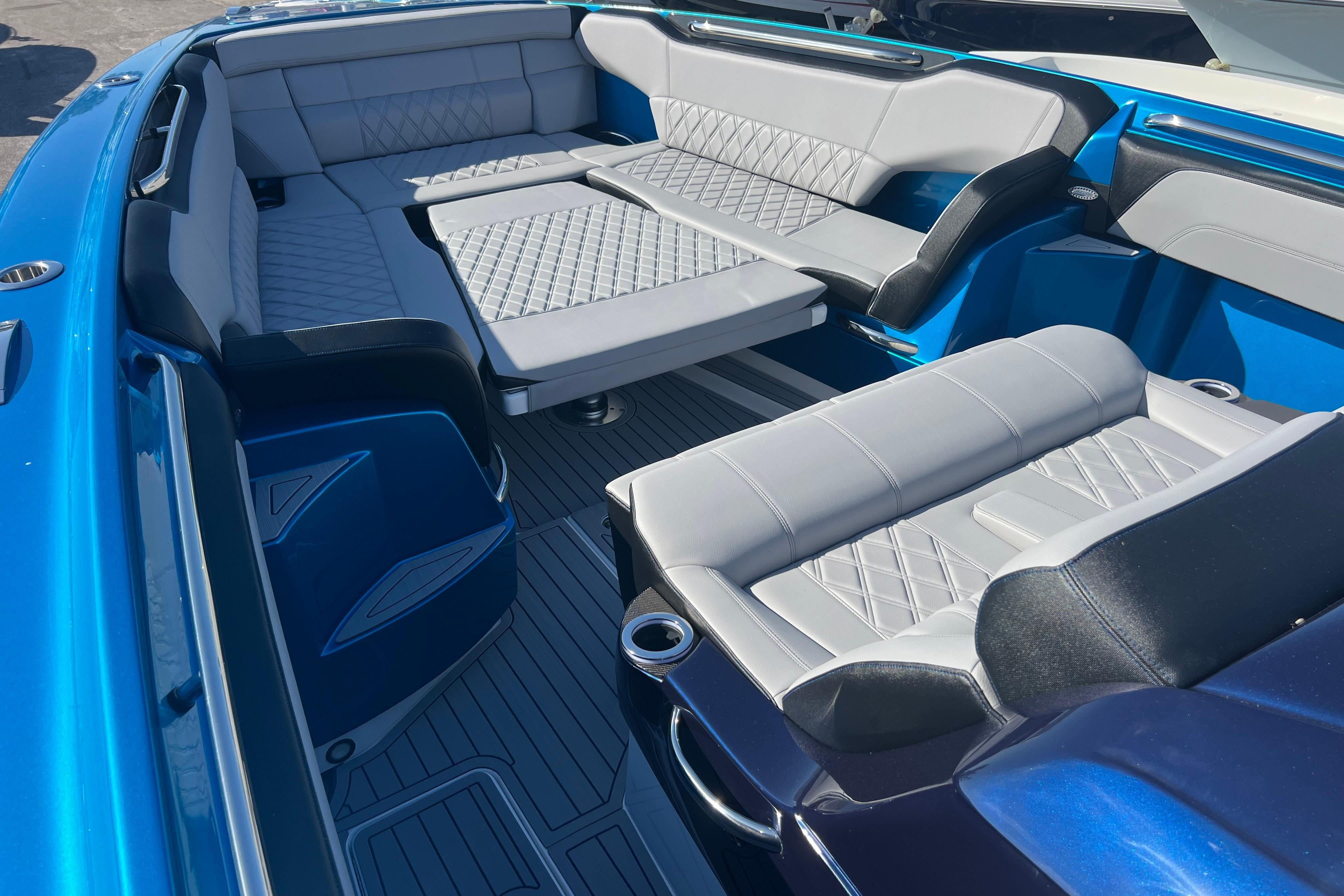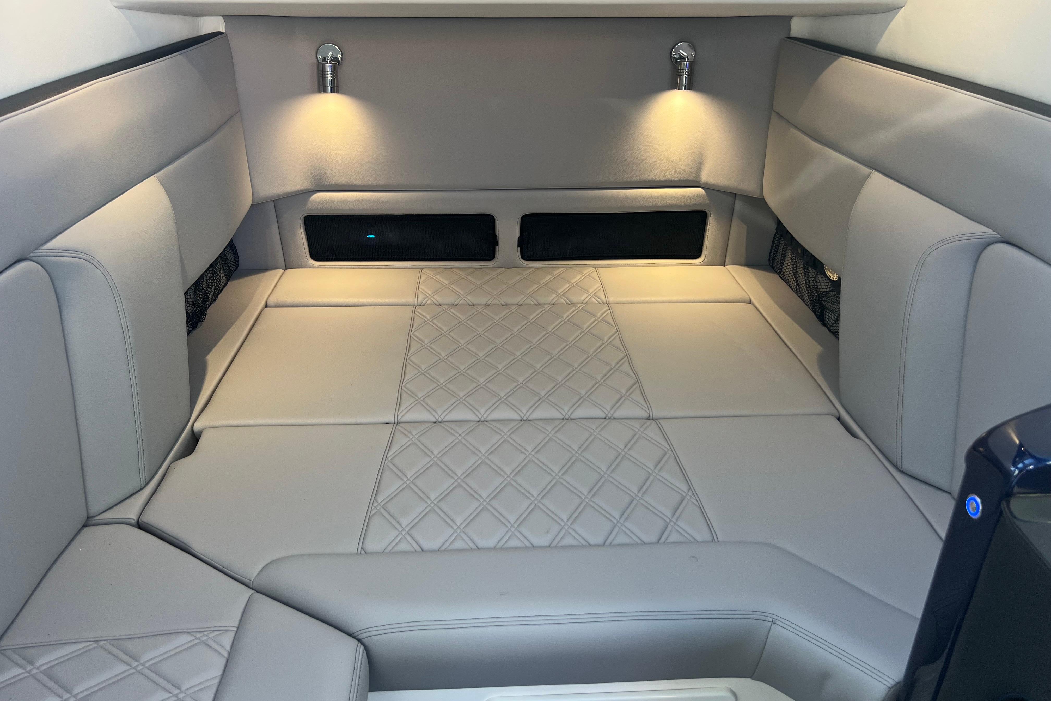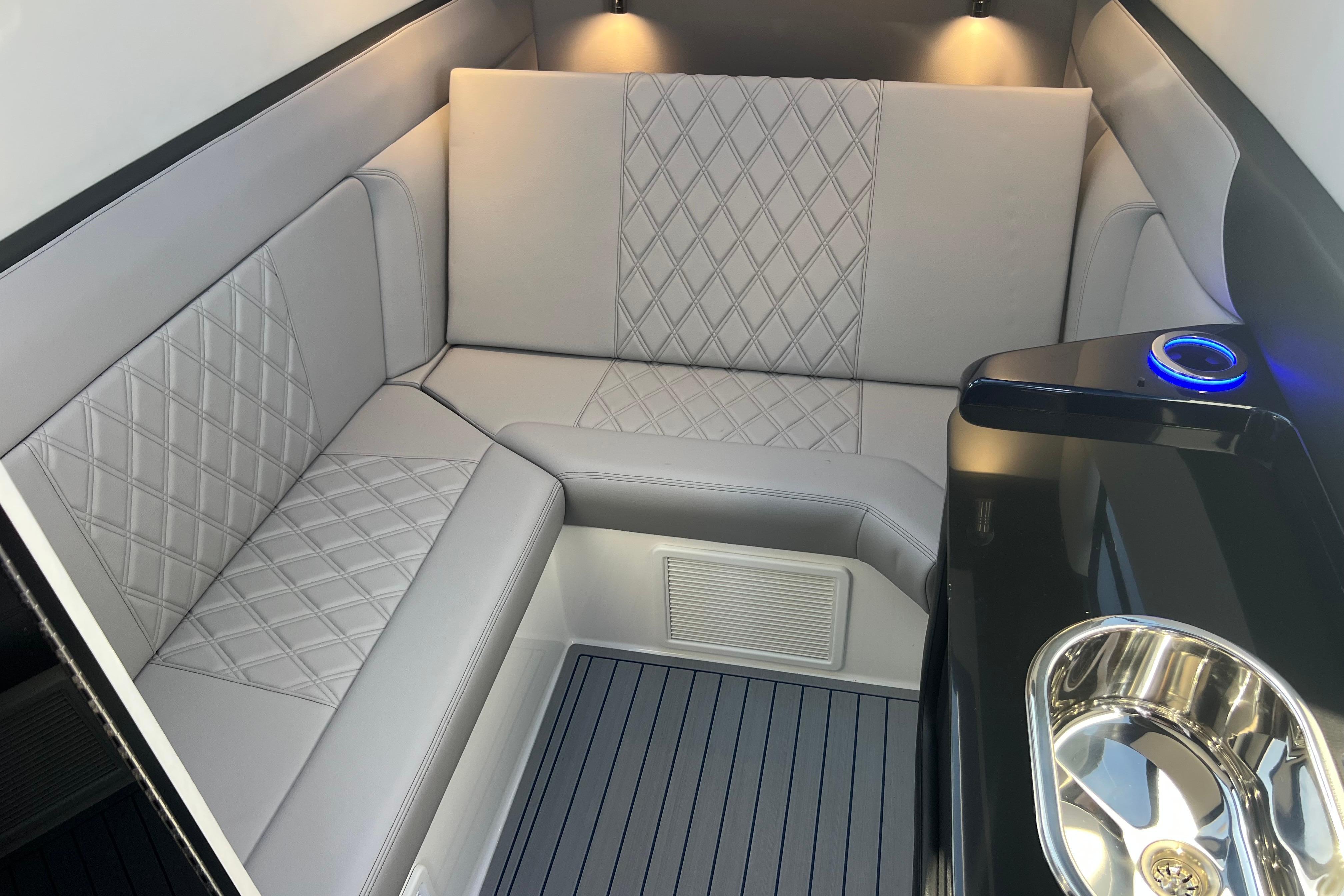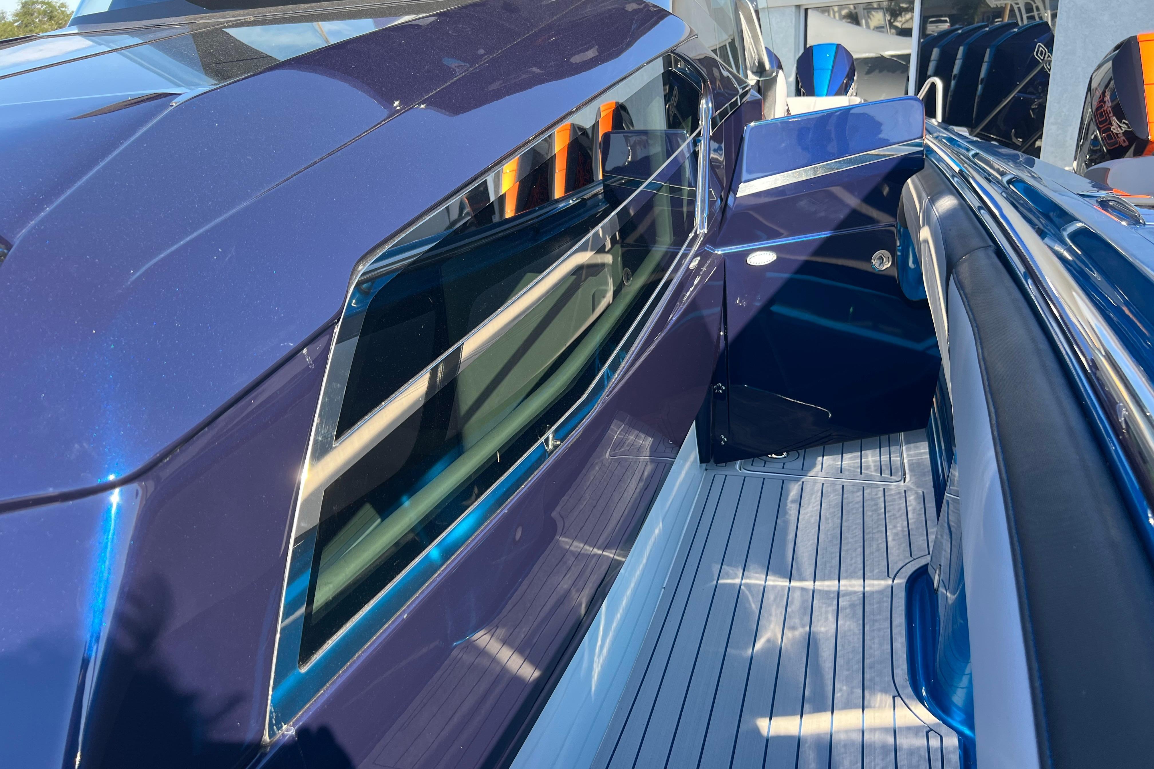 This Nor-Tech 450 Sport Center Console is here at the dealership right now and it is absolutely beautiful! The boat has a Sea Keeper 6 Gyro Stabilizer in it and is powered by Quad 500 HP Mercury Racing Engines. The boat has two Garmin 9622's flush mounted in the dash, Auto Pilot, FLIR Night Vision, Radar, VHF Radio, XM Weather & Radio, and 1KW Transducer. It has the Upgraded Premium Stereo System and the Sure Shade - Power Retractable. The cabin is Air Conditioned and has an enclosed Head & Shower. It has large windows that give you a very open feel inside. The seating in the rear of the boat is very large and comfortable. There is a Northern Lights Generator - Diesel, which is in an easily accessible compartment under the rear seat. The bow has the Electric Table and a Bow Thruster. There is Sea Deck flooring throughout the boat. Custom Painted Graphics, Paint console, Helm Seat, & Interior walls. The engines are hooked up to a Reverso Flush System making it very easy to flush the engines. Other options include, Bar w/ Cold Plate, Marine Guardian Security System, Black Oak LED Light Bar, & Underwater Lights color changing.