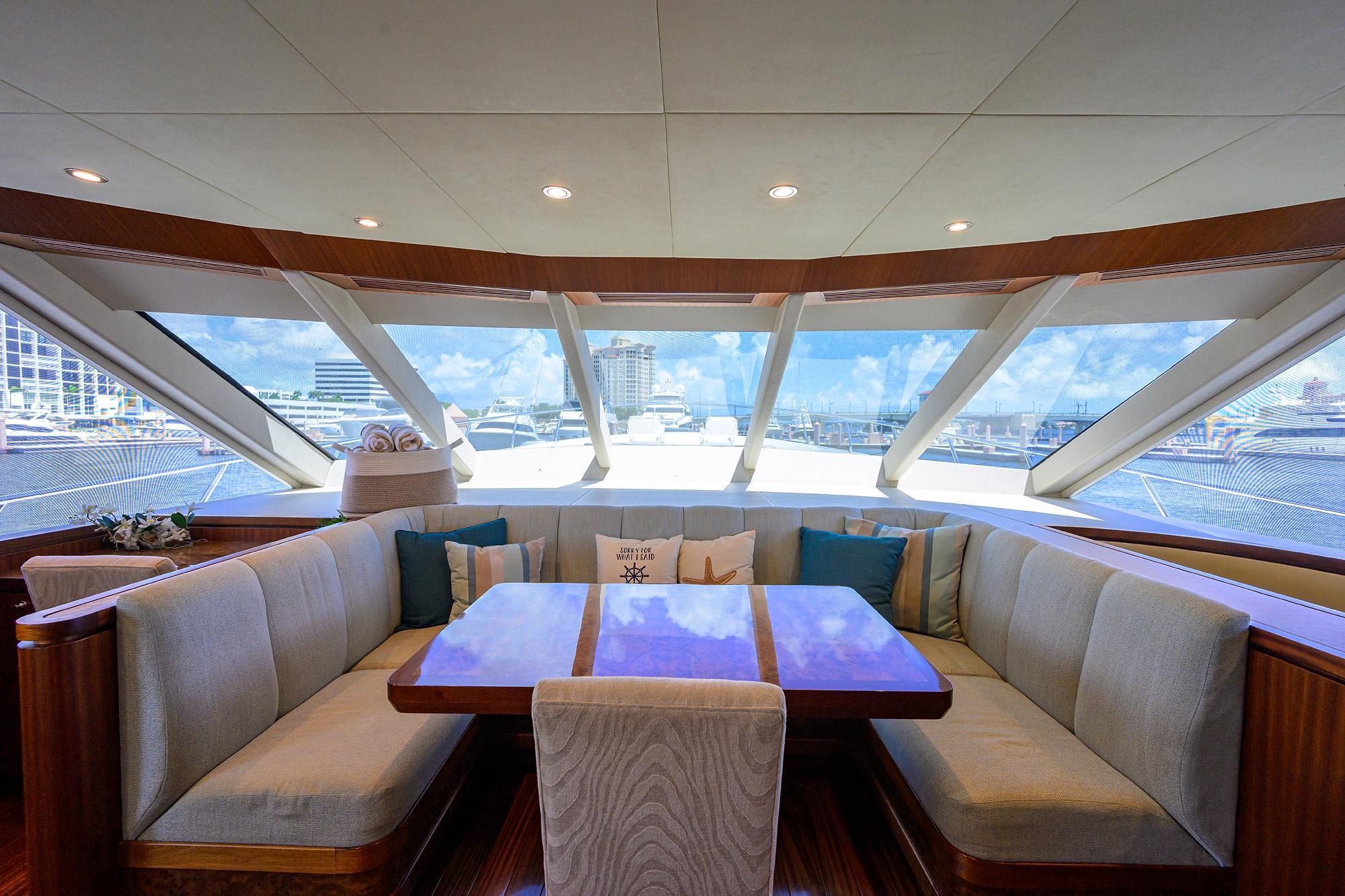 - Tempered and safety glass (1/2” in fwd PH, 3/8” other areas) which is 80% stronger than normal glass and with a safety sandwich for protection against broken shards. Glass is Low-E glass which increase energy efficiency by 25%+ and is UV stabilized for reduction of fading and degradation of a yacht's interior and health of occupants due to harmful UV rays