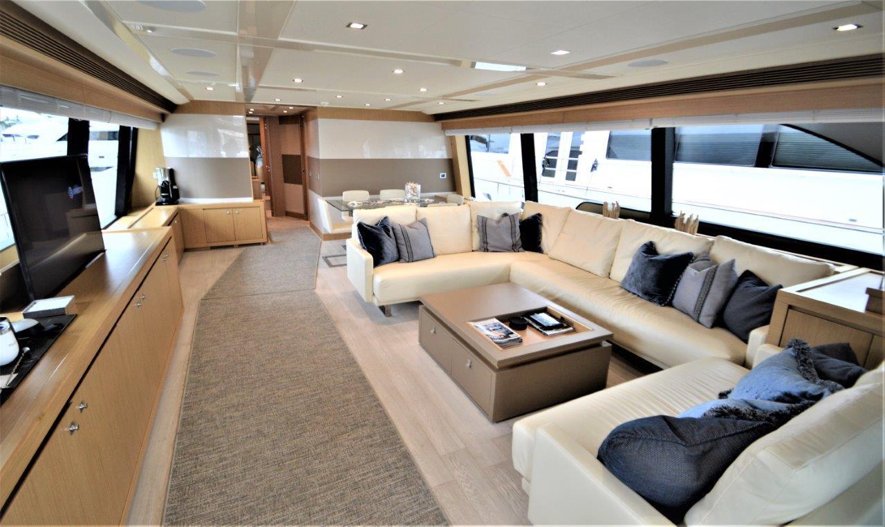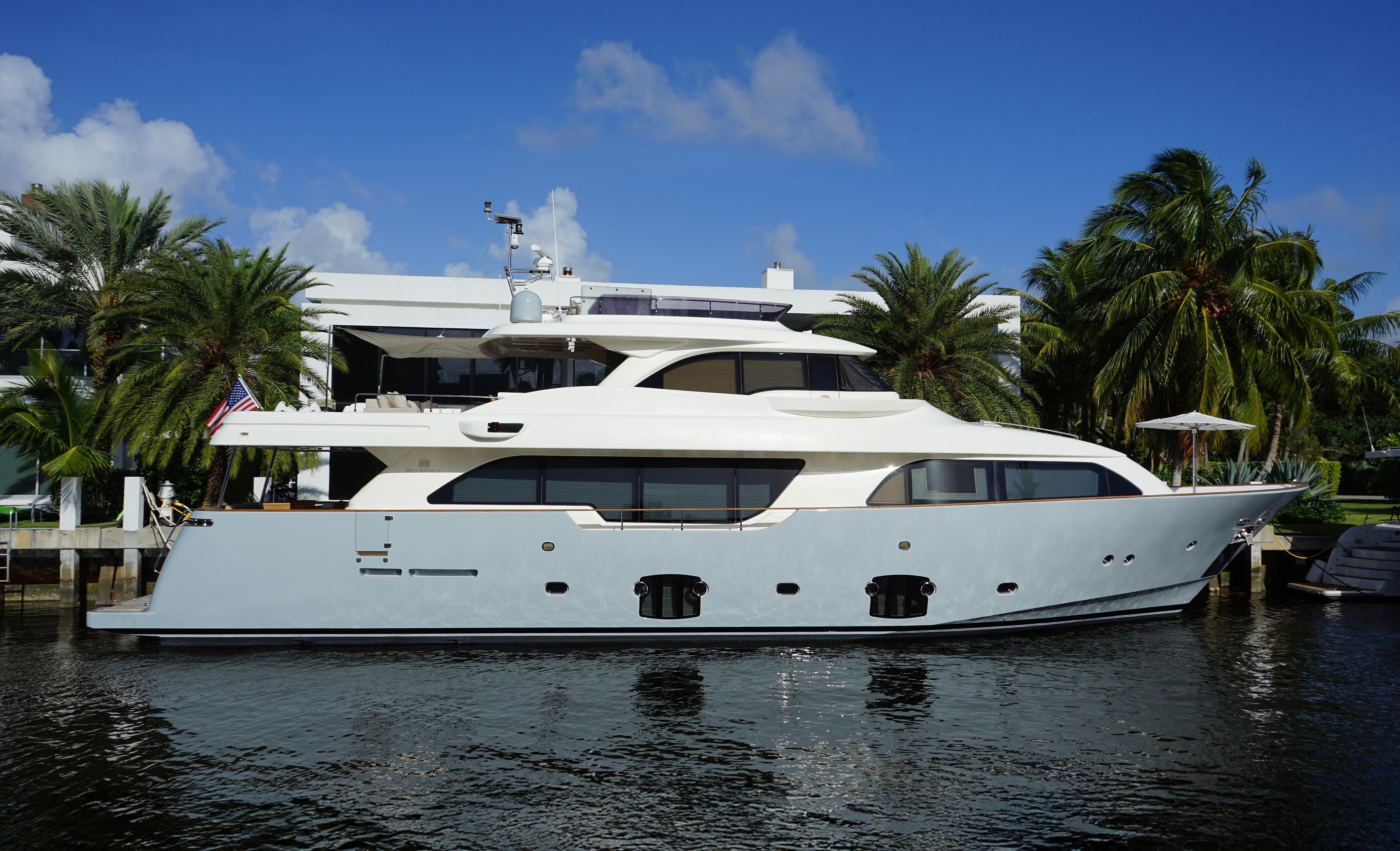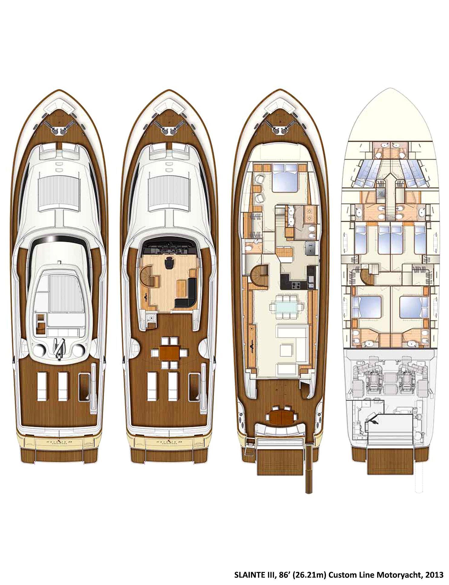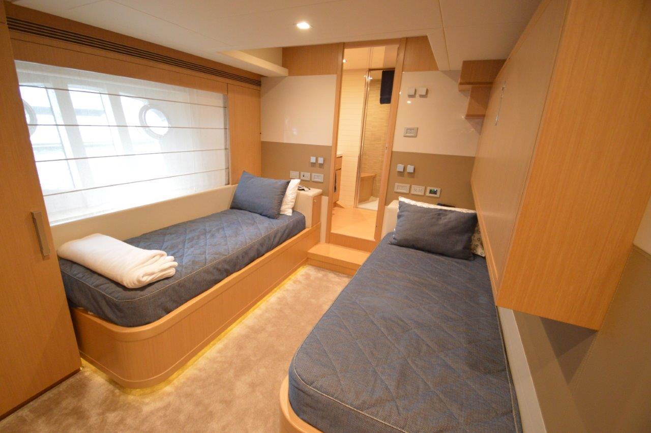 2013 Custom Line Navetta 26 ''SLAINTE III" SLAINTE III is without a doubt, the cleanest and closest to near perfect 26m Navetta anywhere in the world. A full time crew of 3 and a non-budget type of owner has kept her in this condition since it was purchased. SLAINTE III has been updated and serviced better than any boat out there.Loaded with options such as gyro and stabilizers, full electronic package, AC converter for 50 or 60 cycle, VS spec.On-Deck Master. A must see by the most discriminating buyer!The salon area is fitted with a white-stained oak wood floor throughout complimenting the cherry wood walls. Six large windows allow for natural light to enter both spaces.Sleeps up to 12 in the owner's party in 5 staterooms, plus crew accommodations for up to 4 in 2 cabins