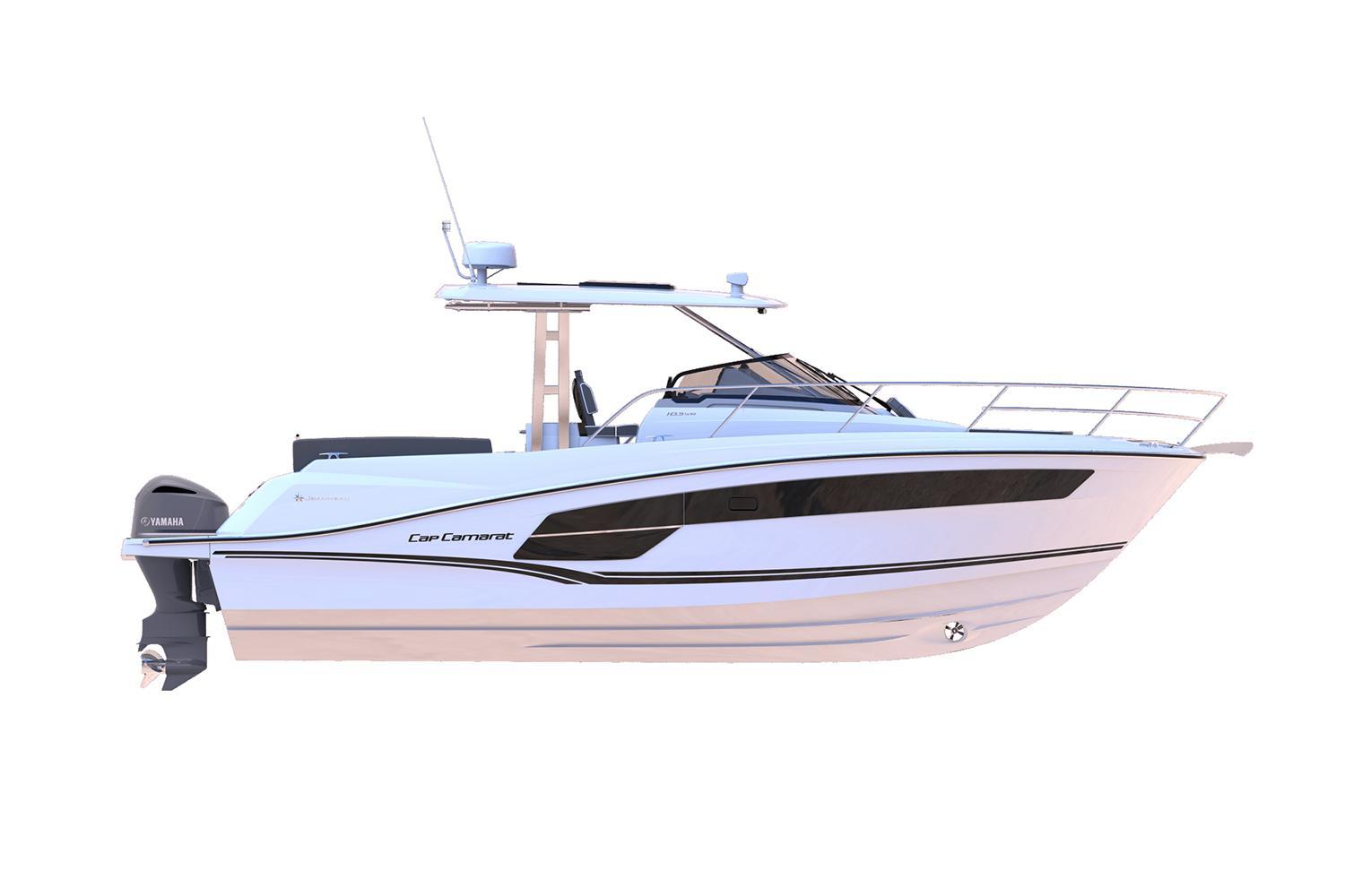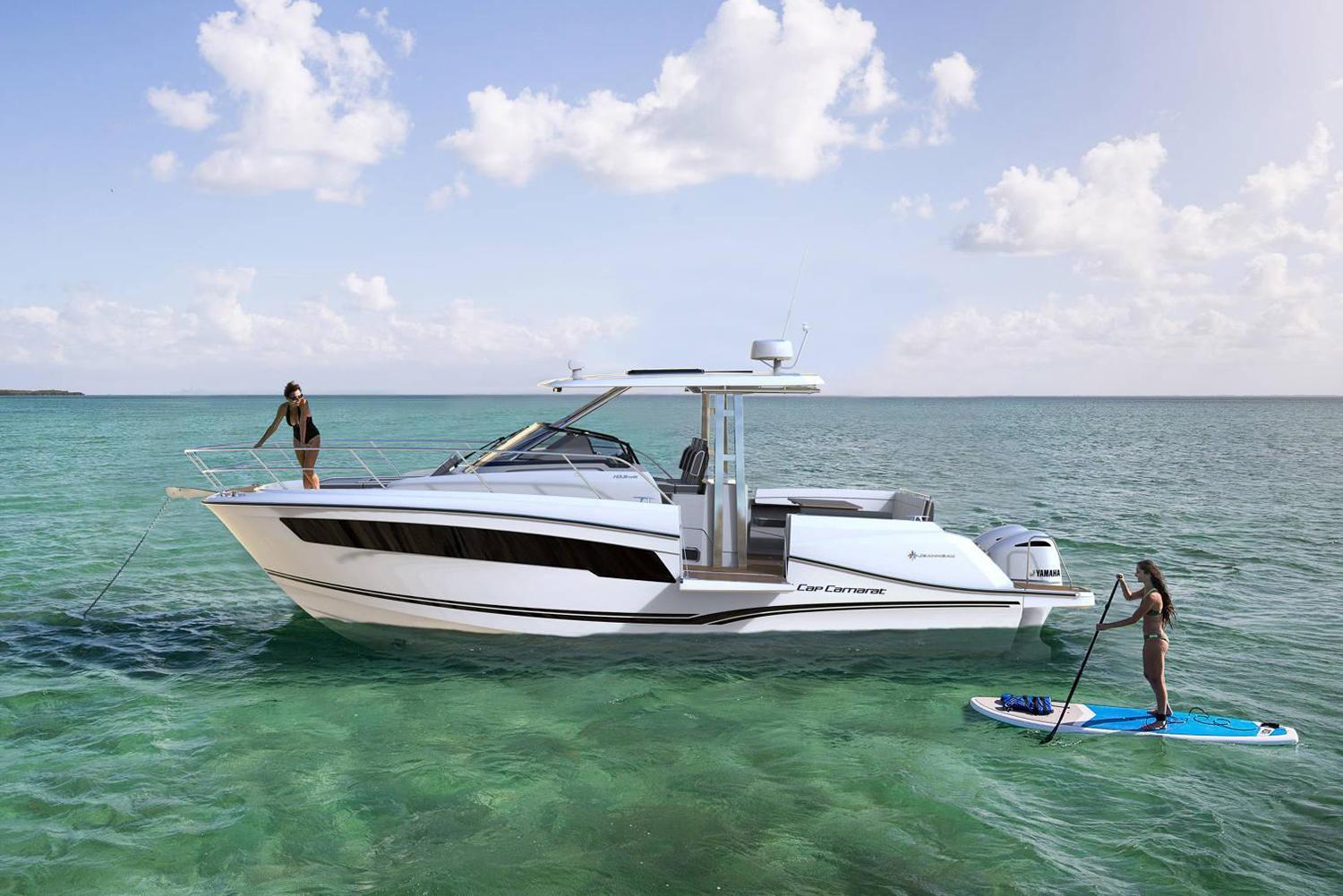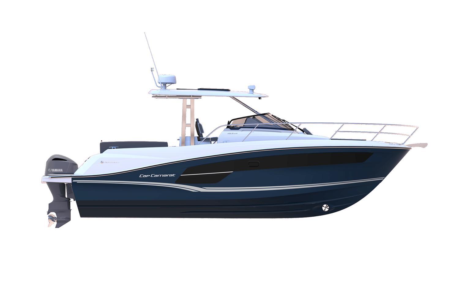 CAP CAMARAT 10.5 WA SERIES 2SPORTY CRUISING WITH FAMILY AND FRIENDSIn day boat mode, whether out on the water with friends or cruising with family, Cap Camarat 10.5 WA Series 2 has but one goal: to enable you to take full advantage of the sun and the sea. SEANAPPS Technology on board.SPORTY CRUISING AND ABUNDANT TIME OUT ON THE WATERWith the Cap Camarat 10.5 WA Series 2, wait no longer to explore small creeks or to make long-er crossings. With a cruising speed of 20 knots, and peak speeds at over 40, the V-shaped hull designed by Michael Peters brings more strength and rigidity to this sport boat. Once at anchor, there is something for everyone: a forward cockpit with three integrated chaise lounges perfect for relaxing, an opening terrace on port to create an additional swim platform equipped with a swim ladder, a convertible aft cockpit with removable table, all for you to choose in function with your plans.LIFE ON BOARD MADE EVEN EASIERThe Cap Camarat 10.5 WA Series 2 invites you to extend your stopovers on the water in the greatest comfort. Perfectly integrated into the profile of the boat, the optional T-top enables you, with the addition of a sun awning aft, to dine in the shade. The outdoor galley, backing the seats of the helm station, includes a fridge, electric grill, a gas burner, storage, or even a live well to hold the catch of the day. Down below, optionally equipped with air conditions, the spacious and comfortable interior also features a second separate cabin aft. Forward, the traditional breakfast nook converts into a V-berth with separation curtain. This day boat has everything to give you a taste of cruising and nights at sea.