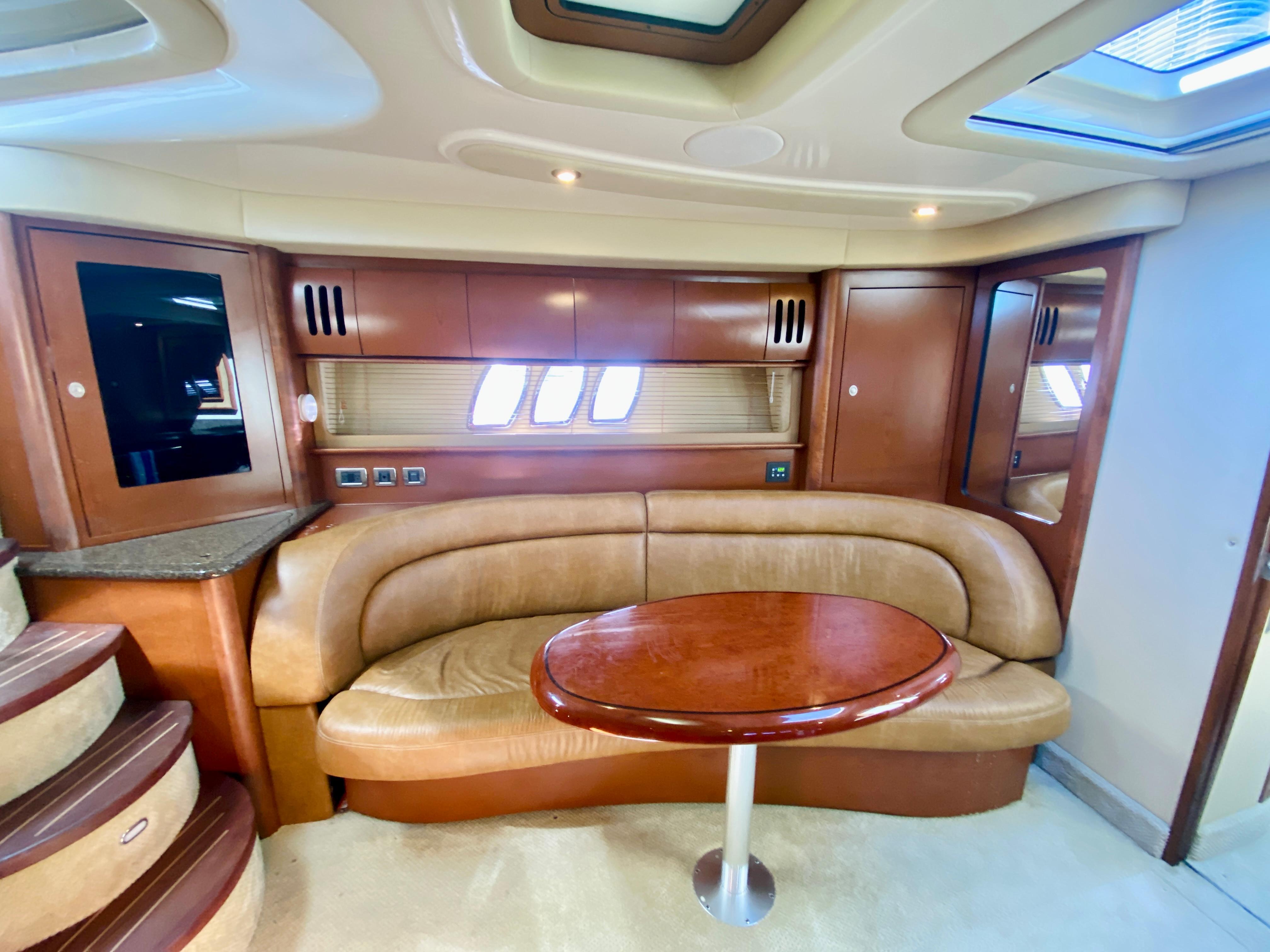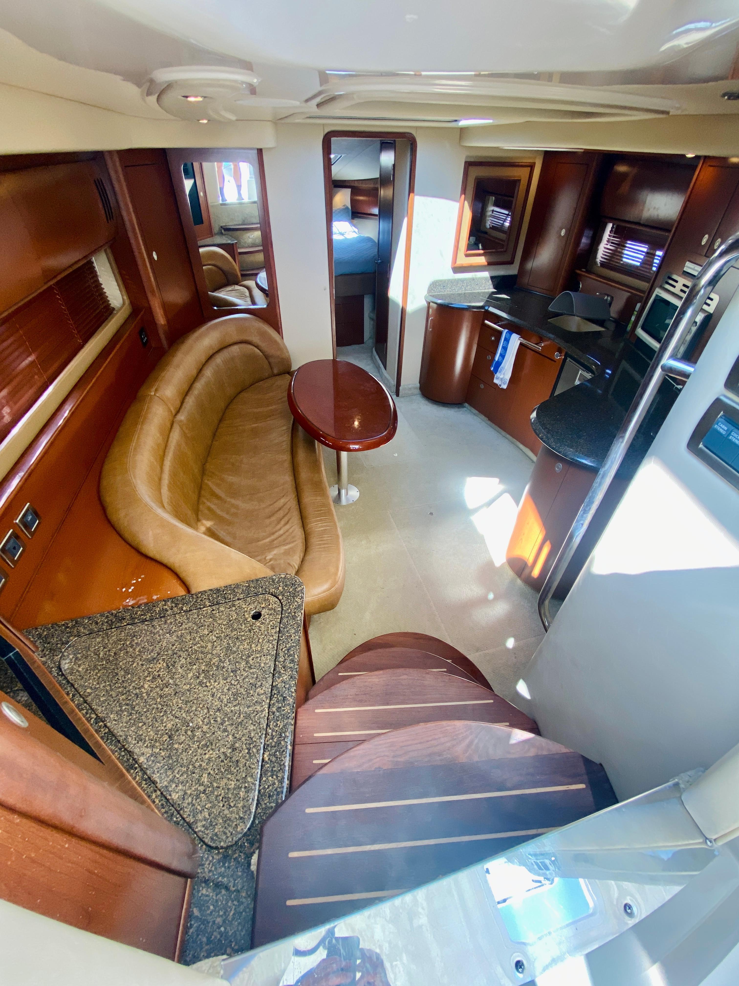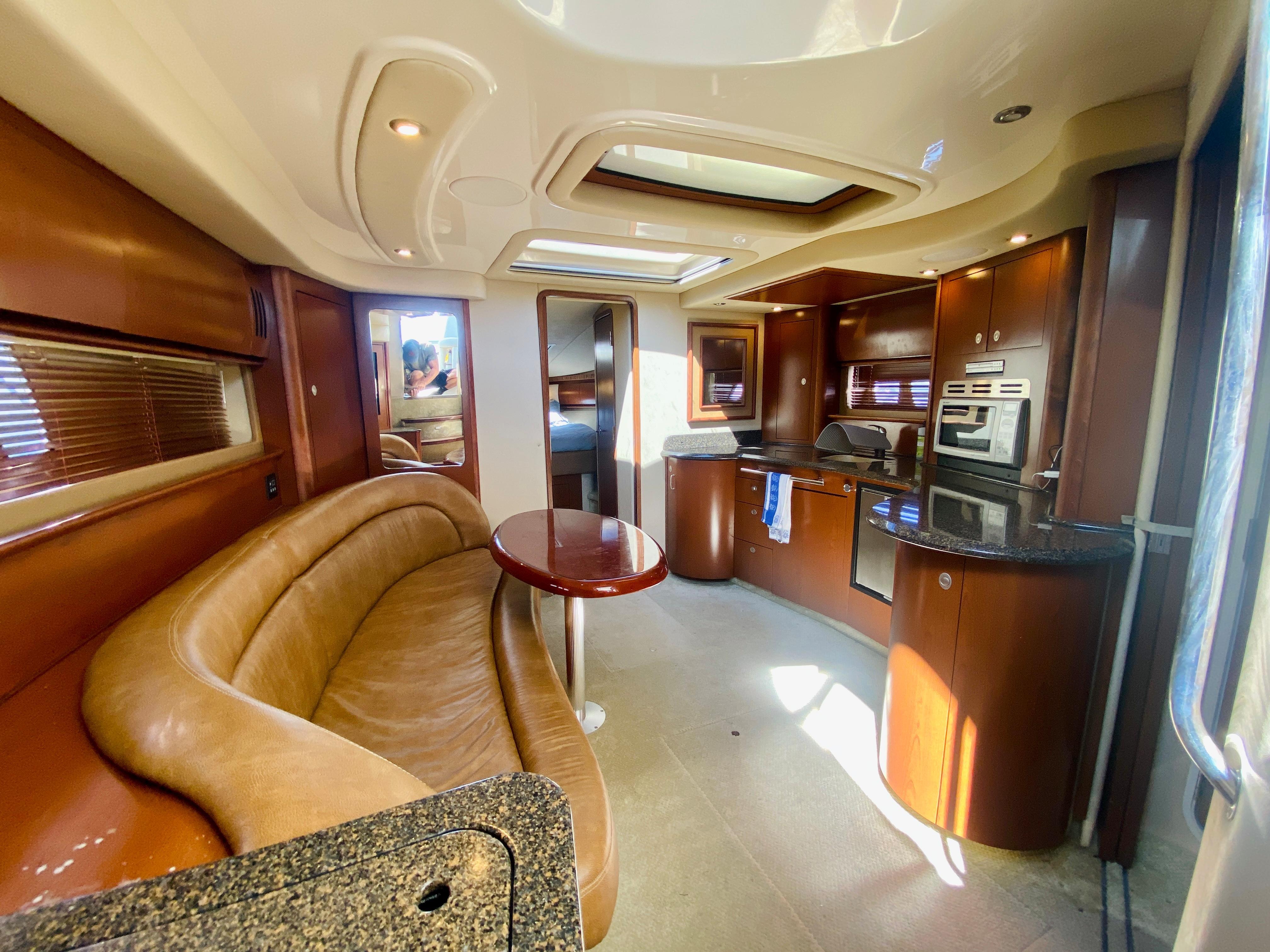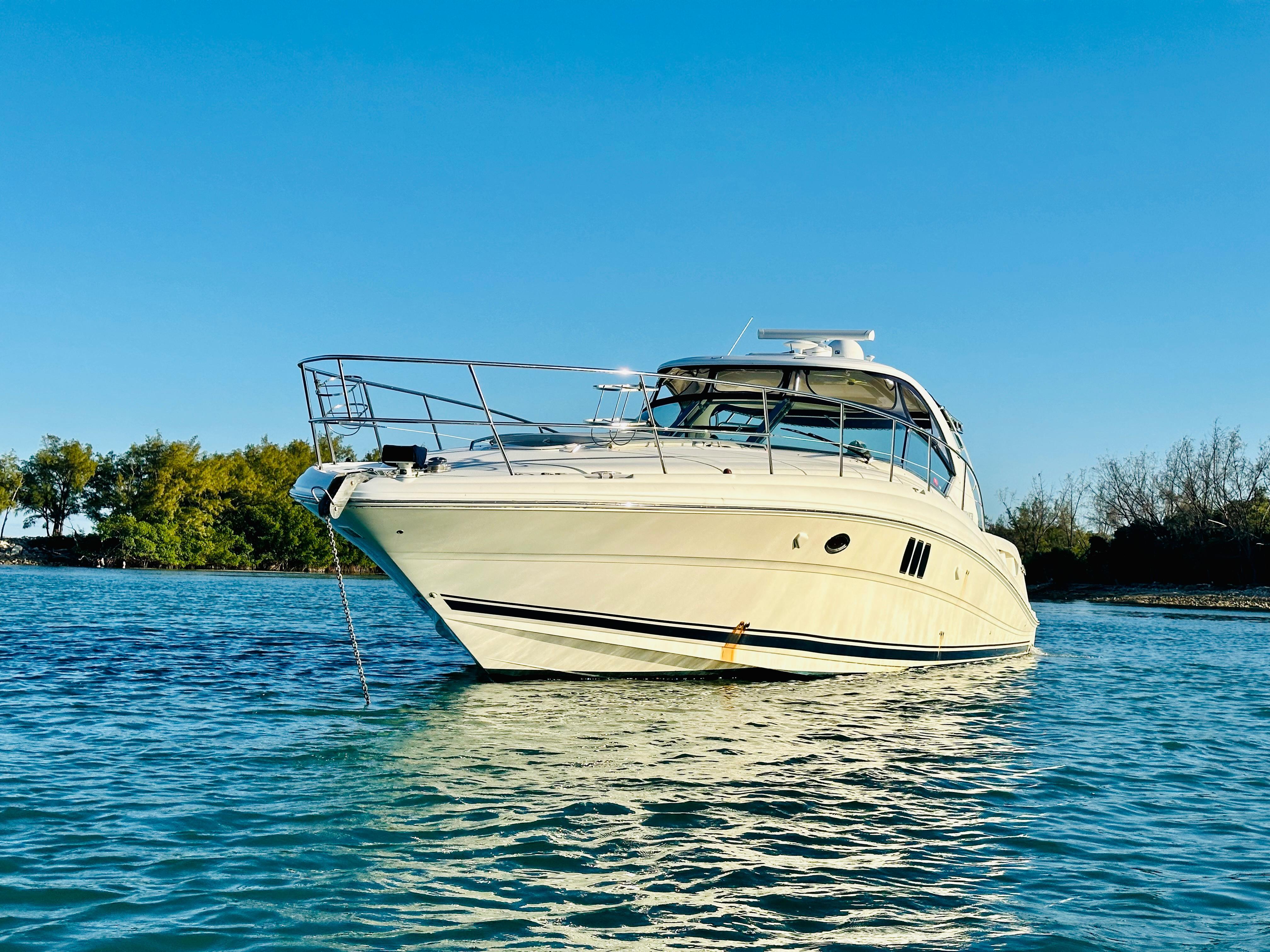 Sleek styling, a large, comfortable cockpit and a luxurious interior that sleeps plenty are just the right formula for endless fun in the 44 Sundancer. A wealth of instrumentation and information is at the captain's fingertips, and twin 8.1 S Horizon MerCruiser gasoline V-drives will get you to most any destination with ease. The beautiful, yet efficient, galley includes a host of conveniences that will make each on-the-water excurision thoroughly enjoyable. Engine Notes
