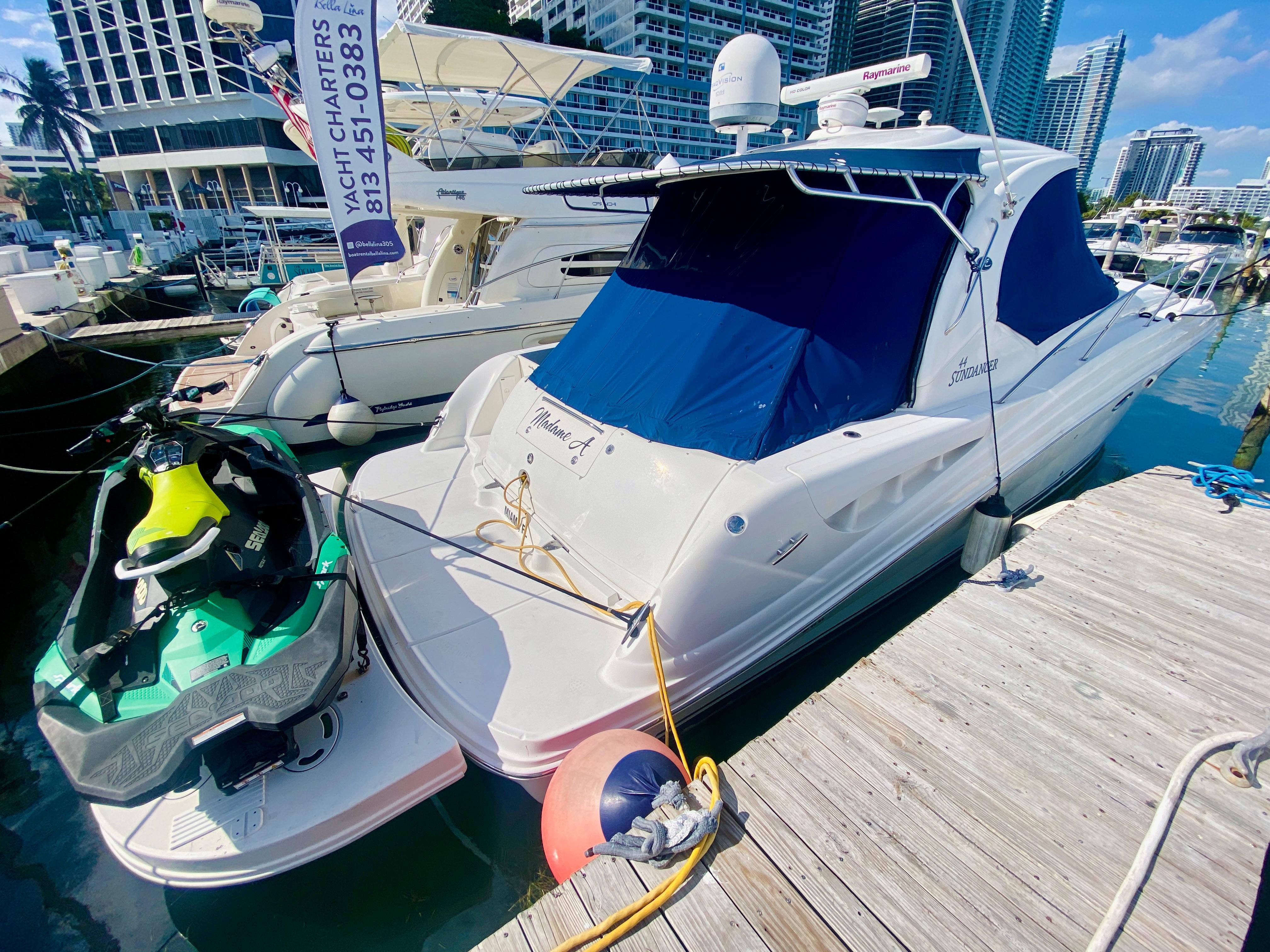 NEW TO MARKET!2007 SEA RAY SUNDANCER 44'CURRENT SLIP IS AVAILABLE AND CAN BE NEGOTIATED IN SALES PRICETHIS VESSEL HAS MANY UPGRADES INCLUDING...TNT HYDRAULIC SWIM PLATFORM CUSTOM ALUMINUM AFT SHADENEW EXTERIOR CUSHIONS NEW INTERIOR ICE MAKERNEW FUSION STEREOUPGRADED RAYMARINE CHARTPLOTTERSSATELLITE TV DOME & CAPABILITIESHELM AIR CONDITIONGCALL THE LISTING AGENT FOR MORE DETAILS!!