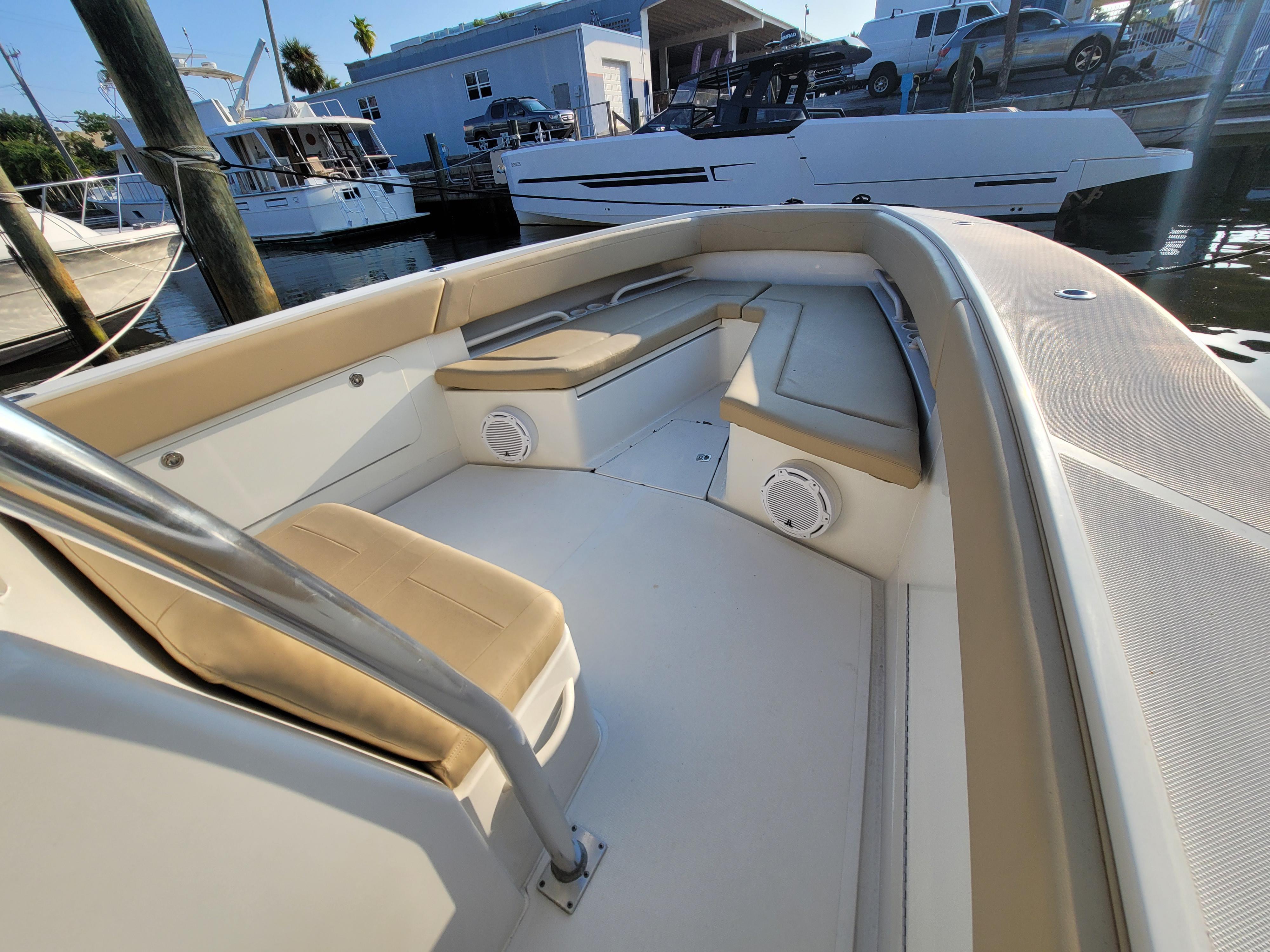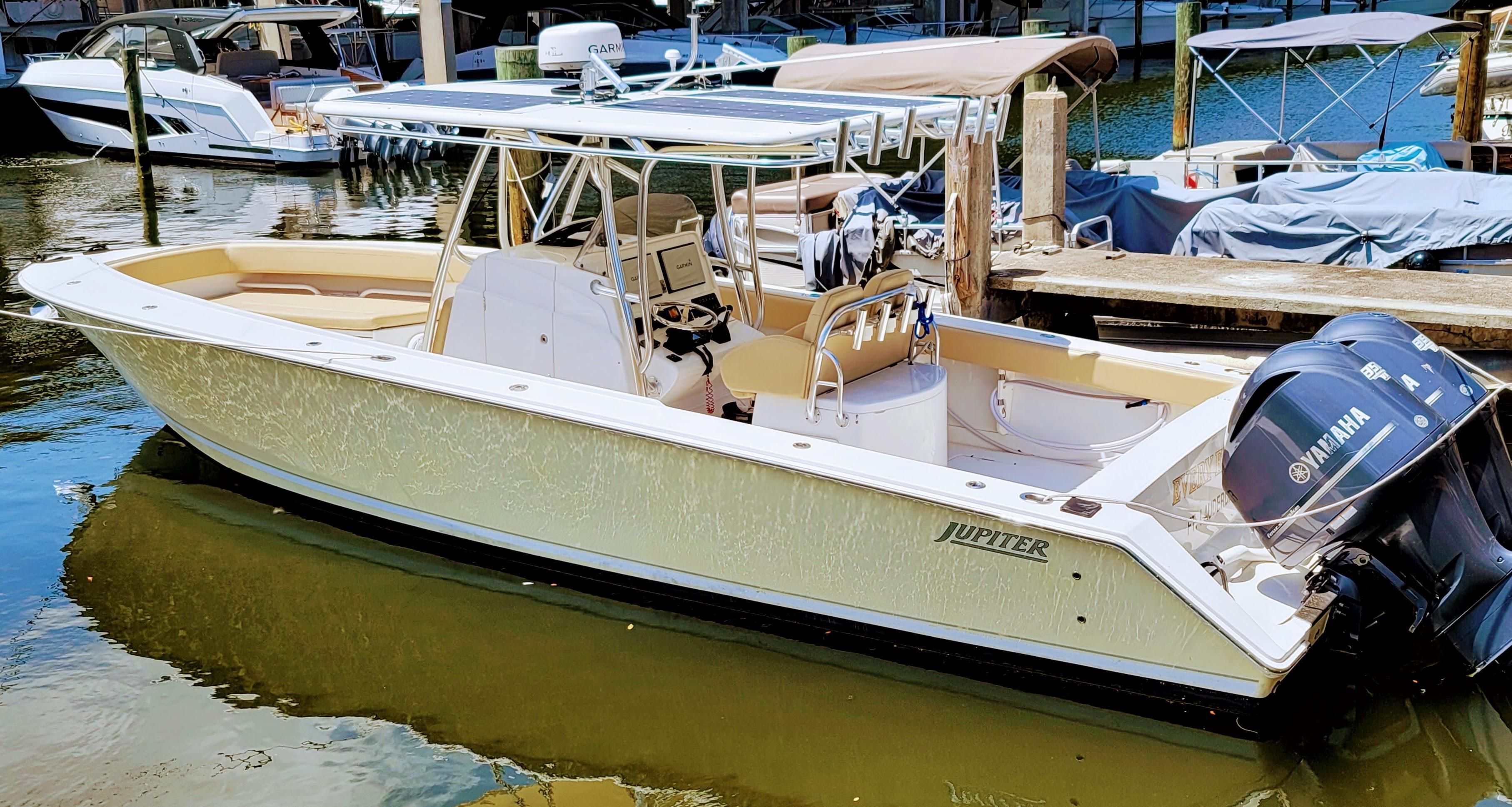 - PRELIMINARY SPECIFICATIONS PENDING SELLER'S REVIEWRepowered 34' Jupiter Forward Seating Hard T-Top4-Solar panels on hard top with Victron charge controllers2015 Twin 350 Yamaha's - approximately 1020 Hours Newer butterscotch upholsteryForward SeatingFold Up Stern SeatingMarine Head in Console - with custom varnished teak shelvesBow Truster - 2020 Fighting Lady Yellow Hull, Black Bottom Paint. Garmin Chart Plotters & Radar - 2020Simard AP16 Autopilot - not workingICOM IC-M504 VHFFusion Sound SystemRod Holders, Lee Outriggers (in storage)Underwater Lights (not working), LED Hard Top Lights, Under Gunnel LightsFresh & Saltwater Washdown,Garelick Boarding Ladder,Seastar Hydraulic SteeringLenco Trim Tabs