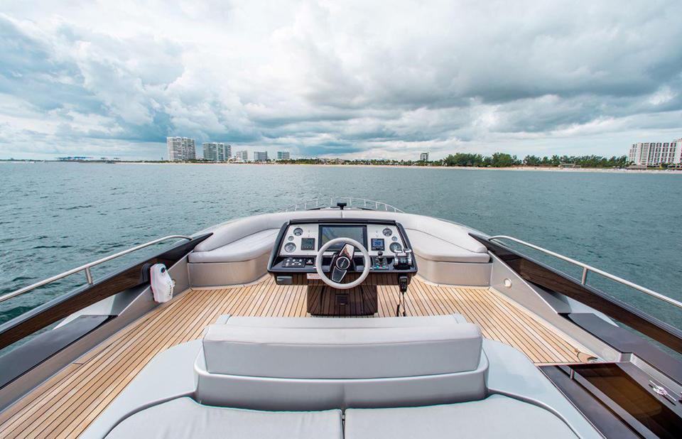 2017 Riva 88' Domino Super | MOVIN DAYBuilt in GRP by Italian yard Riva, Movin Day was delivered in 2017 as a Riva Domino Super model. Her interior in striped rosewood with fine leathers and fabrics accommodates up to eight guests in four cabins consisting of a master suite, VIP suites, and two twins, all with entertainment centers, flatscreen televisions and en-suite bathrooms. In addition, there are quarters for up to four crewmembers. In the main salon, which benefits from the extensive glazing to allow in ample light, two settees are located to port with a third to starboard, all upholstered in white leather and grouped around a dark leather and stainless-steel coffee table. Forward, a glass topped dining table seats eight guests on Poltrona Frau leather chairs and has two low cabinets for storage of glassware, china and silver.The aft deck is substantial, offering seating on a C-shaped settee and folding chairs, along with a table and small fridge, creating the perfect venue for relaxed al fresco entertaining and dining. Meanwhile, the sundeck offers yet more outdoor living, featuring built-in C-shaped seating, dining tables, sunpads and sun loungers. For complete sunbathing privacy, the foredeck has a dinette and a built-in settee.Twin 2,435hp MTU diesel engines power her to an exhilarating top speed of 38 knots and she is fitted with gyroscopic zero speed stabilizers.Notable FeaturesLondon Grey HullAll cabins offer en-suite bathroomsGyro stabilizers underwayTwin generatorsBBQ grillSwimming platform Stern/cockpit shower2018 Sea Doo