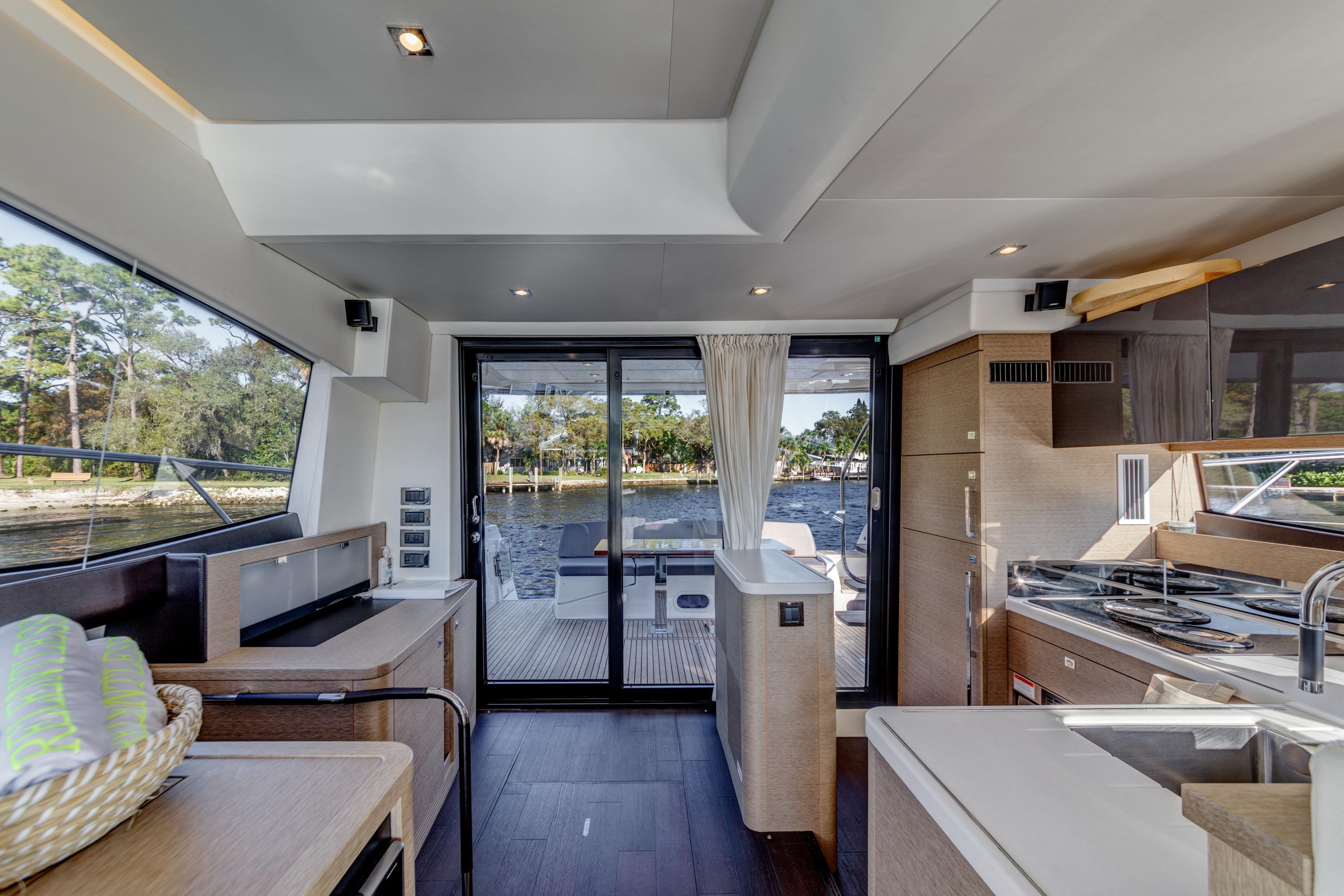 In impeccable condition, RELENTLESS is a superb example of Prestige’s engineering and contemporary design. Her three generous staterooms are arranged as a king sized, full beam aft master cabin, and two twin cabins that can be converted into doubles. A high-volume vessel with a spacious interior, her salon offers guests a 360 panoramic view while socializing on plush sofas.