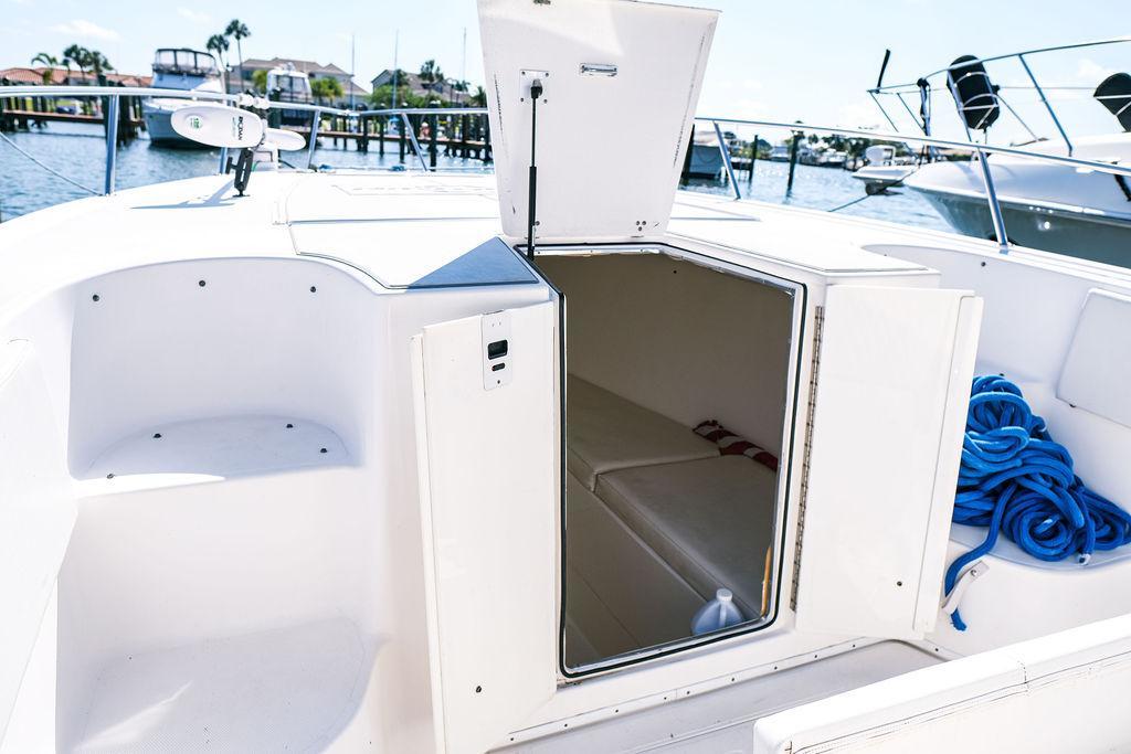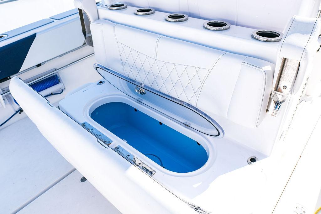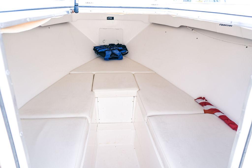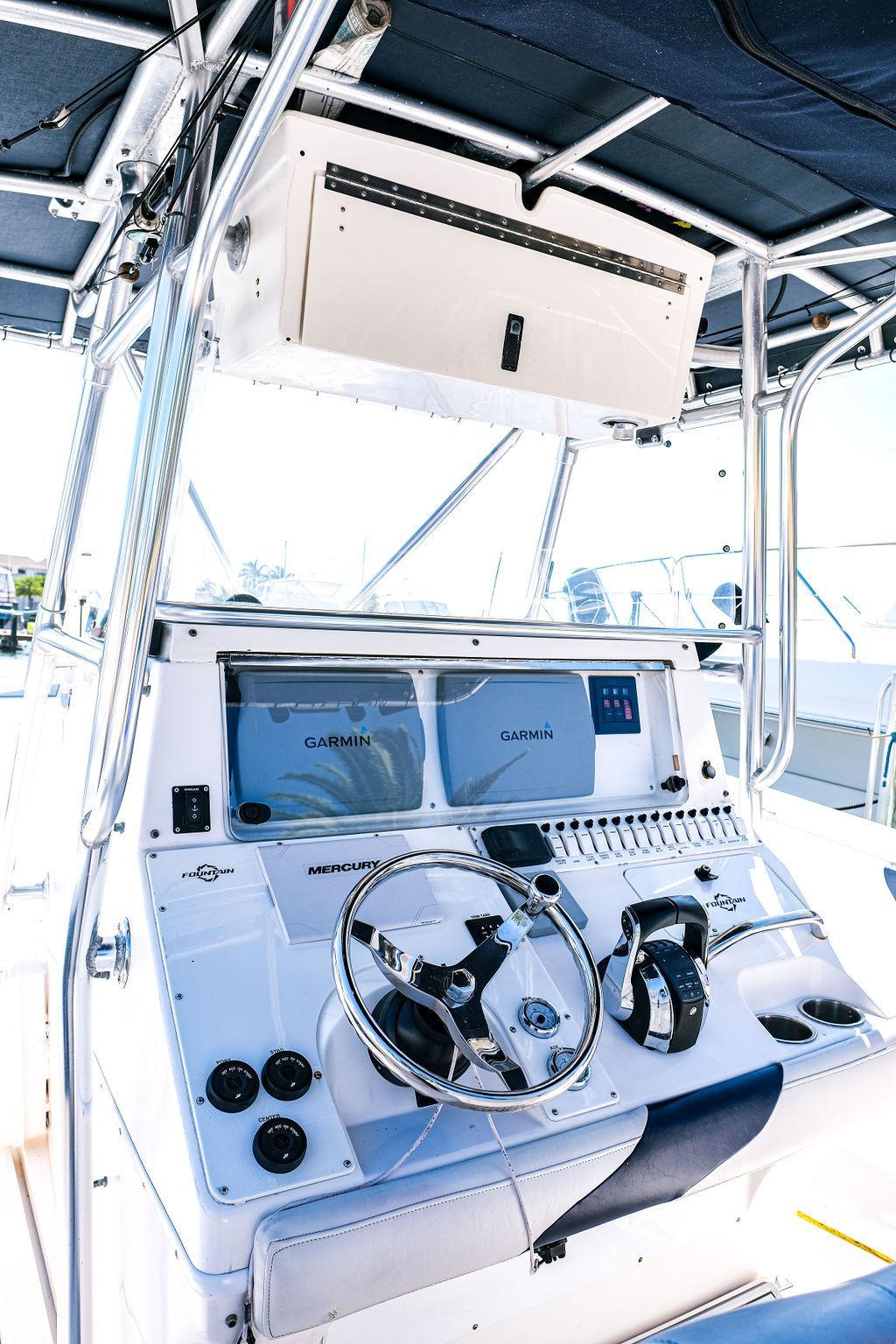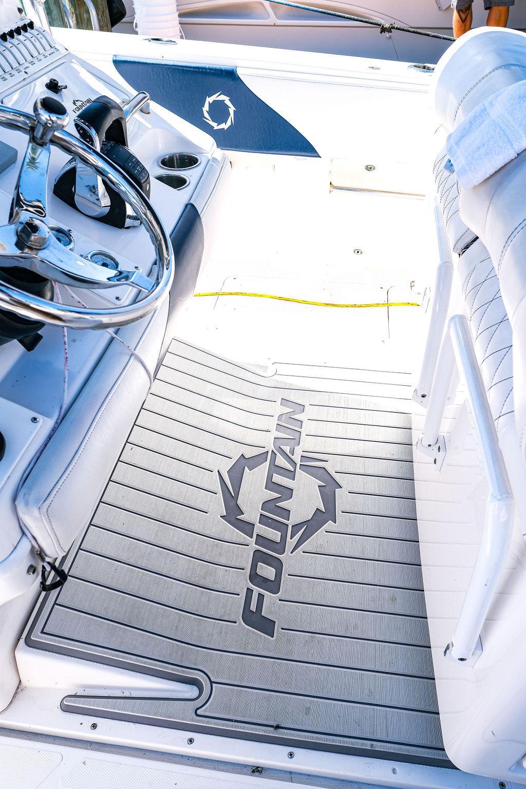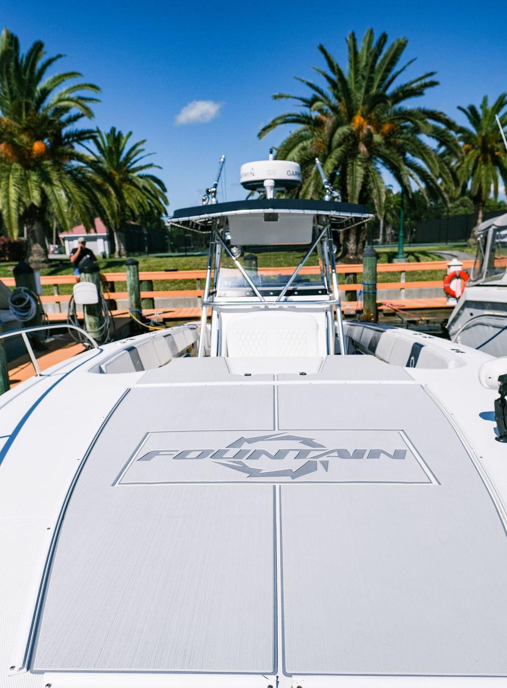 The 38CC, with its 10' 6" beam, is Fountain Mercury's largest center console. And what a bruiser! This is the King Kong, Super Man, the world-beater of the genre, guaranteed to get you out to the best fishing grounds faster, more comfortably, and safer, than any other boat of its type. The hull is our state-of-the-art Super Ventilated Positive Lift design, born of decades of grueling competition in the dog-eat-dog world of offshore racing.You've got world-champion offshore racer Reggie Fountain's guarantee that you can't find a better boat. The entire layout is the end result of the combined experience and knowledge of the highly successful Fountain fishing team. Did we mention just how you badly you can annihilate the competition on the run out? The 38 Tournament, powered by triple 300-hp Mercury Verado outboards, blasts through the seas at up to 75 mph. Cruise at a fuel-sipping 42 mph, giving you an astounding 1.2 mpg and stretching your range to 321 miles with our standard 300-gal. capacity. Disclaimer