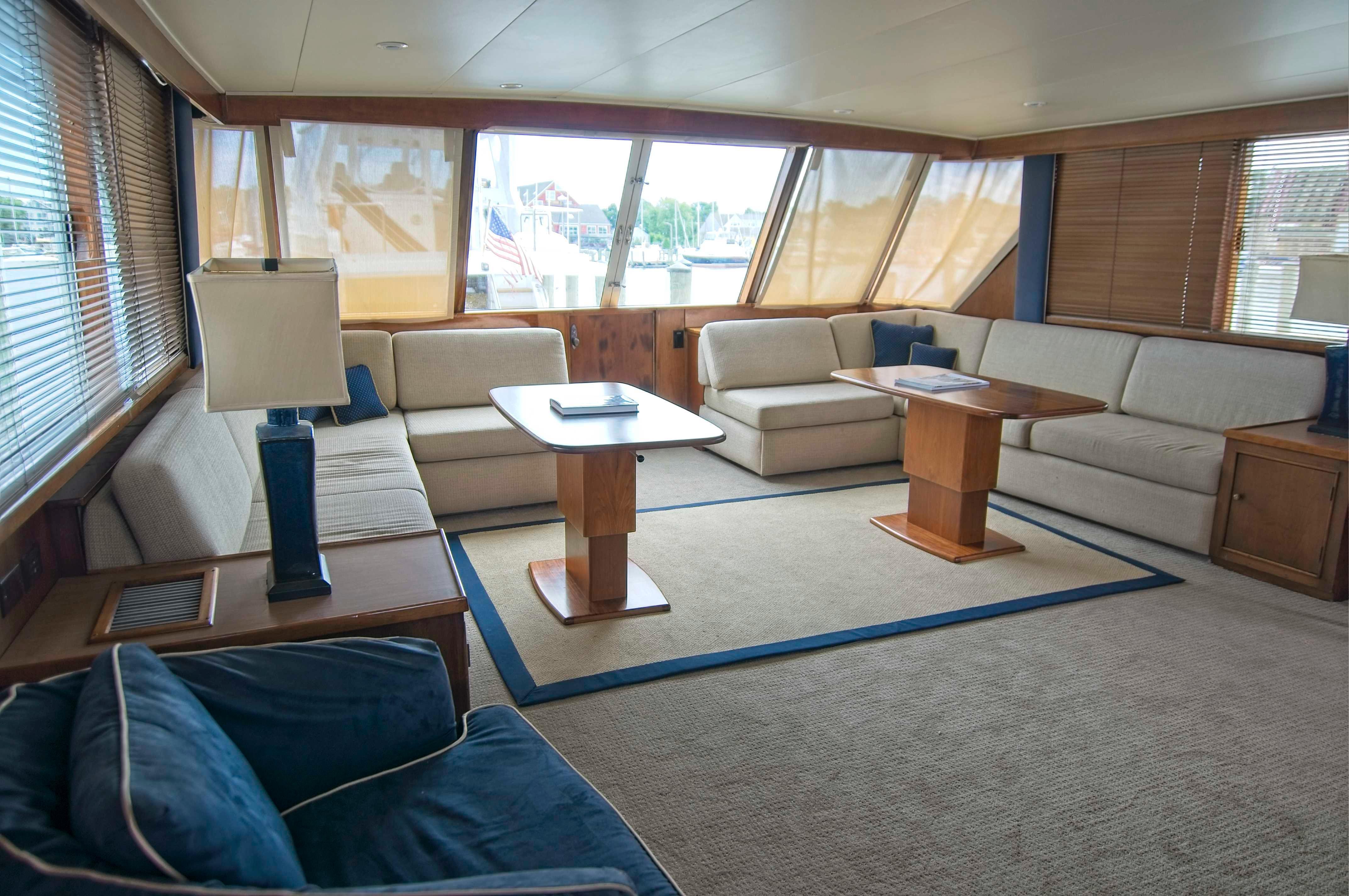 - Aft L lounge seating port and starboard sides with 2 hi-low cocktail tables.