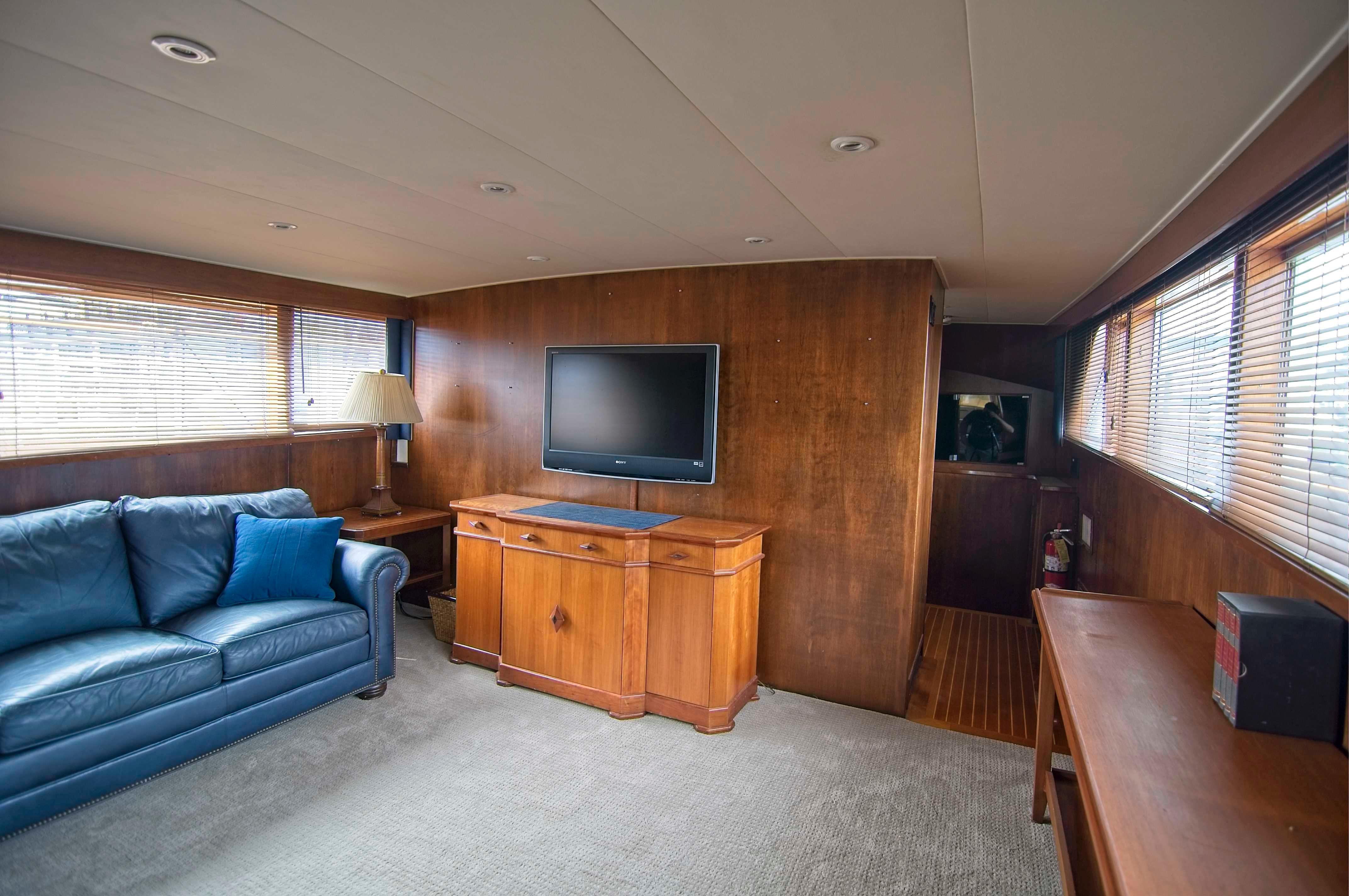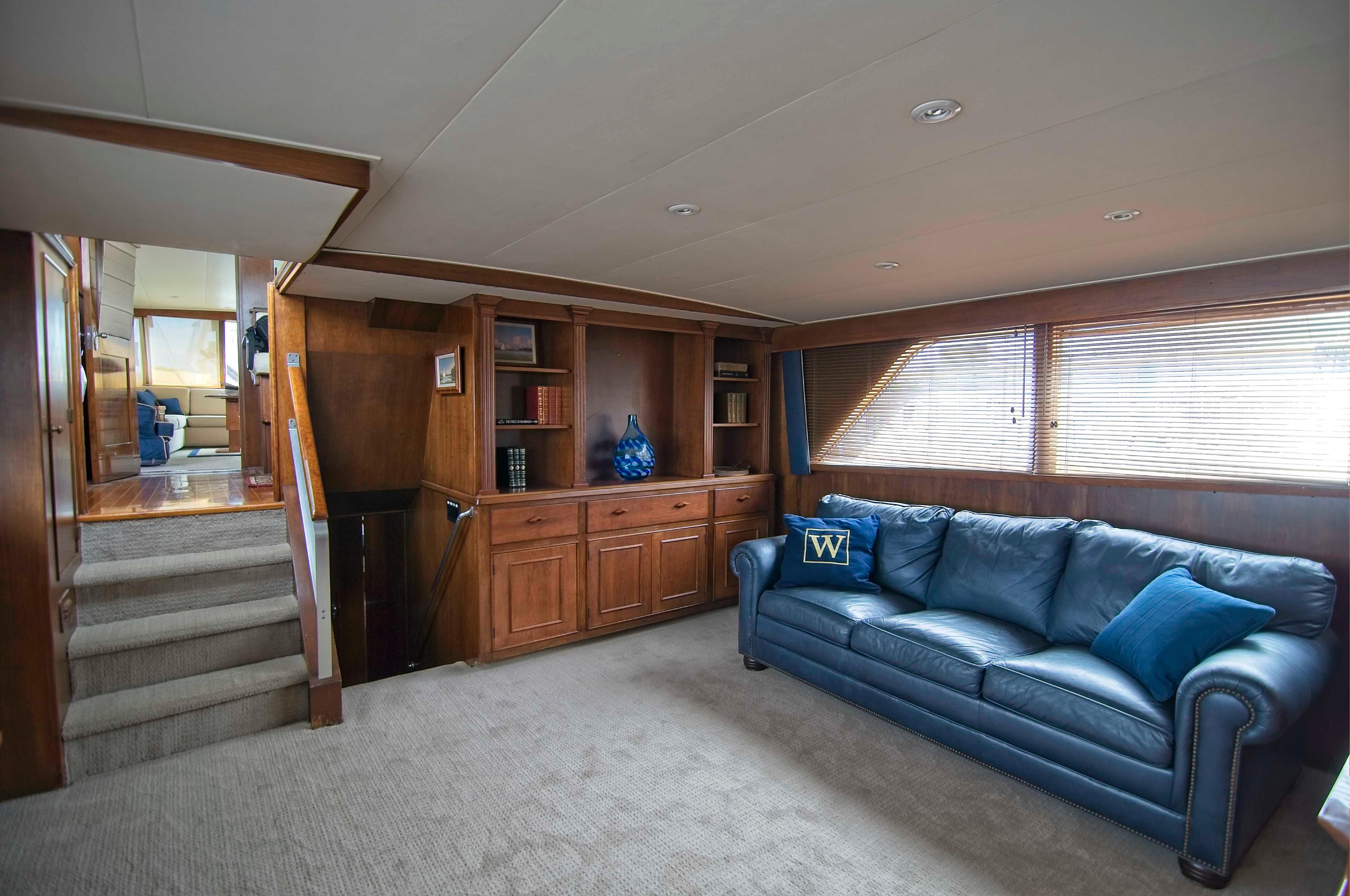 - A few steps down and forward from the pilothouse is the lower saloon which can be used for dining.