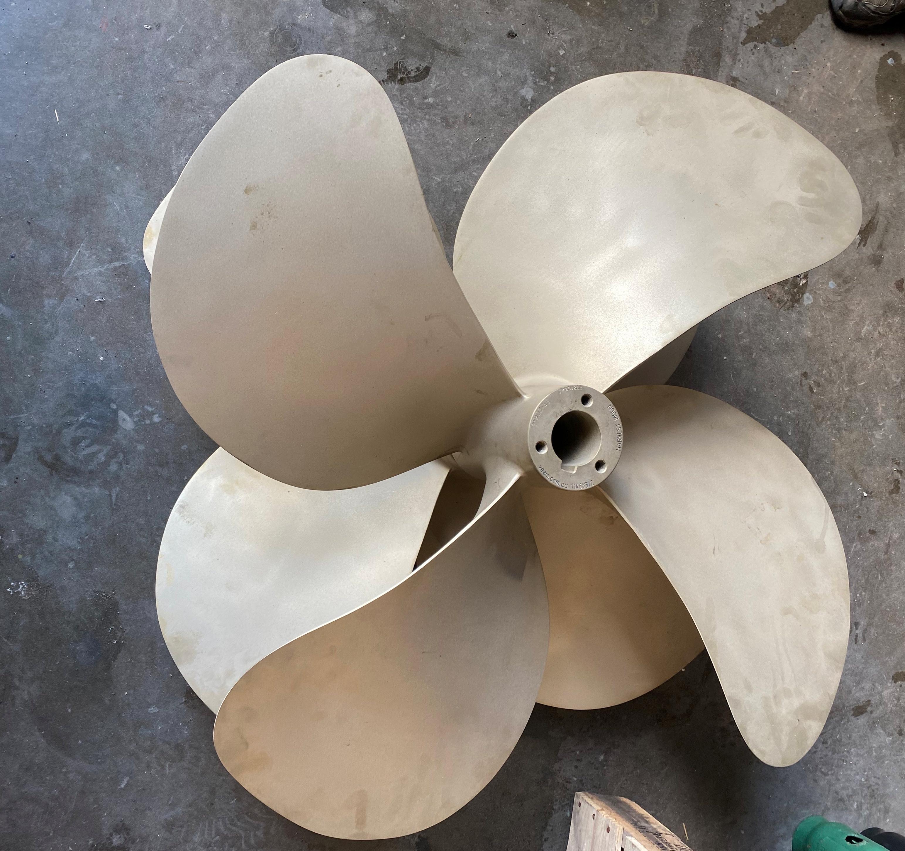 SERENITY sustained damage at the marina during Hurricane Ian. A 9’ storm surge carried the boat over a concrete dock, damaging some running gear, and she came down on the other side floating because of four watertight bulkheads and superior Burger construction, where most other boats sank. She is hauled out of the water and running gear, and below waterline repairs have been completed.