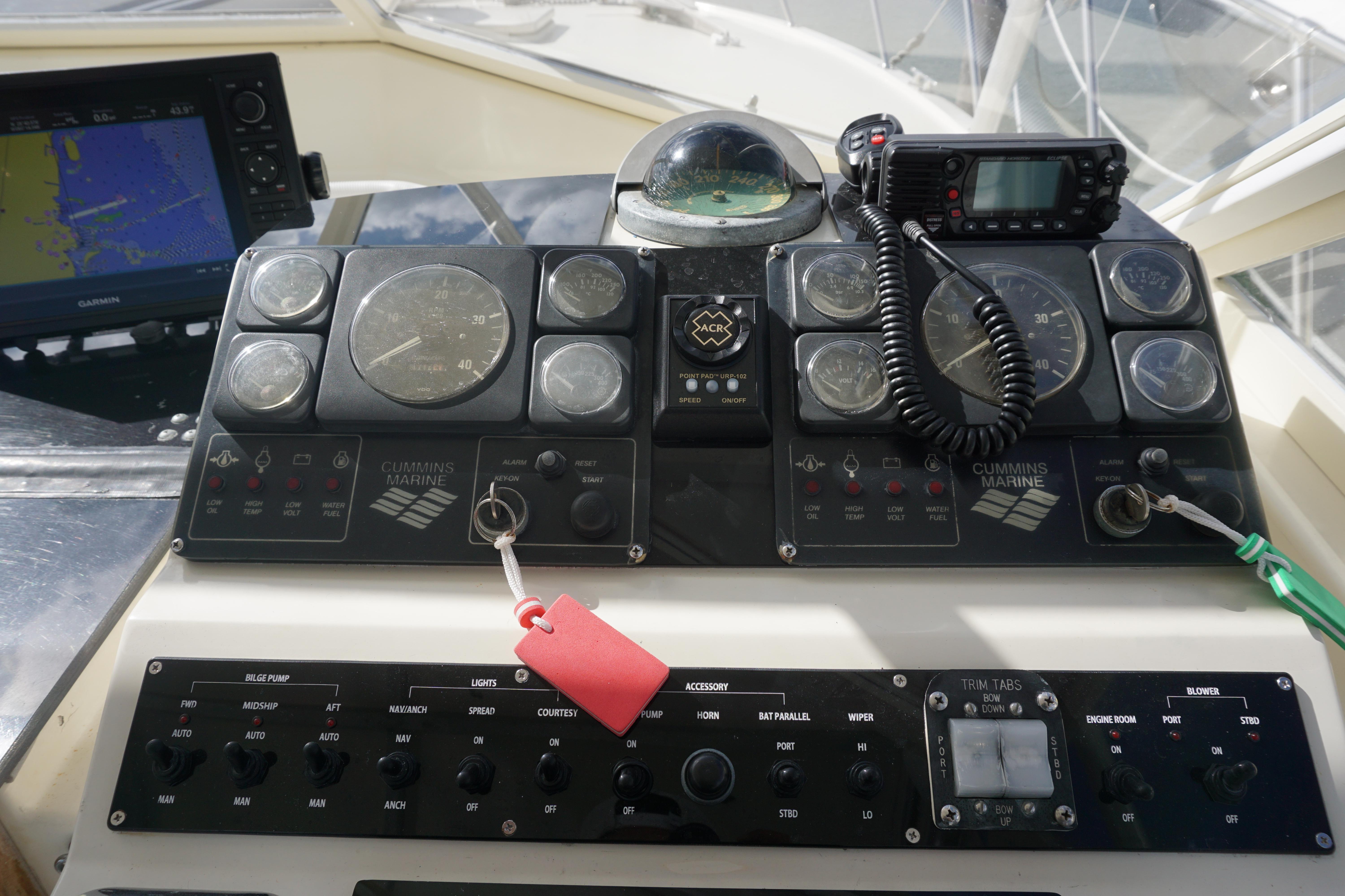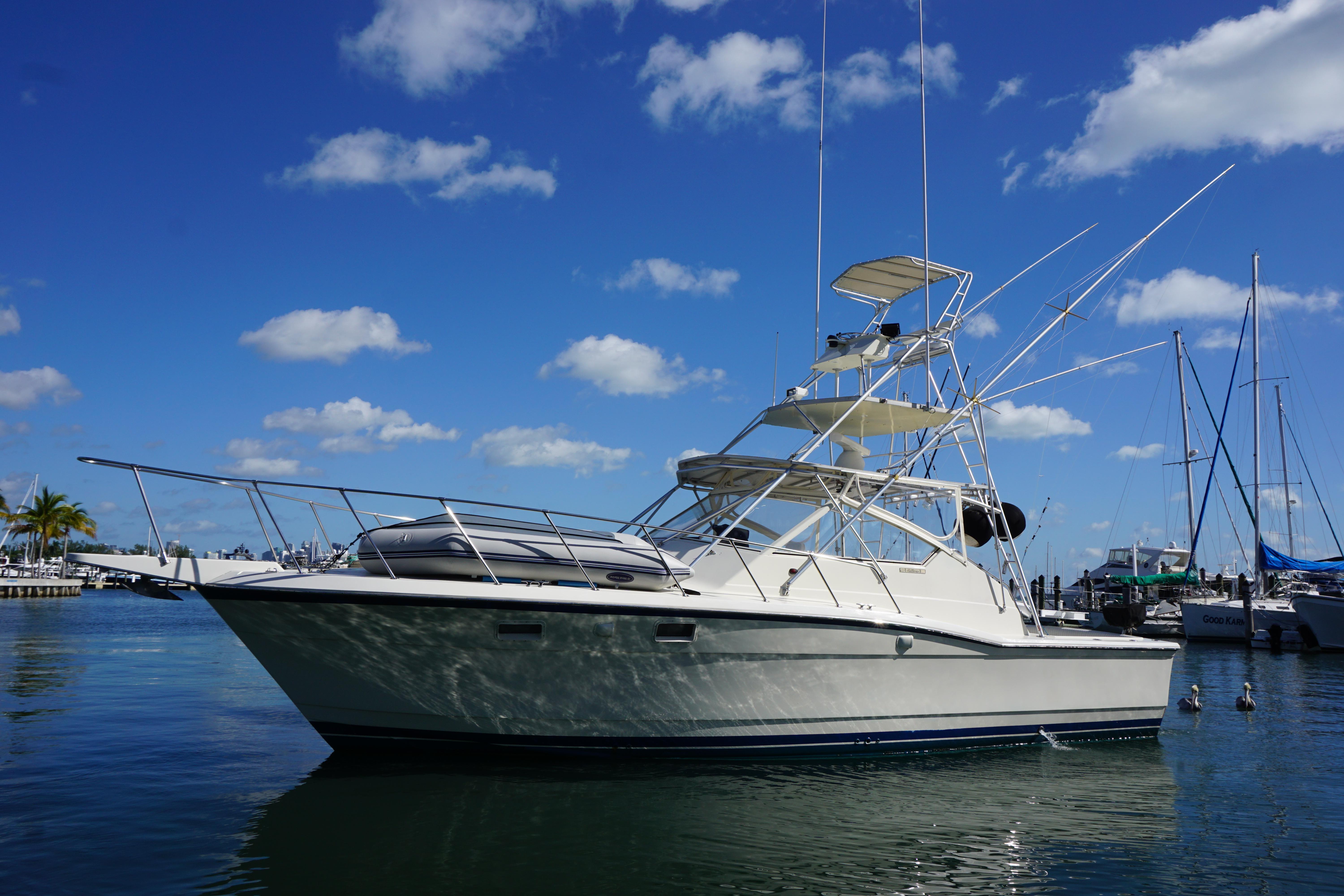 1985 36ft Hatteras repowered with 2006 Cummins with only 1400 hours and 750 hours on the generator! With the 1,000 hour service done on the engines, she is ready for her next adventure. Boat does have a new AC unit, new fridge, new microwave, new water heater, new LEDs scattered around the boat, equipped with Garmin GPS, JL audio and a fusion head unit, underwater lights. and new toilet as well. Bottom paint recently done, in good shape with a fresh hand of wax done recently. Also, with cutlass bearings thru-hull transducer and new couplers. Shafts were straightened and balanced.