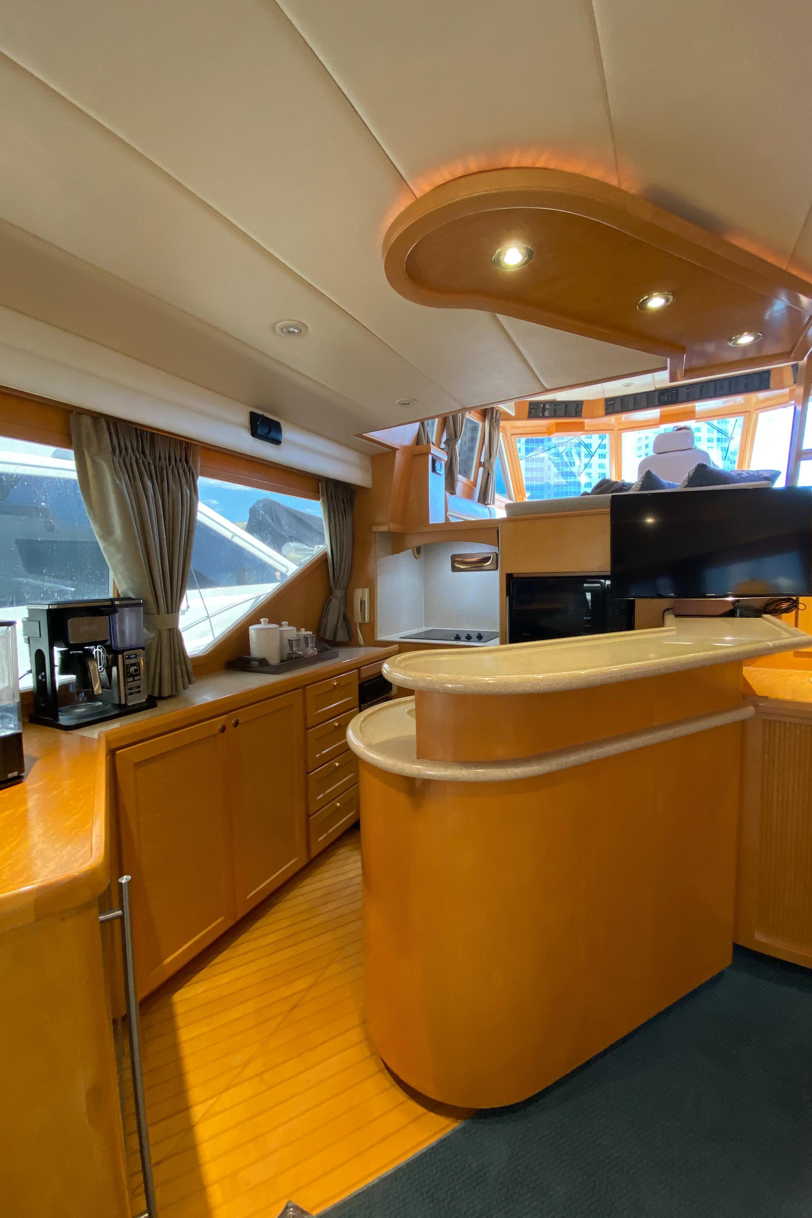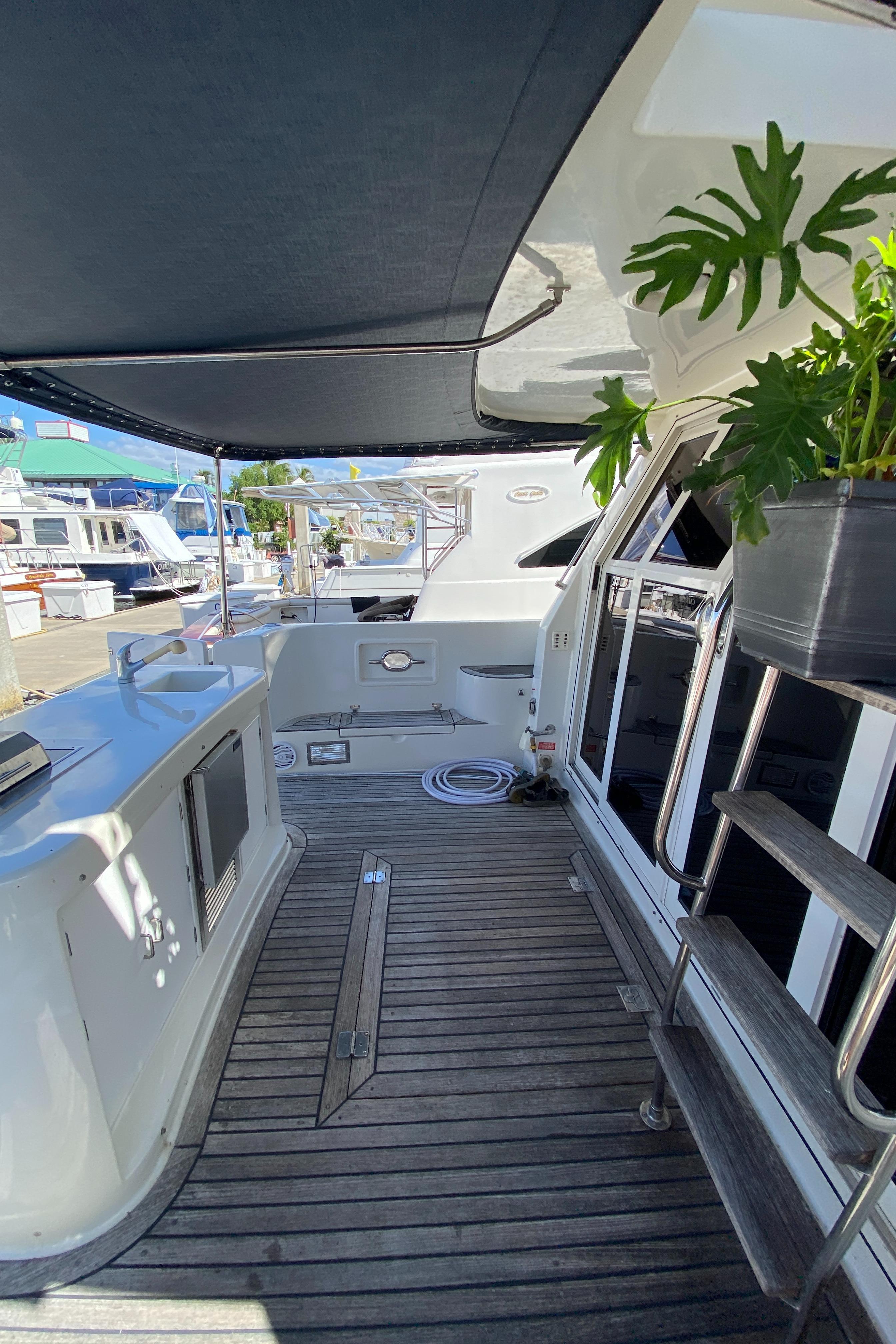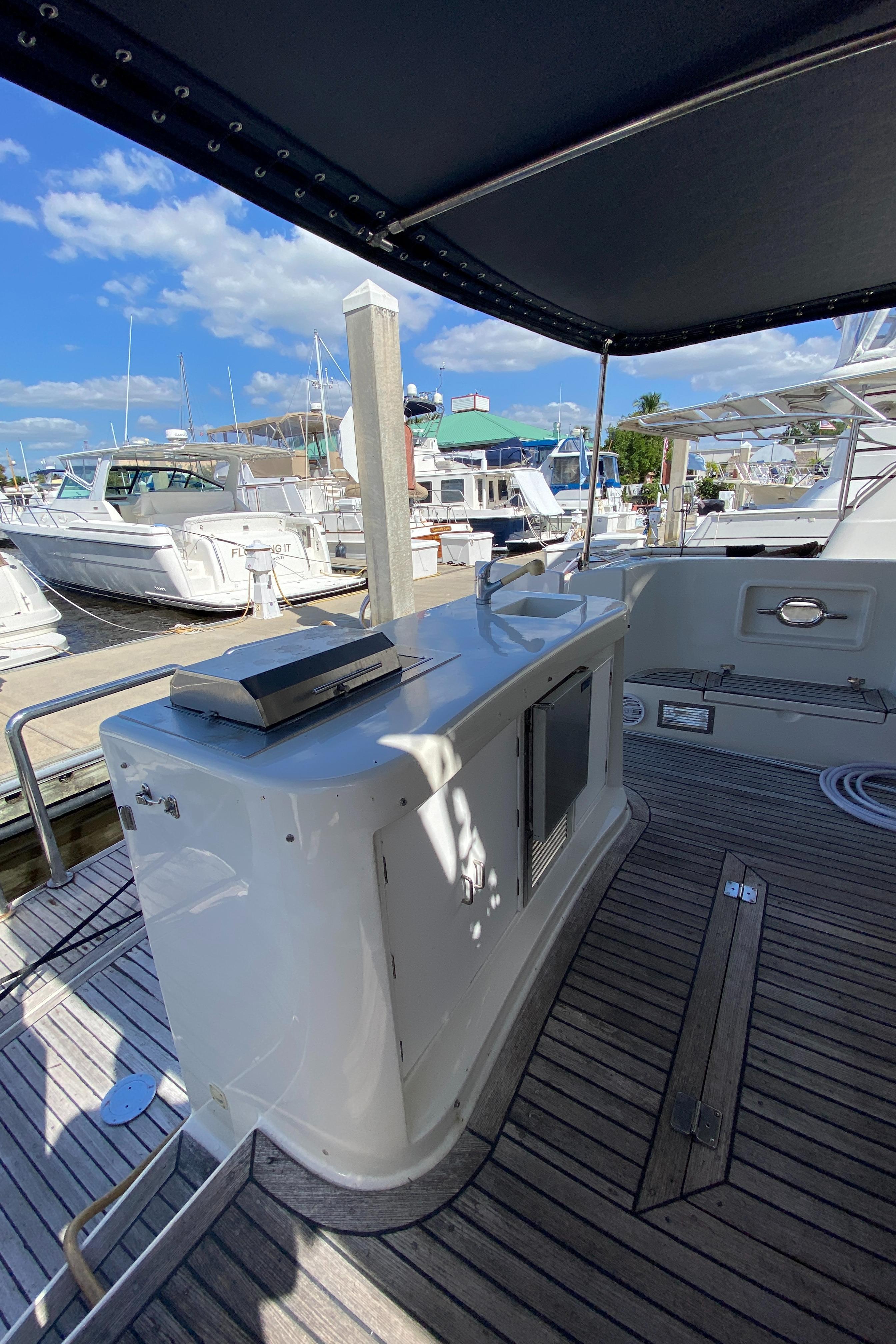- Built-in center aft wet bar with Kanyon stainless steel BBQ grill