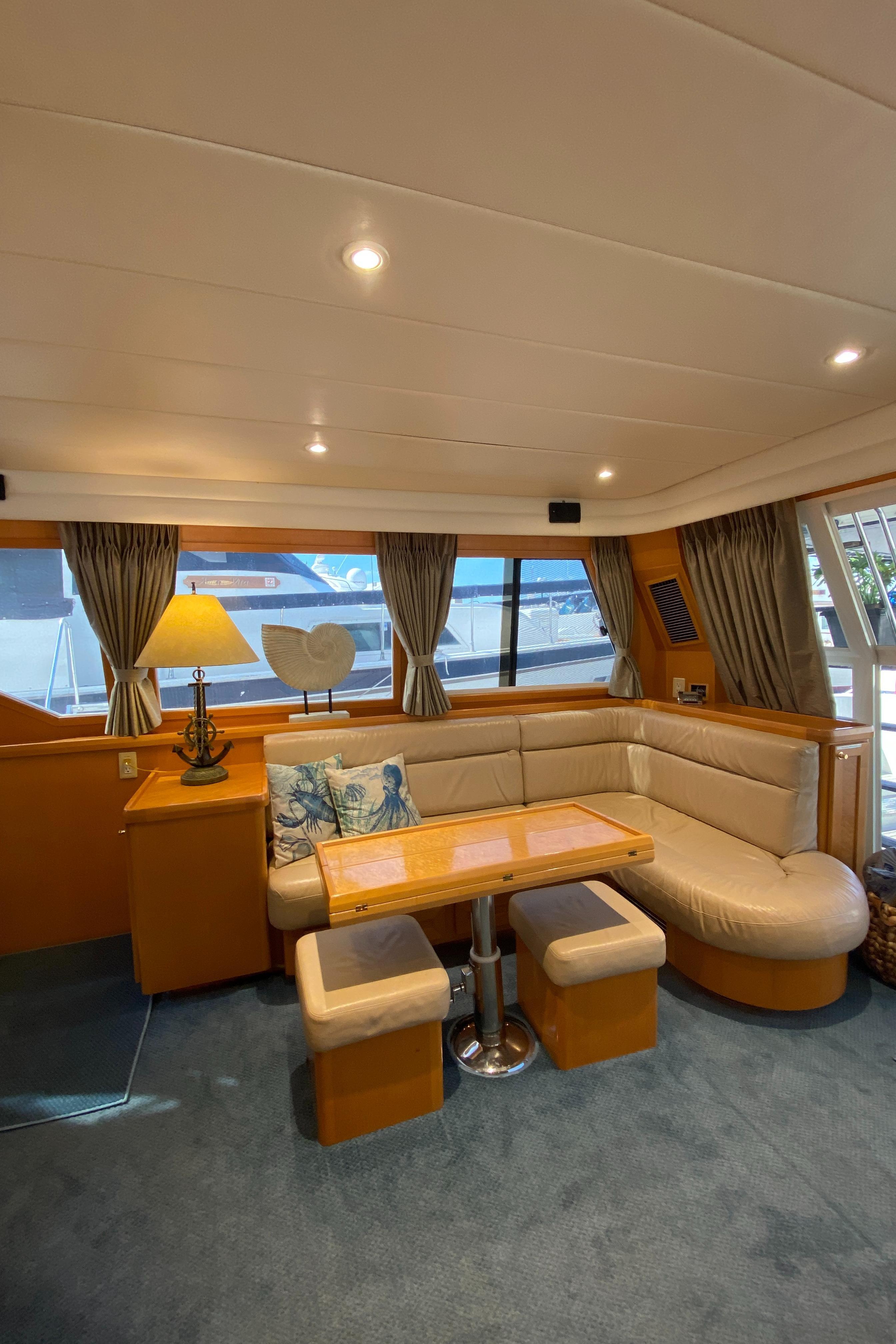 - Built-in seat port aft, wrap-around seating and table to starboard