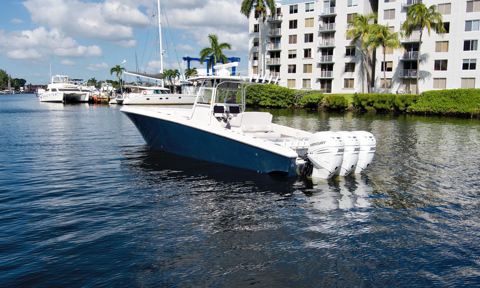 Clean 2016 Fountain 38 ready for her new owner. Lift kept, with triple Mercury 350 Verados. Full Simrad electronics package.Additional Options:2016 38 CC FountainTriple Mercury Verado 350'sWhite EnginesBlue Painted HullRear Facing SeatSIMRAD Dual DisplaysVHFSimrad AutopilotSimrad Open Array RadarJL Audio Stereo with JL SpeakersElectric Windlass with Stainless AnchorForward Console SeatingForward Seating