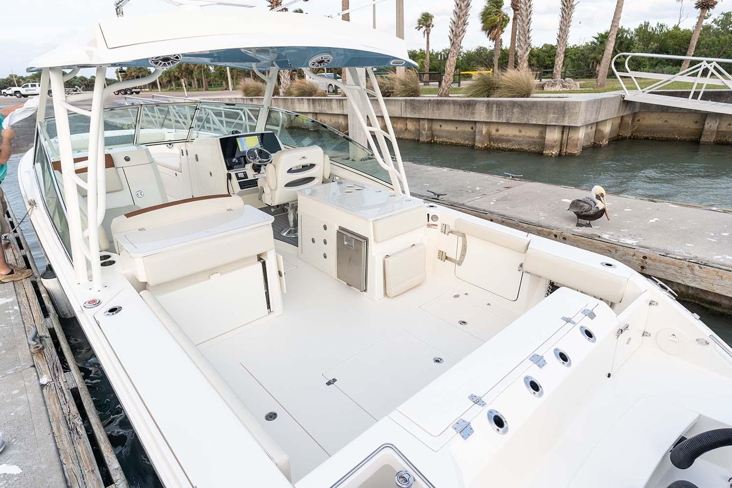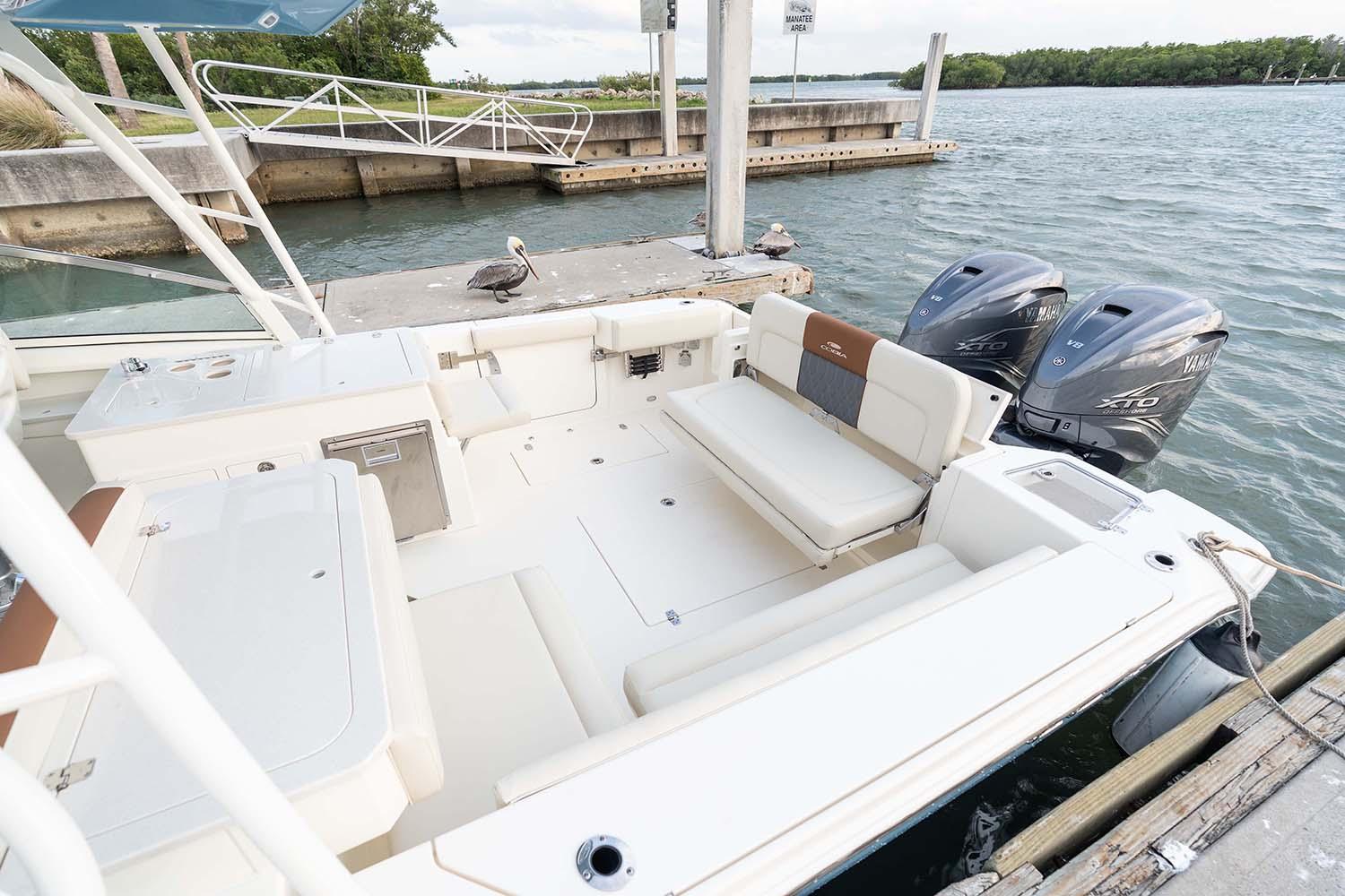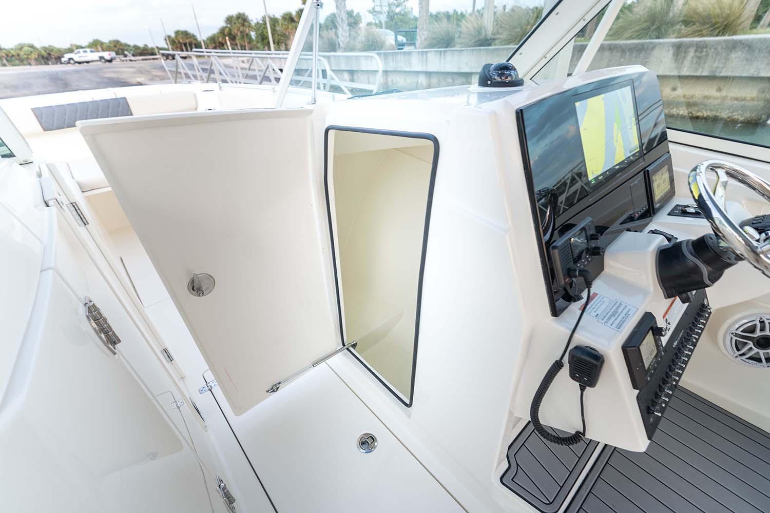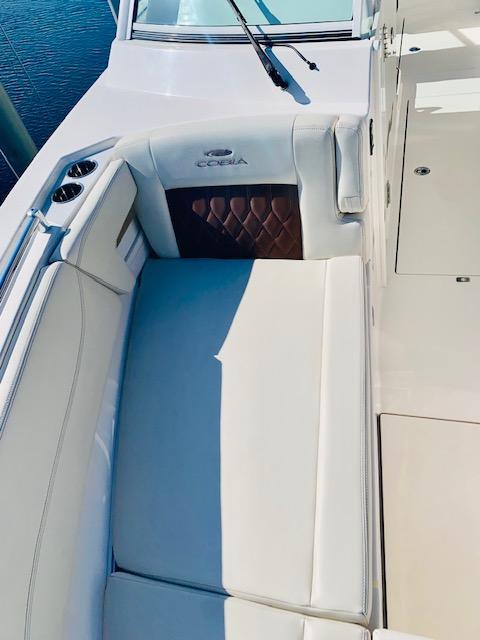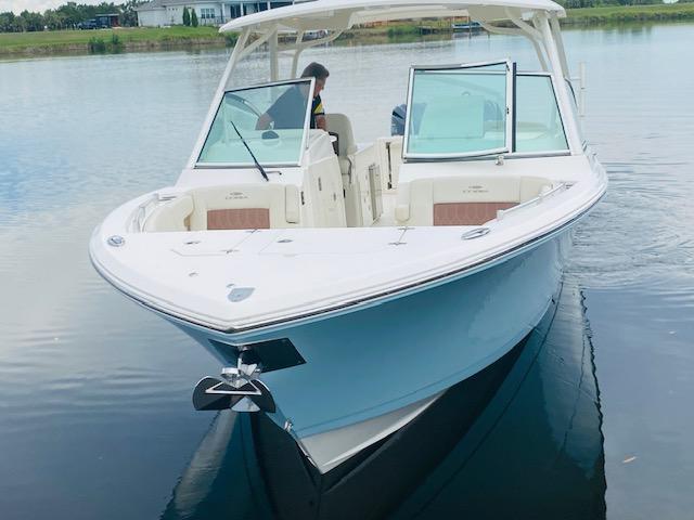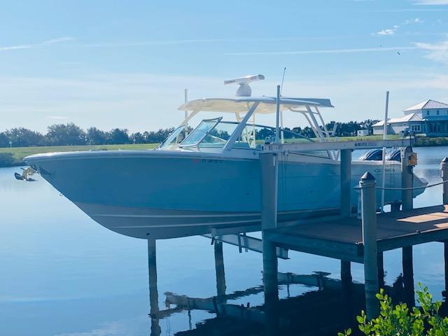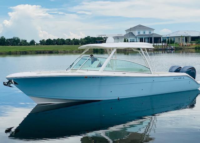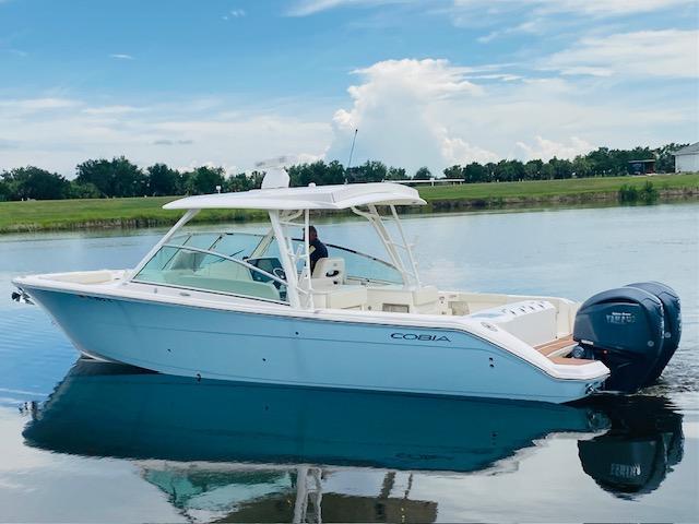 Chances are if you are looking at a 33 Cobia, you're not a newbie boater. High quality boat, loaded with features, Twin 300 Yamaha's, Well equipped, including Yamaha Helm Master EX, Joy Stick controls, Auto pilot, Garmin DLX electronics package, Garmin Radar, Garmin 8616 Chart, JL stereo, VHF, Kitchenette with Refrigerator, Faux Teak decking, Windlass with remote, Power sunshade, powder coating, underwater lights, Fish box with macerator, 4 bank battery charger, Great manufacturer video on line that shows you everything you need to know about the 330 Cobia, great boat, outstanding condition with 55 hours.There is not a trailer. We can have one custom made in a week.Folks, I am not a time waster. This is a very nice boatIf you are done shopping, ready to make a move, we will be happy to get you on this boat.The Cobia 330 Dual Console’s boundless space, wealth of amenities, and abundance of plush seating means stress relief comes standard. Whether you want to fish, cruise, or spend the day at the sandbar, this boat’s exceptional layout and vacuum –infused, high performance hull makes your options endless. If luxuriating is your desire, there’s a standard summer kitchen with sink, fridge and wine chilling cubby to go along with tons of Corian countertop space for spreads. A hidden bow table that electrically raises out of the floor is perfect for a picnic lunch or happy hour and doubles to complete a huge forward sun lounge. There’s even a standard bow boarding ladder that lets you step onto the sand without getting your feet wet. The 330 DC is equally ready for when the fish are biting with a huge, uncluttered cockpit, a 28-gallon livewell with acrylic lid, 115 gallons of insulated fishboxes with macerators, and a full bait prep station. An inward opening side door makes it easy to slide a big one on board or slip into the water for a dive. And no matter the activity there’s enough dry storage space for everything you need and more.