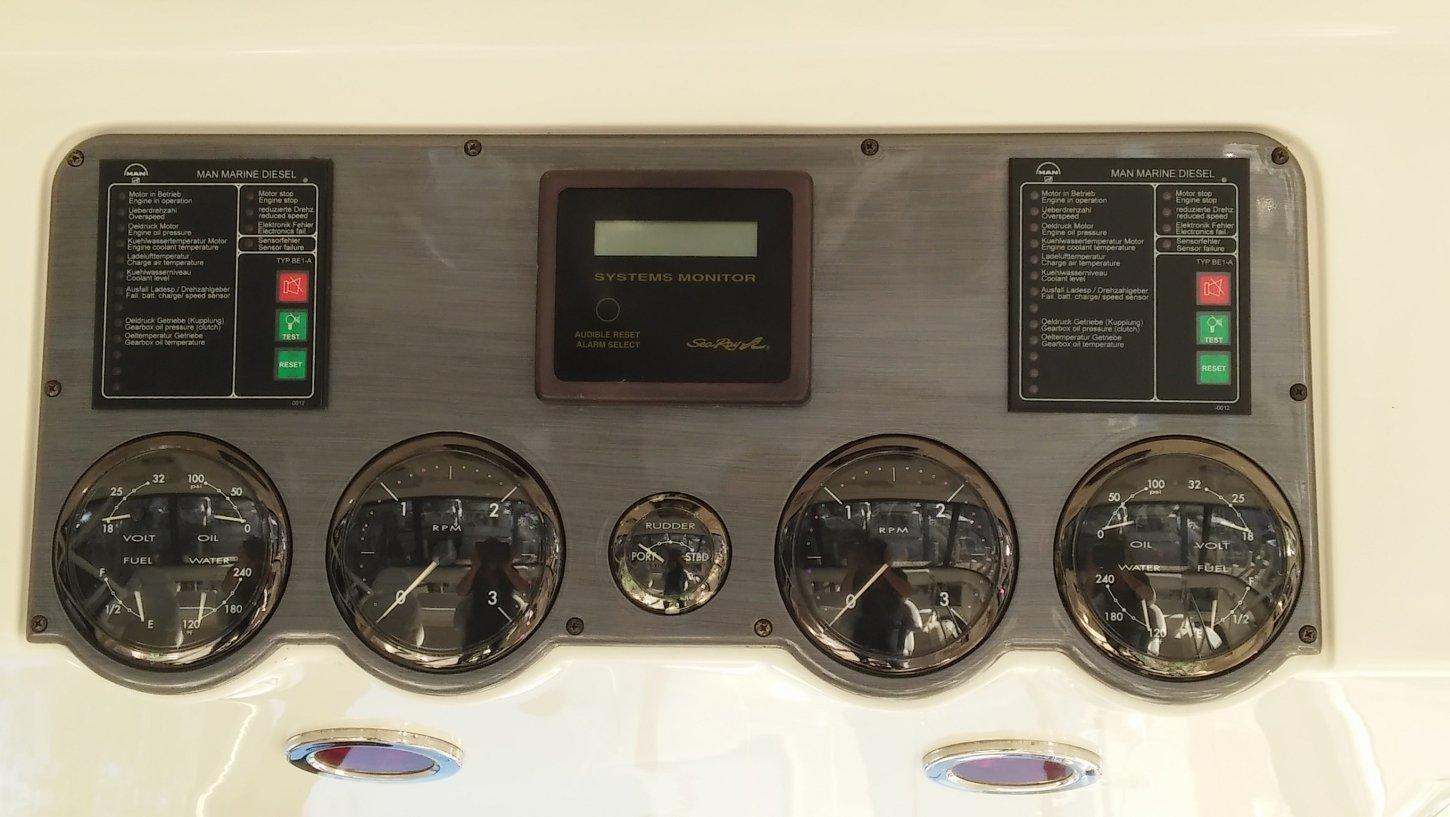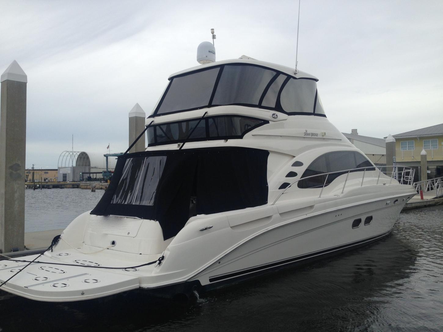 With her bold styling, solid performance, and spacious three stateroom accommodations, the Sea Ray 550 Sedan Bridge went a long way toward defining luxury in the American sportboat market during her production years. Everything about the 550 seems big, from the expansive salon with facing leather sofas and cherry wood cabinets to the spacious flybridge with standard fiberglass hardtop and seating for a small crowd. A gourmet galley (with Sub-Zero refrigeration) is forward of the salon, opposite a wraparound dinette with storage below. On the lower level, the 550's opulent full-beam master stateroom features twin end tables and tons of storage. A spacious VIP stateroom forward contains a queen bed, and the second guest stateroom has angled bunk beds. Additional features of the 550 Sedan Bridge include flybridge air conditioning, standard bow thruster, built-in cockpit seating, extended swim platform with hydraulic lift, and a state of the art entertainment system. An excellent performer for a big American motoryacht, she'll cruise at 24 knots with 800hp MAN diesels (30 top).Features:State of the art Raymarine multi-function color radar chart displaysHigh definition digital color 4kw RadarFlir Thermal Night Vision TechnologyAll components and 2 x separate transducers are interfaced via Raymarine network, Bluetooth, and ethernet technologyAIS Vessel RegistrationSirius XM Weather fully operational and interfaced with Raymarine autopilot/ Bluetooth systemA/C SystemBridge and Cockpit EnclosuresOcean LED Midnight Blue SpeakersSamsung HD Flat Screen TVsSunbrella Yacht Collection Custom Aft Cockpit SeatingCustom Infinity "Luxury Linen" Woven Cockpit and Bridge ArrestSunbrella Salon Carpet RunnersAnd much, much more...Recent Services:NEW Heat ExchangersRebuilt Racor FiltersImpellersBottom paint (2023)NEW Cutlass BearingsBalanced Running GearProp Speed Running Gear & TabsNew ZincsComplete Rebuild of Swim PlatformTurn key and ready to cruise!