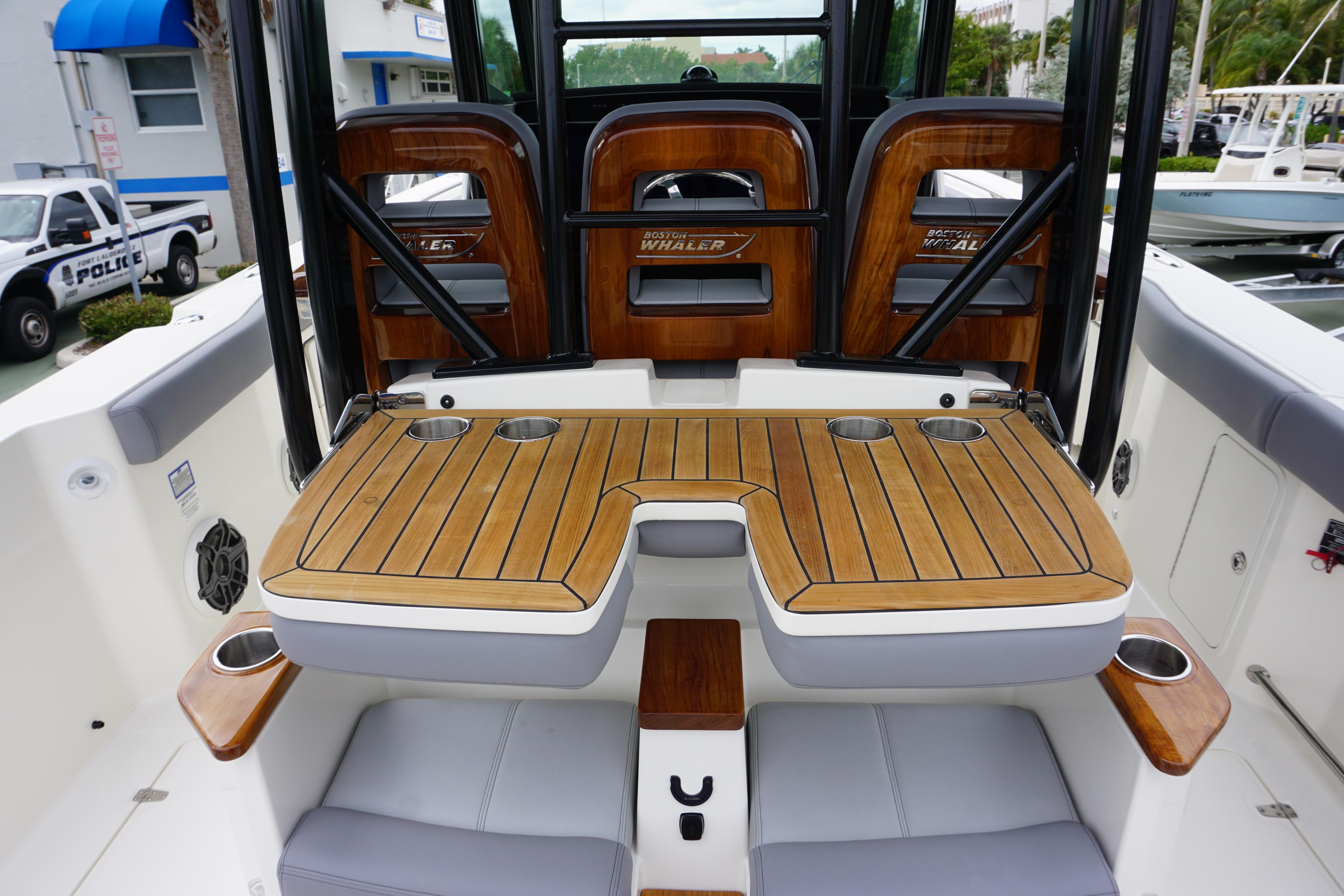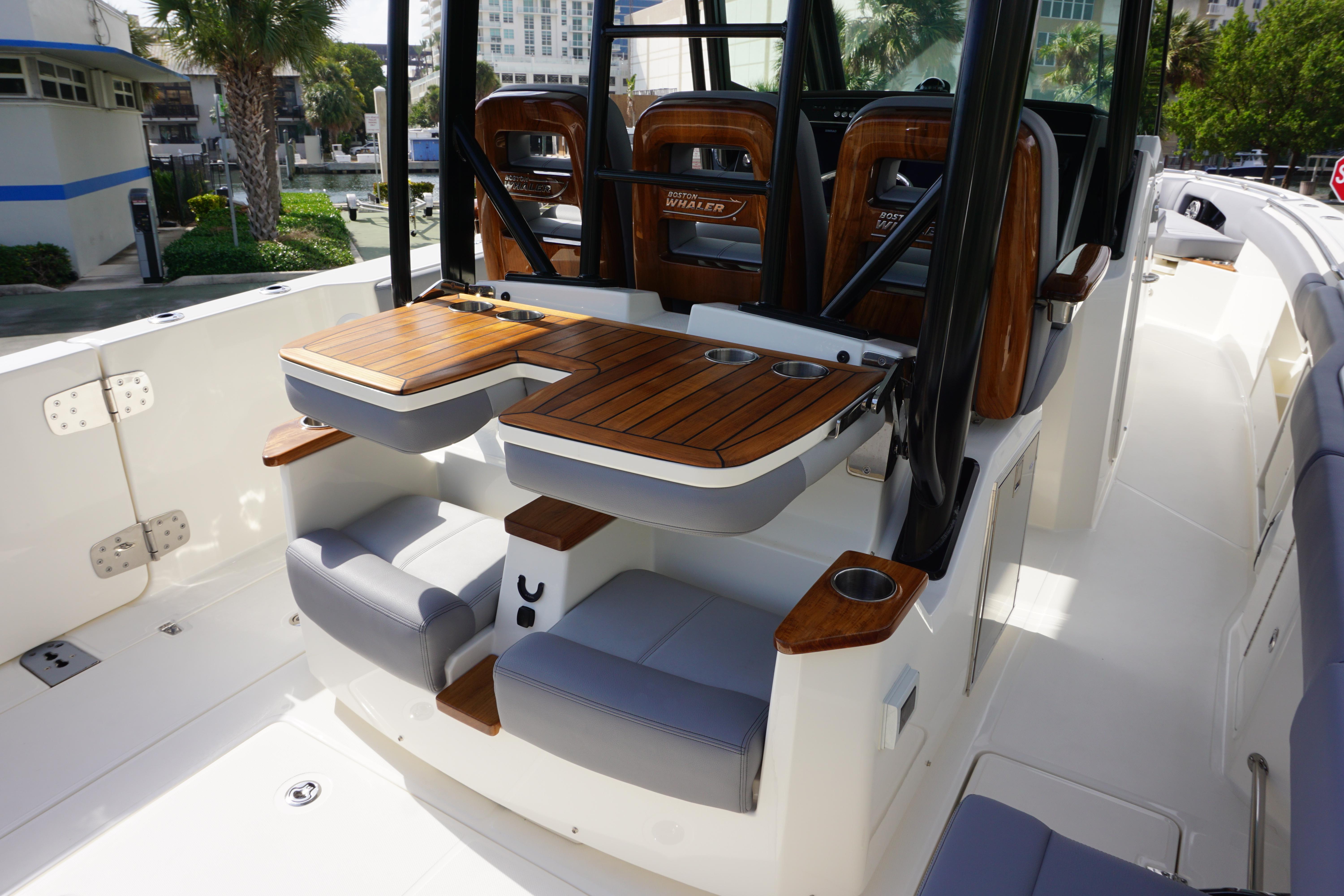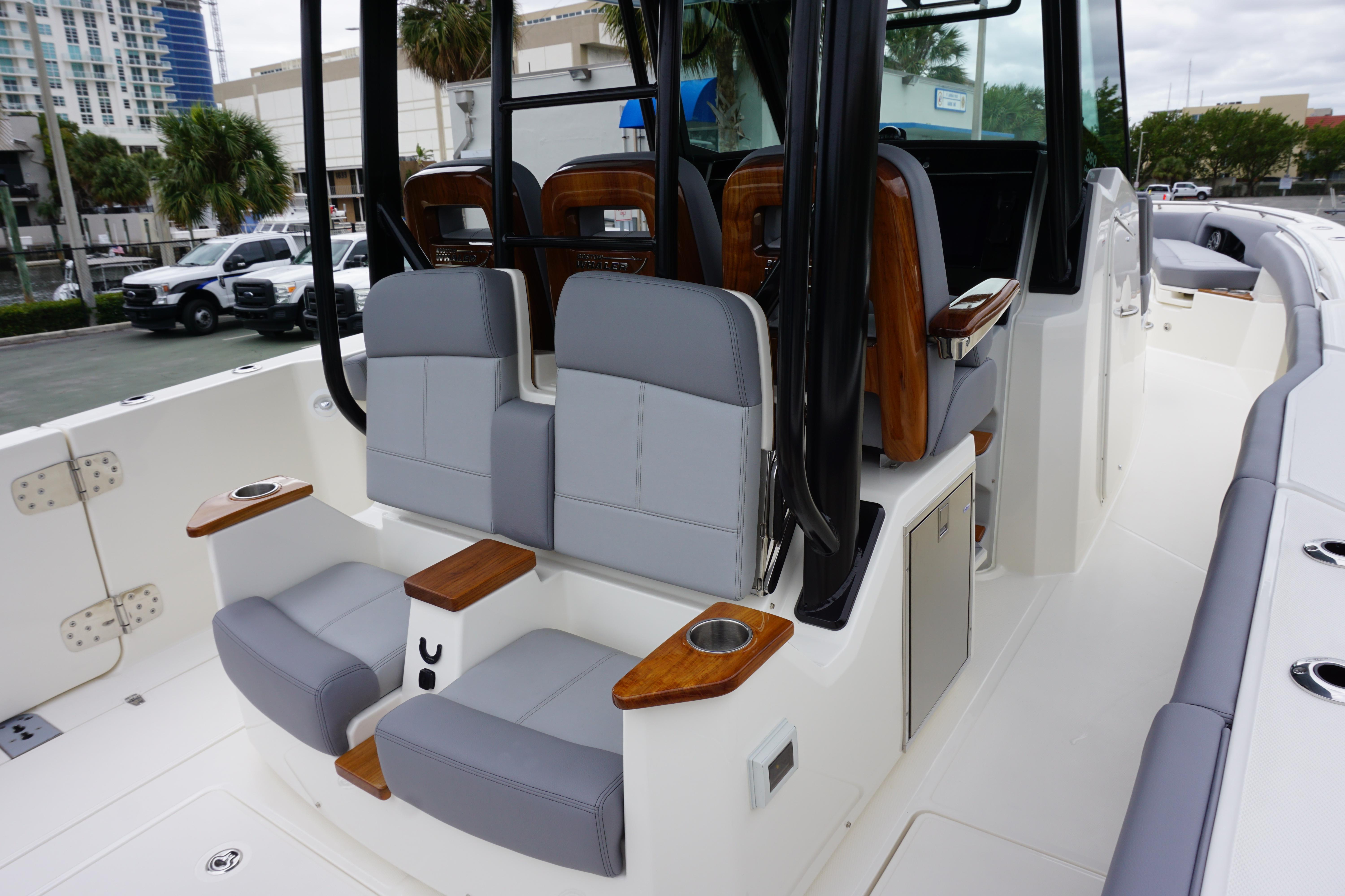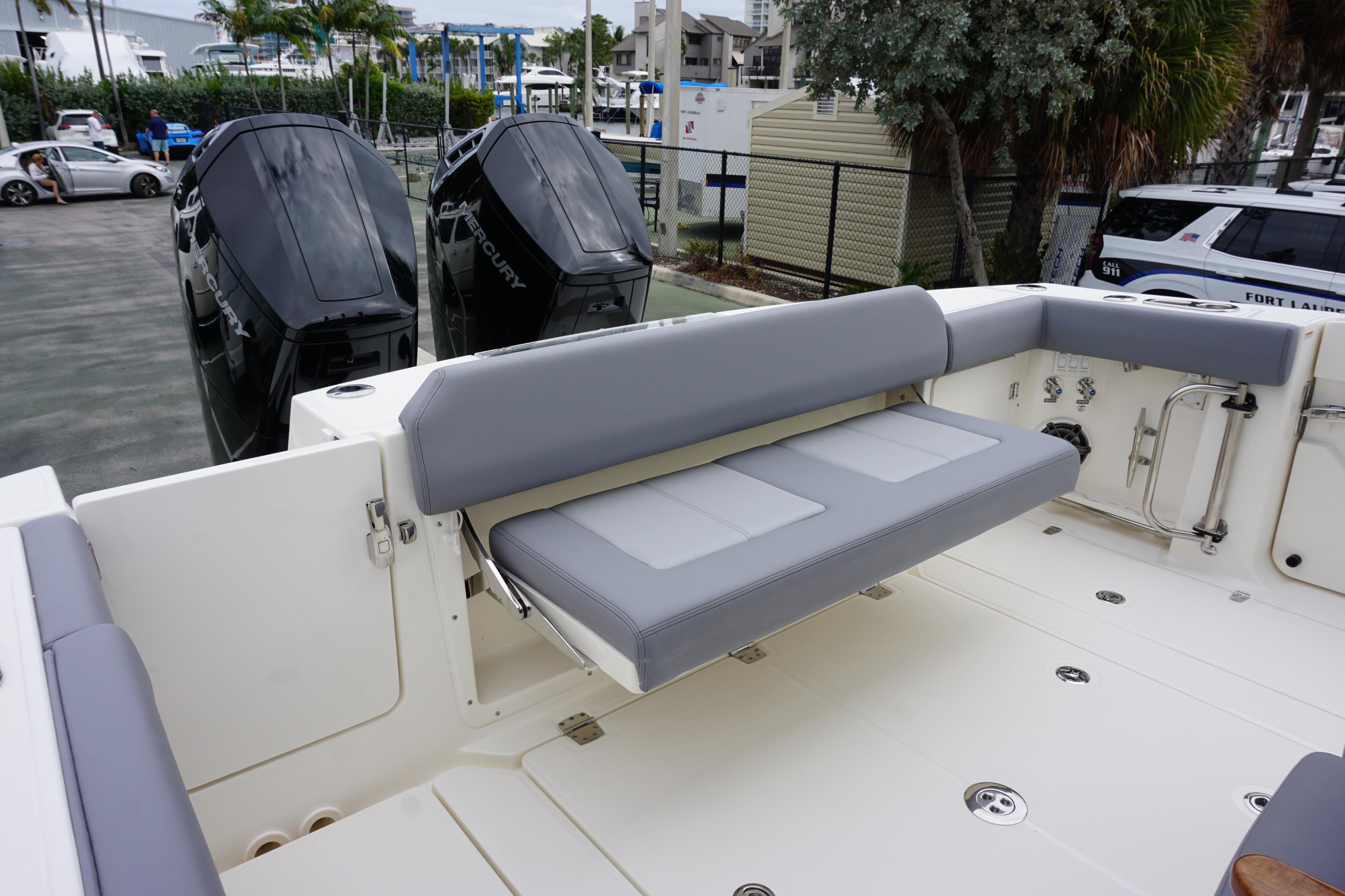 2024 Boston Whaler 360 Outrage with 600 V12 DTS Black Dual Mercury Fourstrokes w/JPO. BWCE0497I324. Notable options included:Steel Blue hull colorSteel Blue underside of hardtopSilver graphicsBlack hardtop frameBlack canvasSea (Gray) Exterior Upholstery PackageBow tow eyeSunshade at bowSunshade at Cockpit - retractableGenerator (120v)Gyro Stabilizer (SeaKeeper) Rails - black rub rail with stainless steel insertExterior teak detail packageTable - fiberglass bow tableTable - cockpit (fiberglass)Lighting - underwater LED (blue)12-V receptacles at transomRod storageConvenience packageRefrigerator/Freezer -Starboard pull-outOutriggers - Deluxe Hardtop MountedSeating - fold down trolling seats (2)Seating - cockpit fold-out bench seatVessel View MobileTheft Deterrent System w/ First Mate w/ConnectivityFirst mate Safety & Security System Dual engineTrim tabs - ManualSimrad Automatic IdentificationCamera - Cockpit Rear ViewFlir M-332 Thermal Night VisionCHIRP sonar with 3D Simrad S5100Sirius satellite weather and radioSimrad 19 NSO DisplaySimrad 19 NSO Additional DisplaySimrad Radar - Open Array (48")Canvas cover packageYacht tender packageLauderdale Marina is a full-service Intracoastal waterfront boat dealership and marina. We sell and service the complete line of Boston Whaler boats from 13 to 42 feet, and all sizes of Mercury and Yamaha outboard motors. Our 4 acre point lot also features the award-winning Fifteenth Street Fisheries restaurant, a 365-foot ethanol-free gas and diesel fuel dock with dock store and a Yamaha and Mercury outboard parts & accessories department. We have boat dockage up to 165 feet and are open 7 days a week. Since 1948.