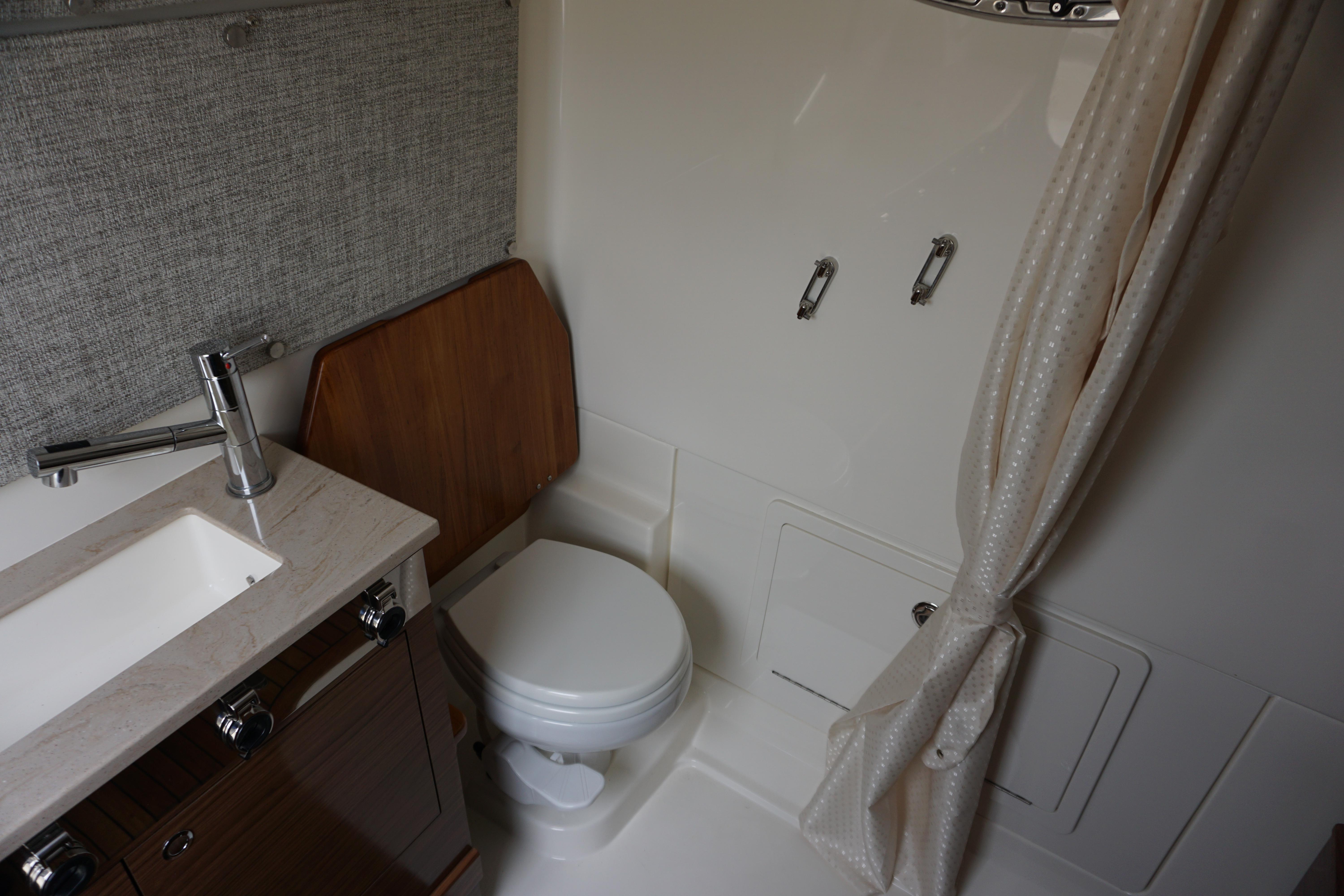 - Toilet - Vacu-Flush® toilet, holding tank with tank level sensor, tank vent filter, overboard discharge, and dockside pump-out
