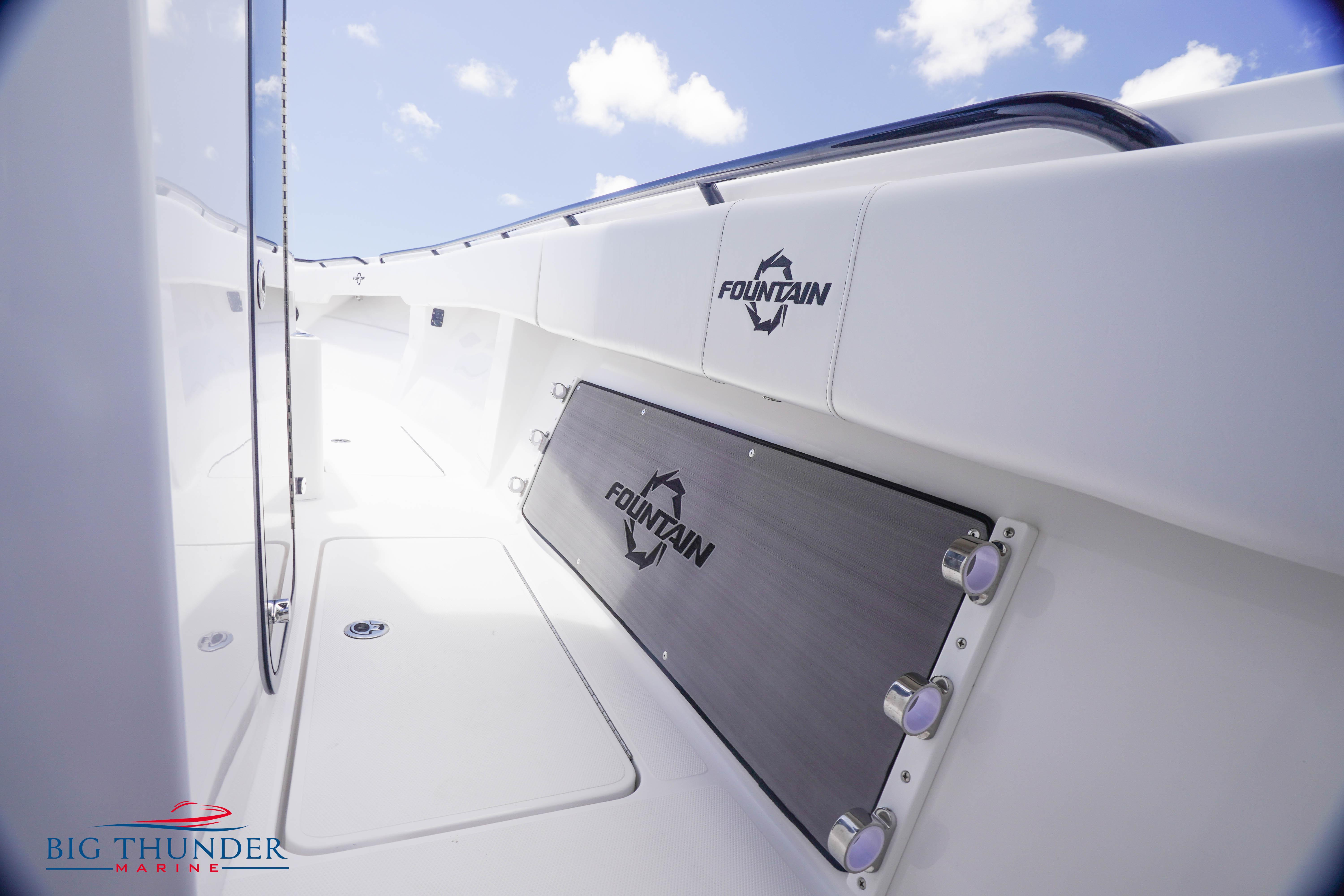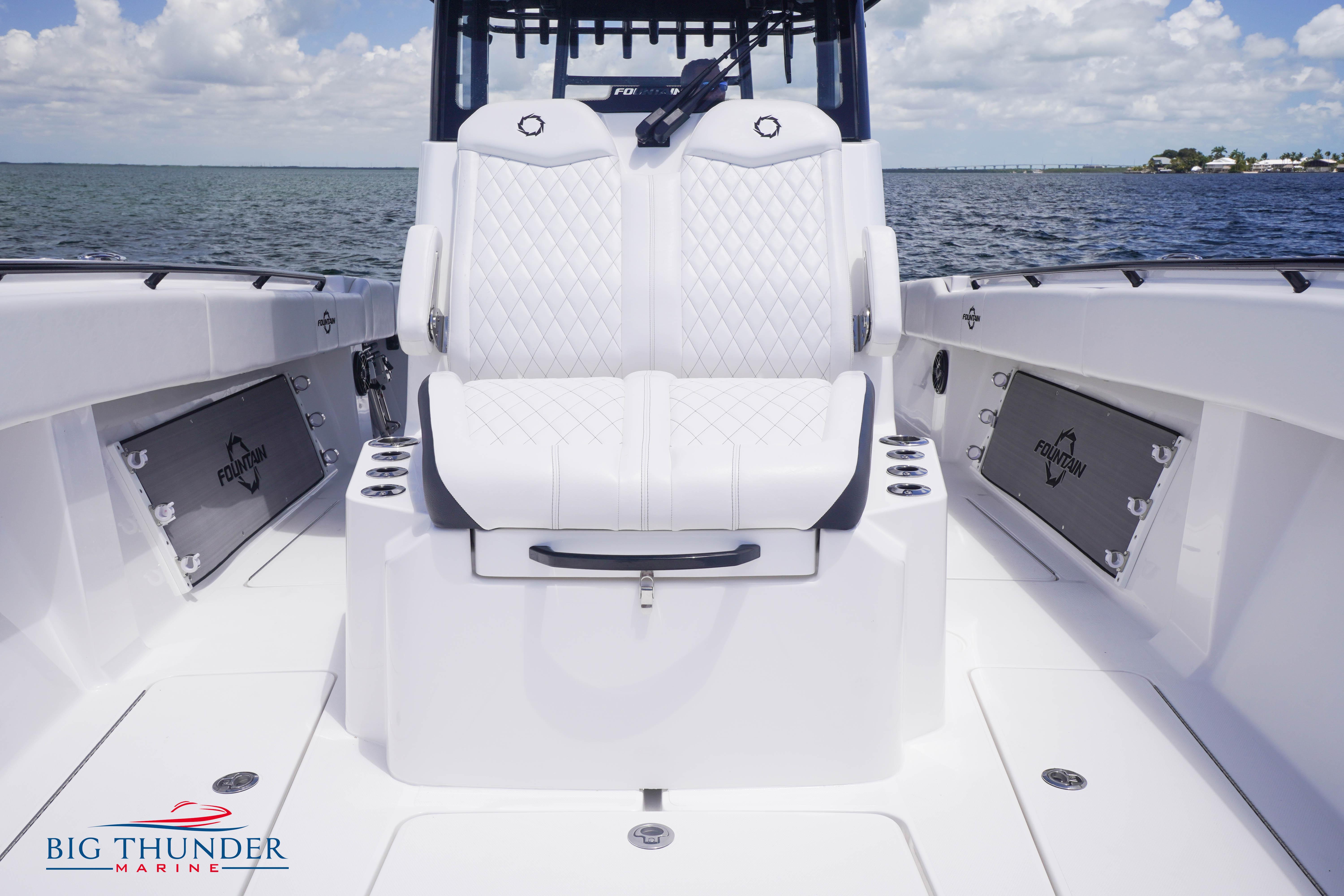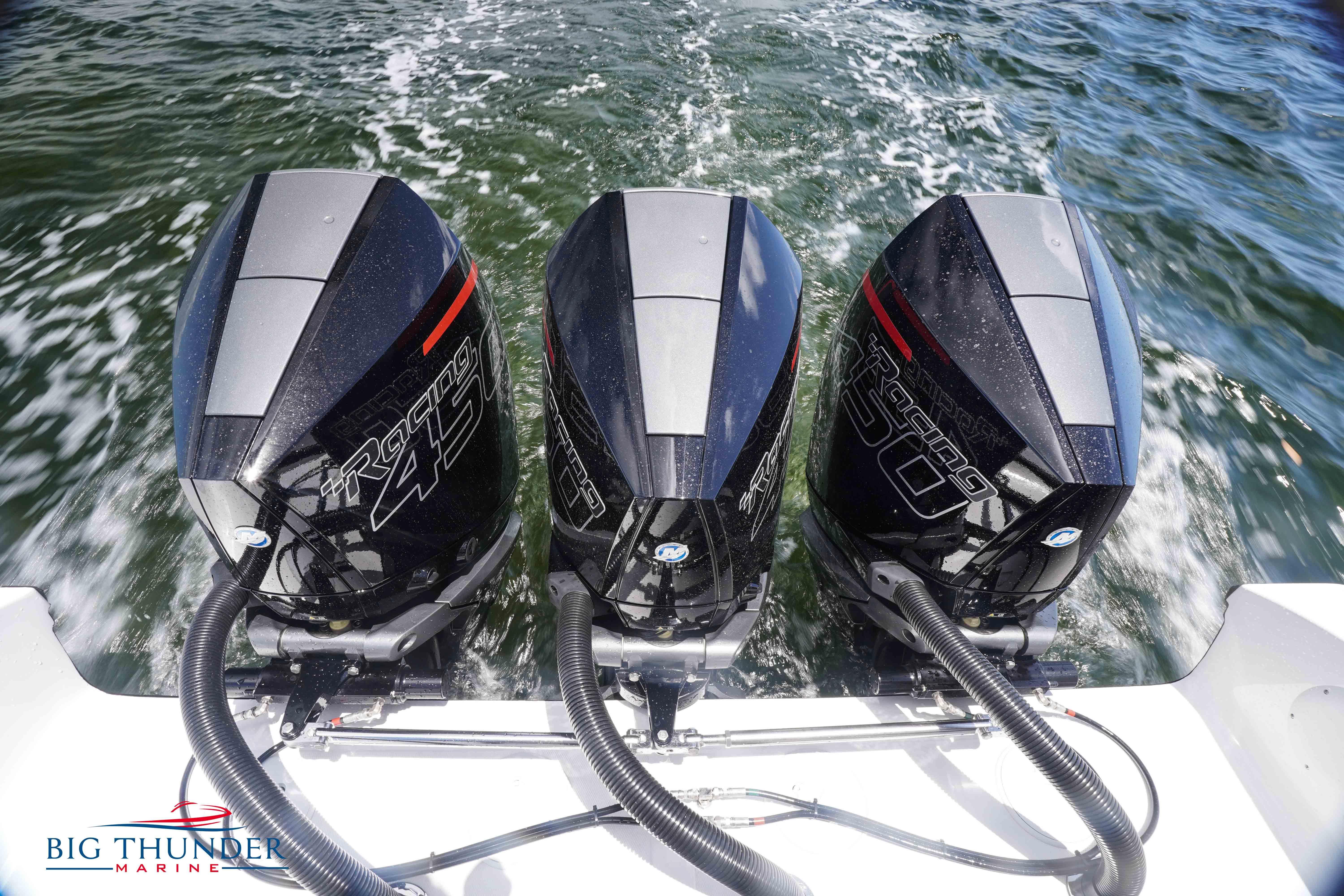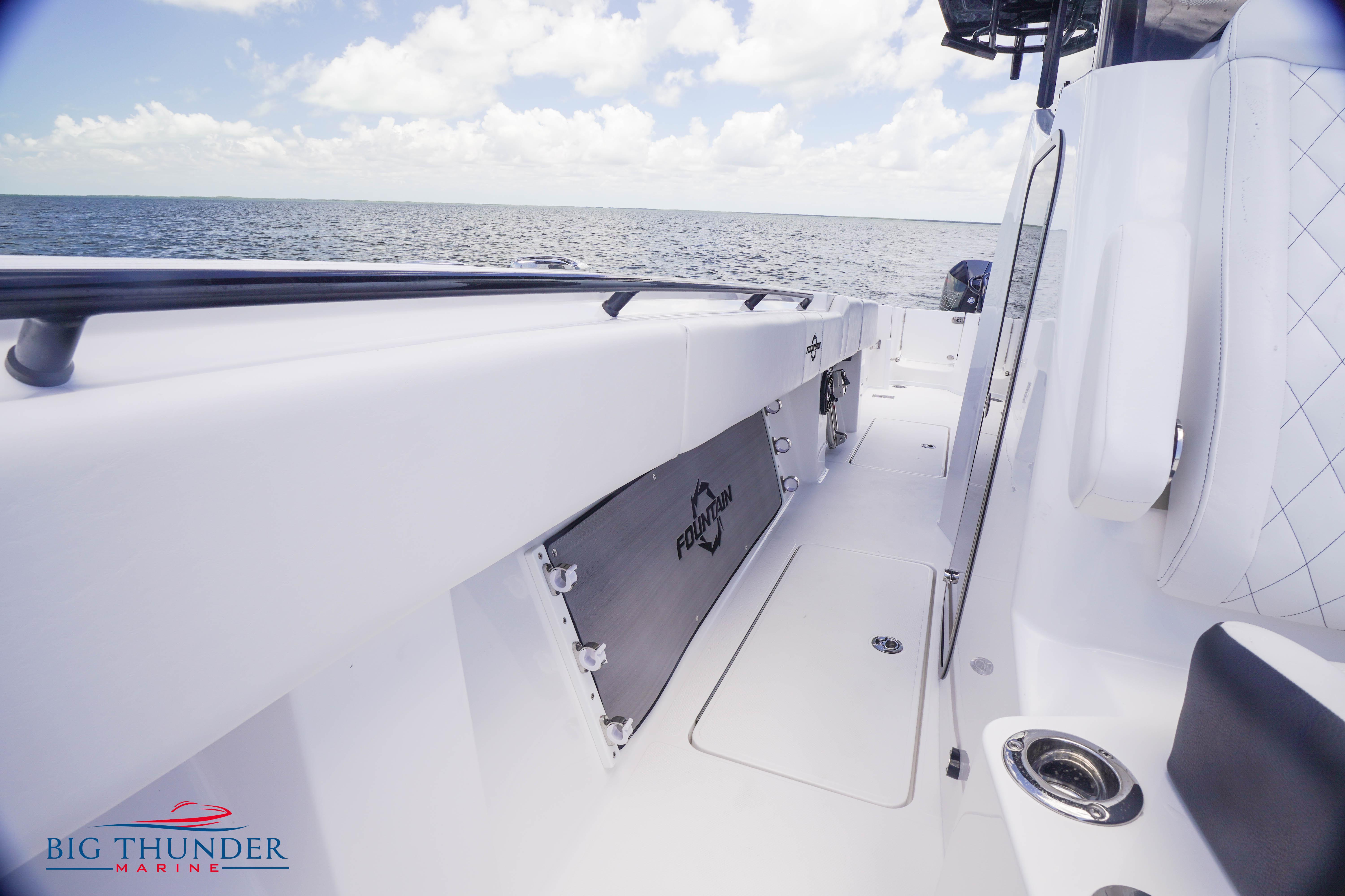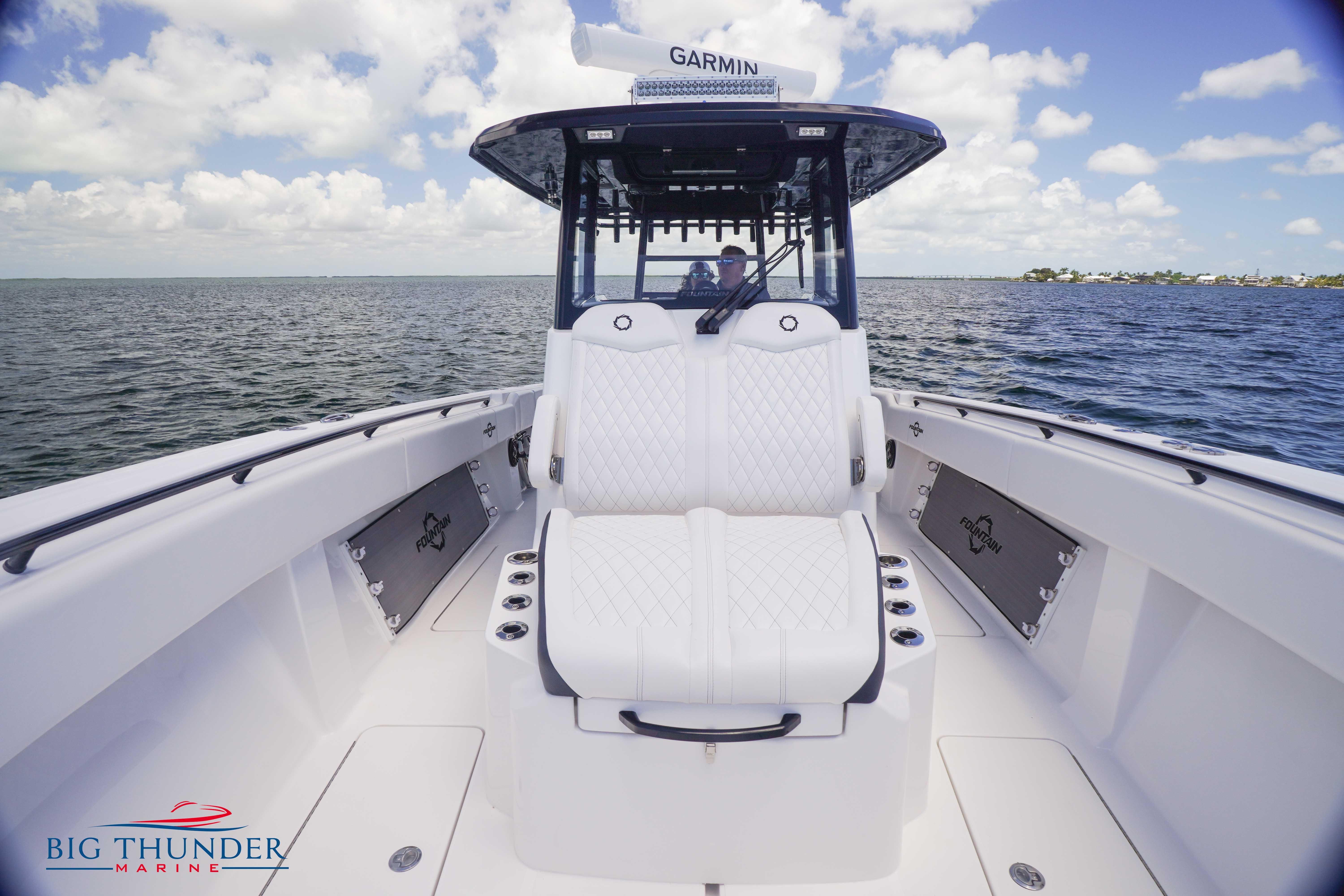 2023 Fountain 38 TETriple Mercury Racing 450R Verado's w/ HD GearcasesBlack Engine Pkg.DTS ControlsReverso Automatic Engine Flushing System380 K-Plane Hydraulic Trim Tabs. Bow ThrusterShadow-Caster RGB Underwater Lighting SystemThru Hull Anchor Windlass/Rode Kit, Stiker Plate, Polished SS Plow, 15’ of 5/16"" Galvanized Chain, 150’ of 5/8"" 8-Strand Braided RopeBlack Vinyl Rubrail InsertTransom Seat w/ Upholstered Seat Bottom & Removable BackrestStarboard Side Cockpit Dive Door w/ Ladder(2) Aft, (2) Forward & (2) Amidship Electric Reel OutletsGemlux BA-12 Outrigger Bases.18’ Collapsible Hybrid Outrigger PolesTackle Center Cooler - 110 QT Frigid Rigid on Rolling SlidesRemovable Upholstered Seat BottomSea Chest UpgradeGarmin Full Function Hydraulic Autopilot w/ Dash Mounted GHC50 ControllerGarmin 254W 4' Beam Open Array RadarDual Garmin GPSmap 8616 16" Multi-Function DisplaysMercury VesselView 903 DisplayAIS 315 VHF Radio w/ AntennaAdditional Airmar B175H TransducerPremium JL Audio System w/ (6) 7.7 LED Spkrs, (2) 10" LED Subs, 600W 6 Ch Amp & 400W Mono Block Amp. XM Weather/Radio Ready OptionAdditional USB Outlet in Dash & Console Topper Glove Compartment(2) Aft Pressurized LivewellsWindshield Wiper(6) Quick Release Fender AttachmentsEnclosed Head w/ Ceramic Toilet, Overboard Discharge, Fresh/Raw Water Holding TankFresh & Raw Water WashdownsTransom ShowerBattery Charging SystemNew trailer quotes available separate. Financing and insurance options also available, call for special dealer pricing and demo scheduling.