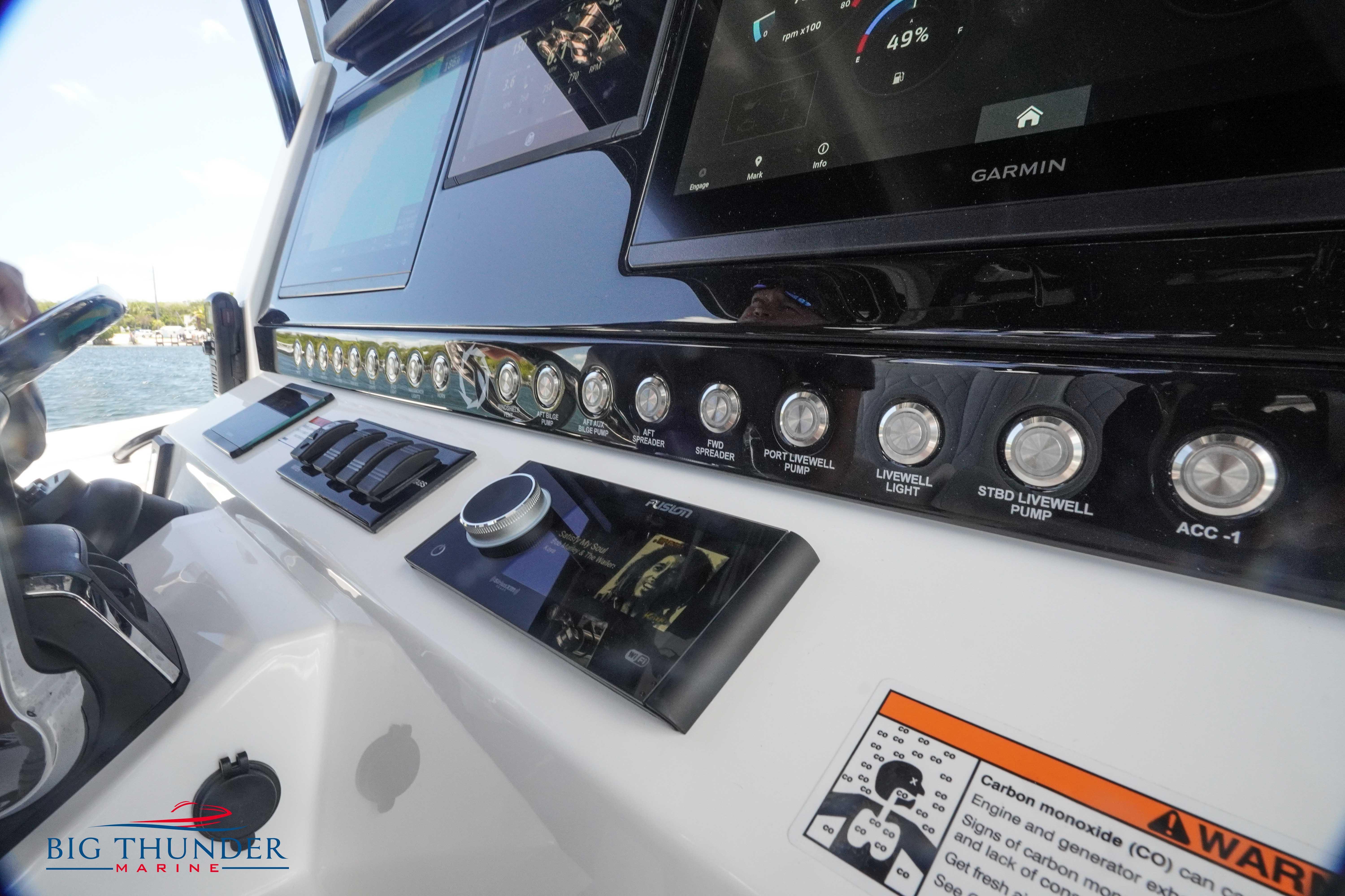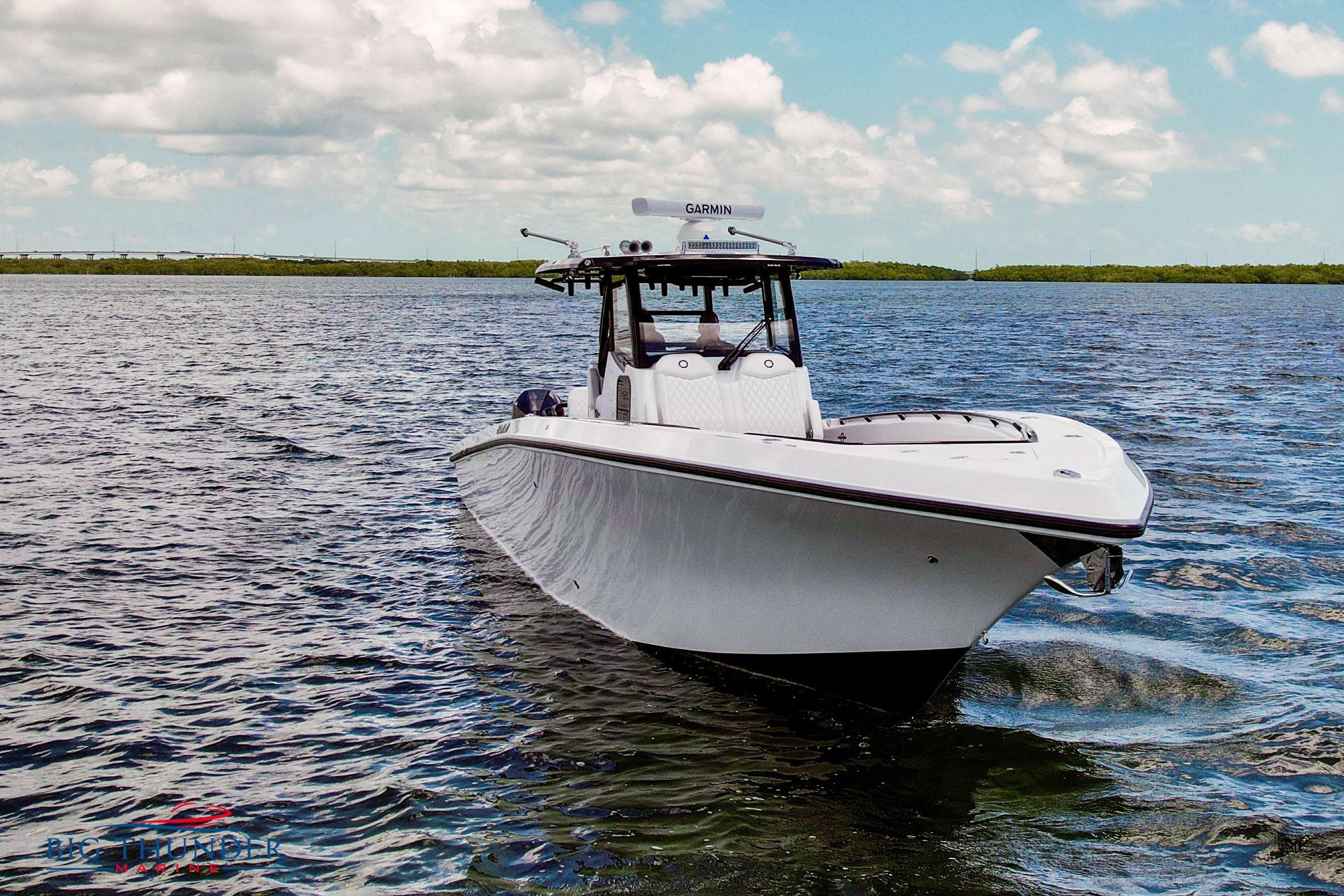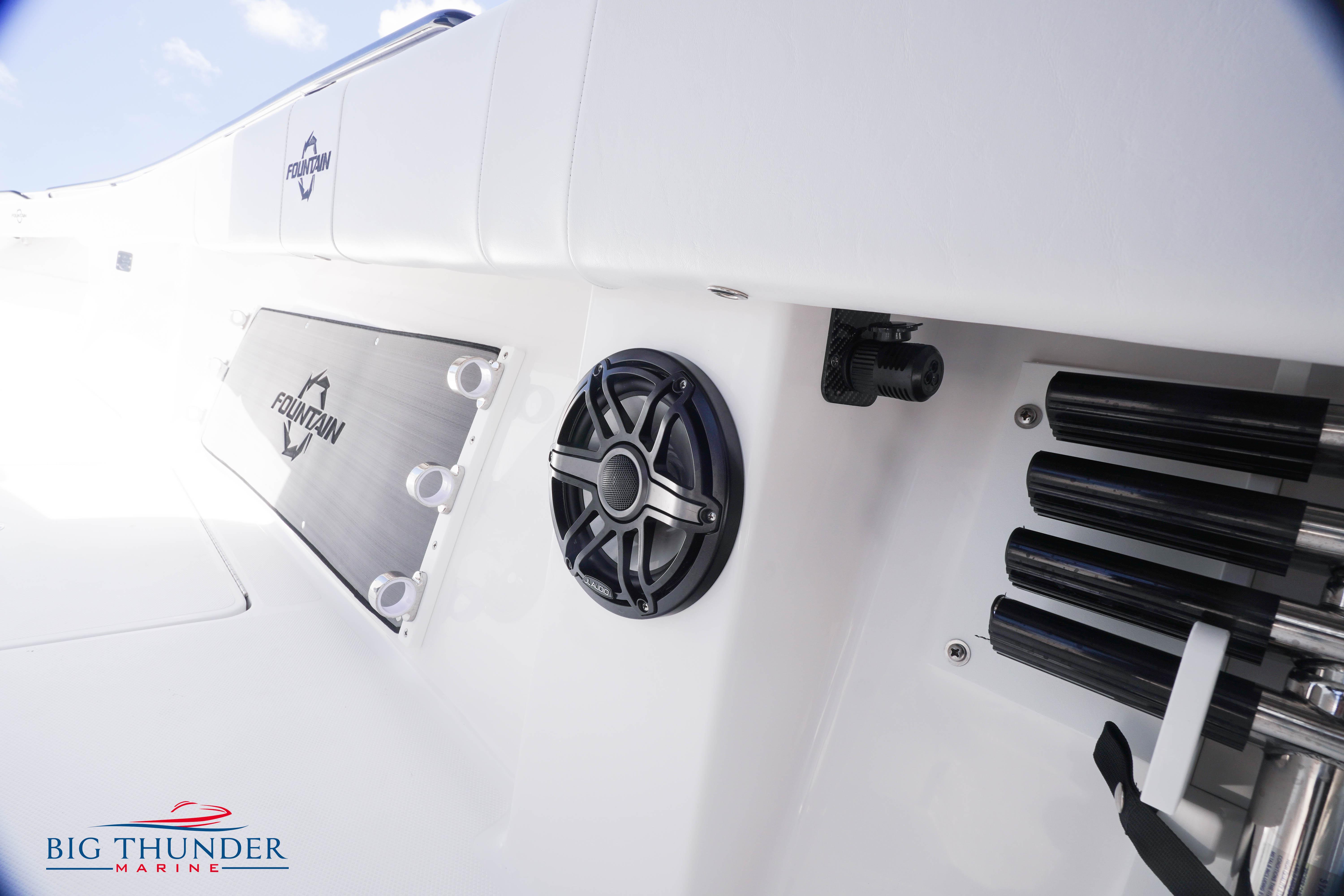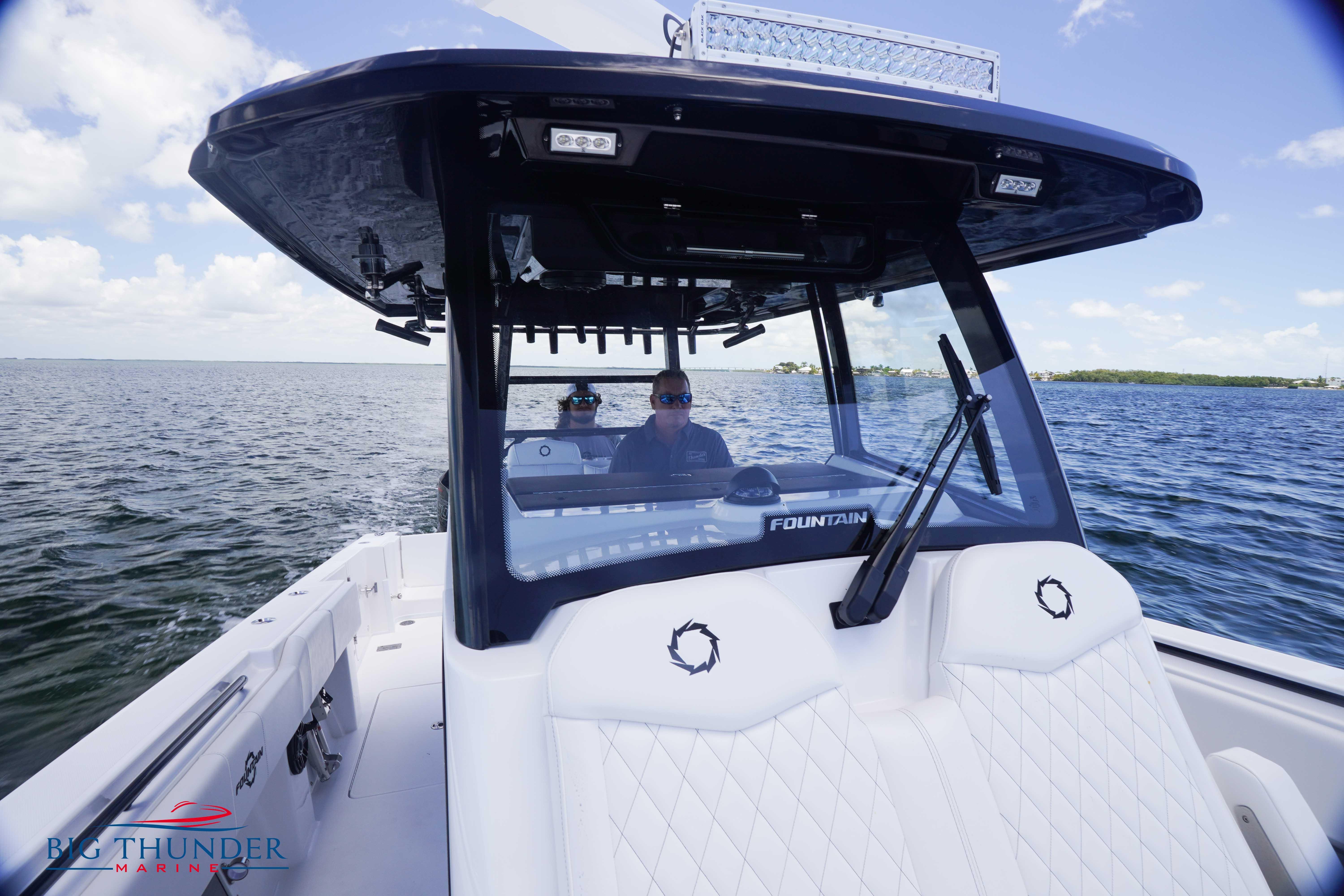2023 Fountain 38 TETriple Mercury Racing 450R Verado's w/ HD GearcasesBlack Engine Pkg.DTS ControlsReverso Automatic Engine Flushing System380 K-Plane Hydraulic Trim Tabs. Bow ThrusterShadow-Caster RGB Underwater Lighting SystemThru Hull Anchor Windlass/Rode Kit, Stiker Plate, Polished SS Plow, 15’ of 5/16"" Galvanized Chain, 150’ of 5/8"" 8-Strand Braided RopeBlack Vinyl Rubrail InsertTransom Seat w/ Upholstered Seat Bottom & Removable BackrestStarboard Side Cockpit Dive Door w/ Ladder(2) Aft, (2) Forward & (2) Amidship Electric Reel OutletsGemlux BA-12 Outrigger Bases.18’ Collapsible Hybrid Outrigger PolesTackle Center Cooler - 110 QT Frigid Rigid on Rolling SlidesRemovable Upholstered Seat BottomSea Chest UpgradeGarmin Full Function Hydraulic Autopilot w/ Dash Mounted GHC50 ControllerGarmin 254W 4' Beam Open Array RadarDual Garmin GPSmap 8616 16" Multi-Function DisplaysMercury VesselView 903 DisplayAIS 315 VHF Radio w/ AntennaAdditional Airmar B175H TransducerPremium JL Audio System w/ (6) 7.7 LED Spkrs, (2) 10" LED Subs, 600W 6 Ch Amp & 400W Mono Block Amp. XM Weather/Radio Ready OptionAdditional USB Outlet in Dash & Console Topper Glove Compartment(2) Aft Pressurized LivewellsWindshield Wiper(6) Quick Release Fender AttachmentsEnclosed Head w/ Ceramic Toilet, Overboard Discharge, Fresh/Raw Water Holding TankFresh & Raw Water WashdownsTransom ShowerBattery Charging SystemNew trailer quotes available separate. Financing and insurance options also available, call for special dealer pricing and demo scheduling.