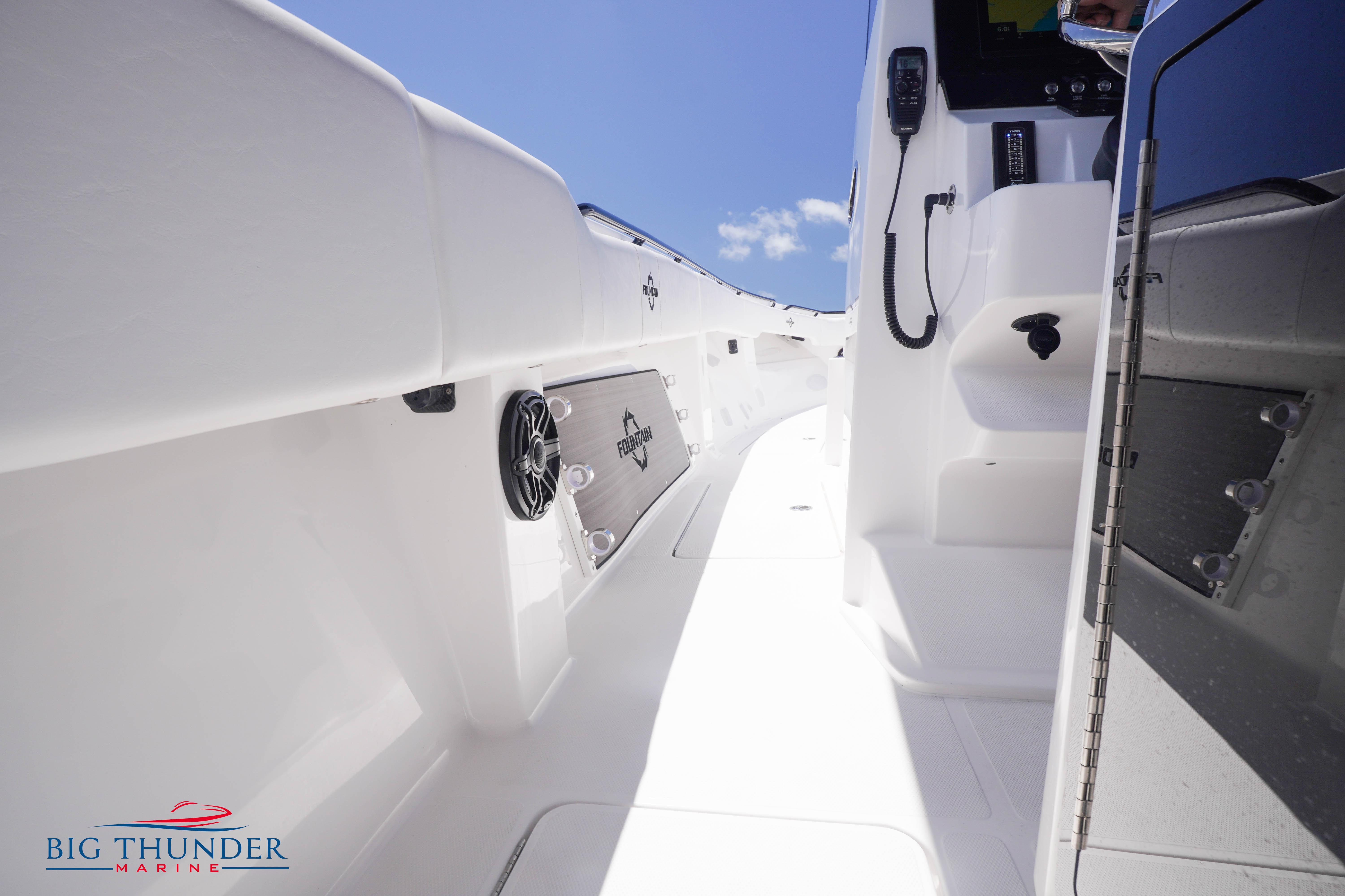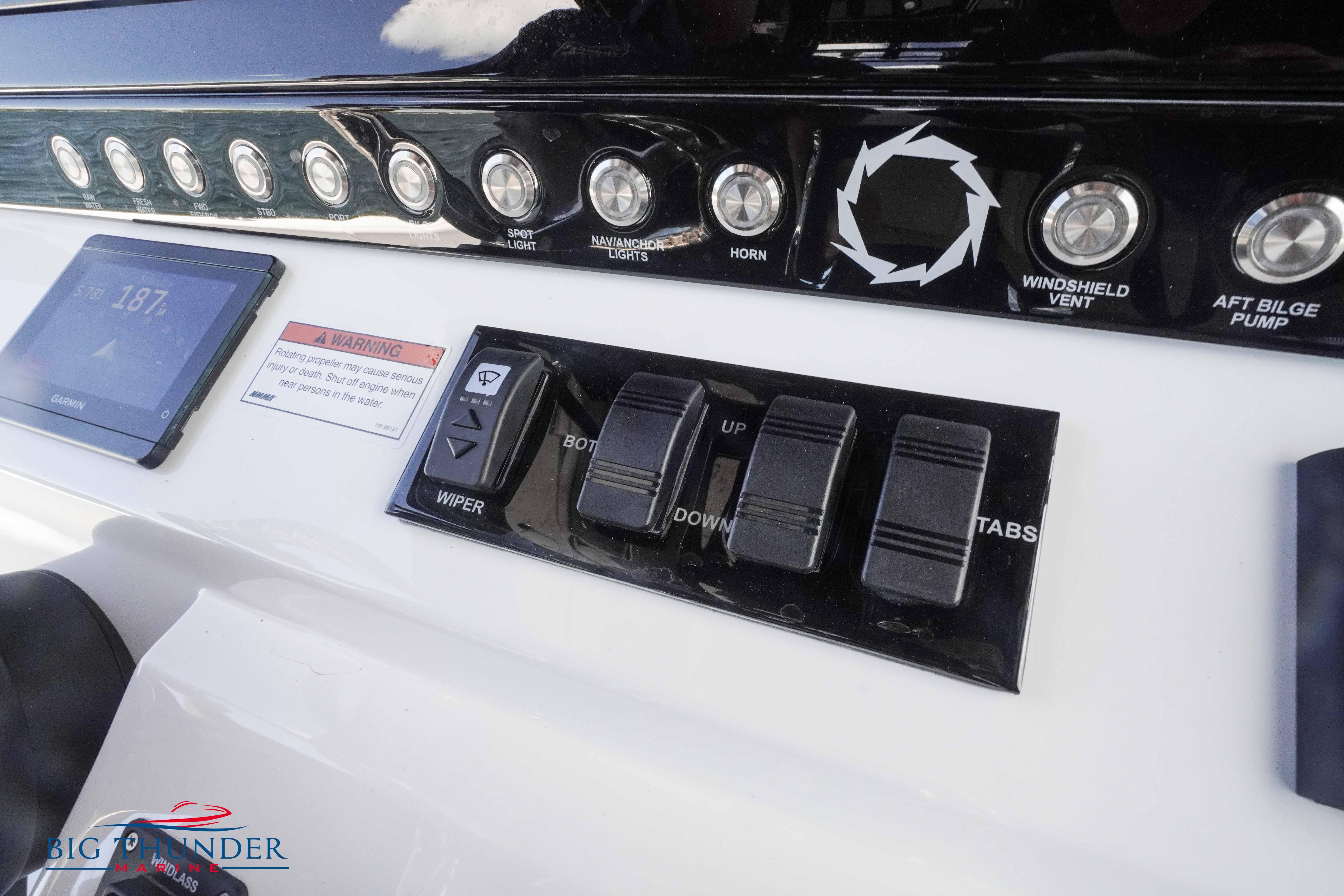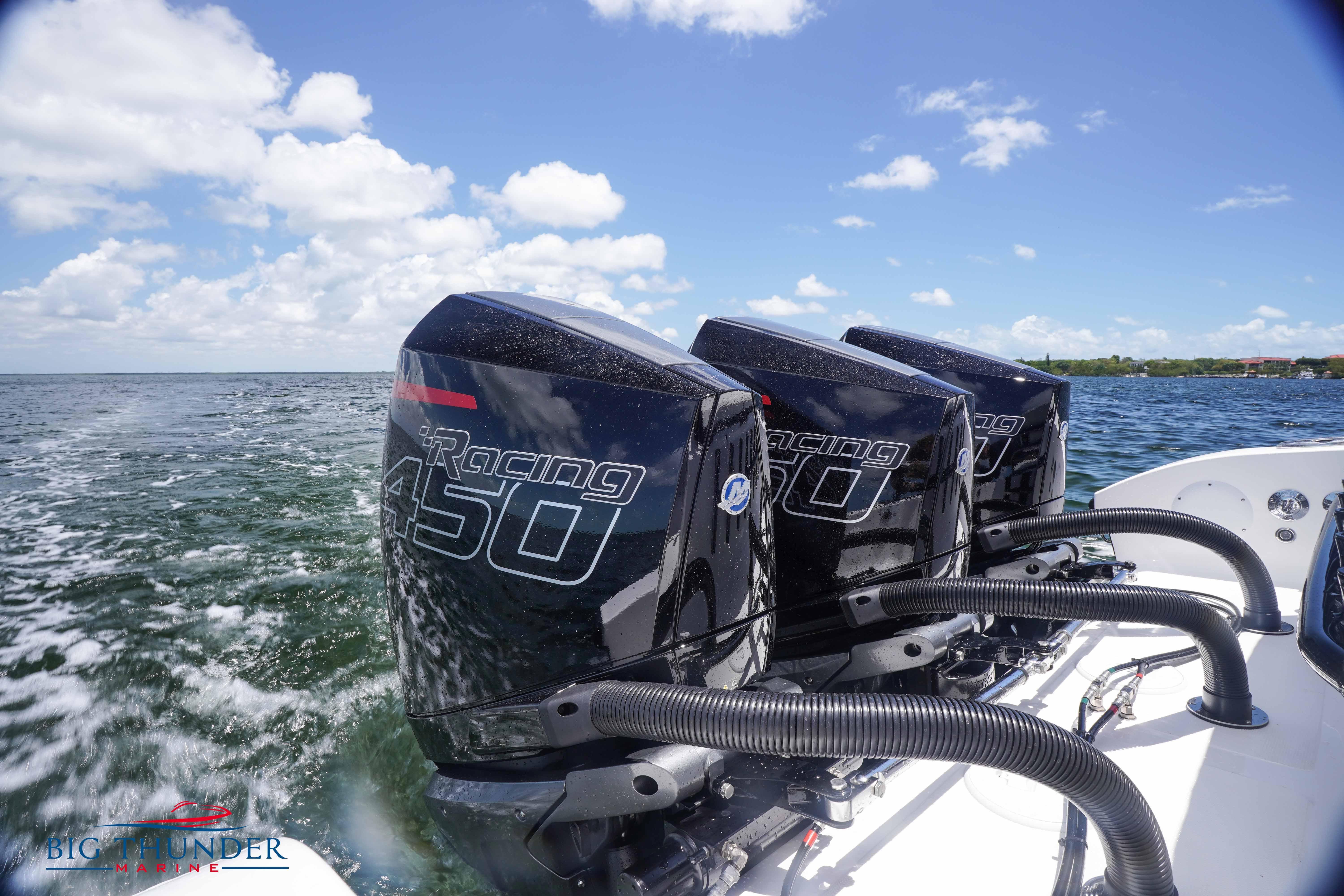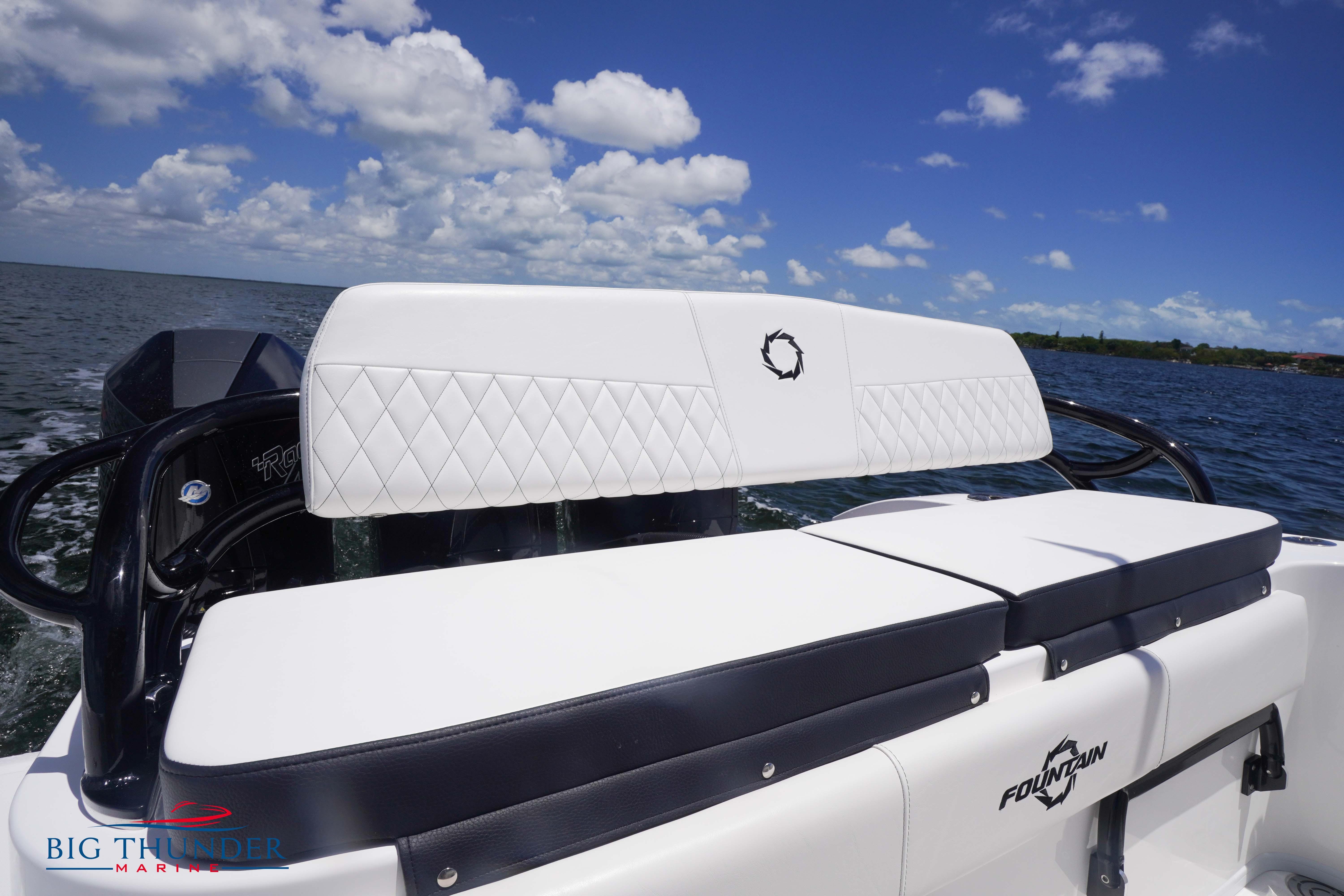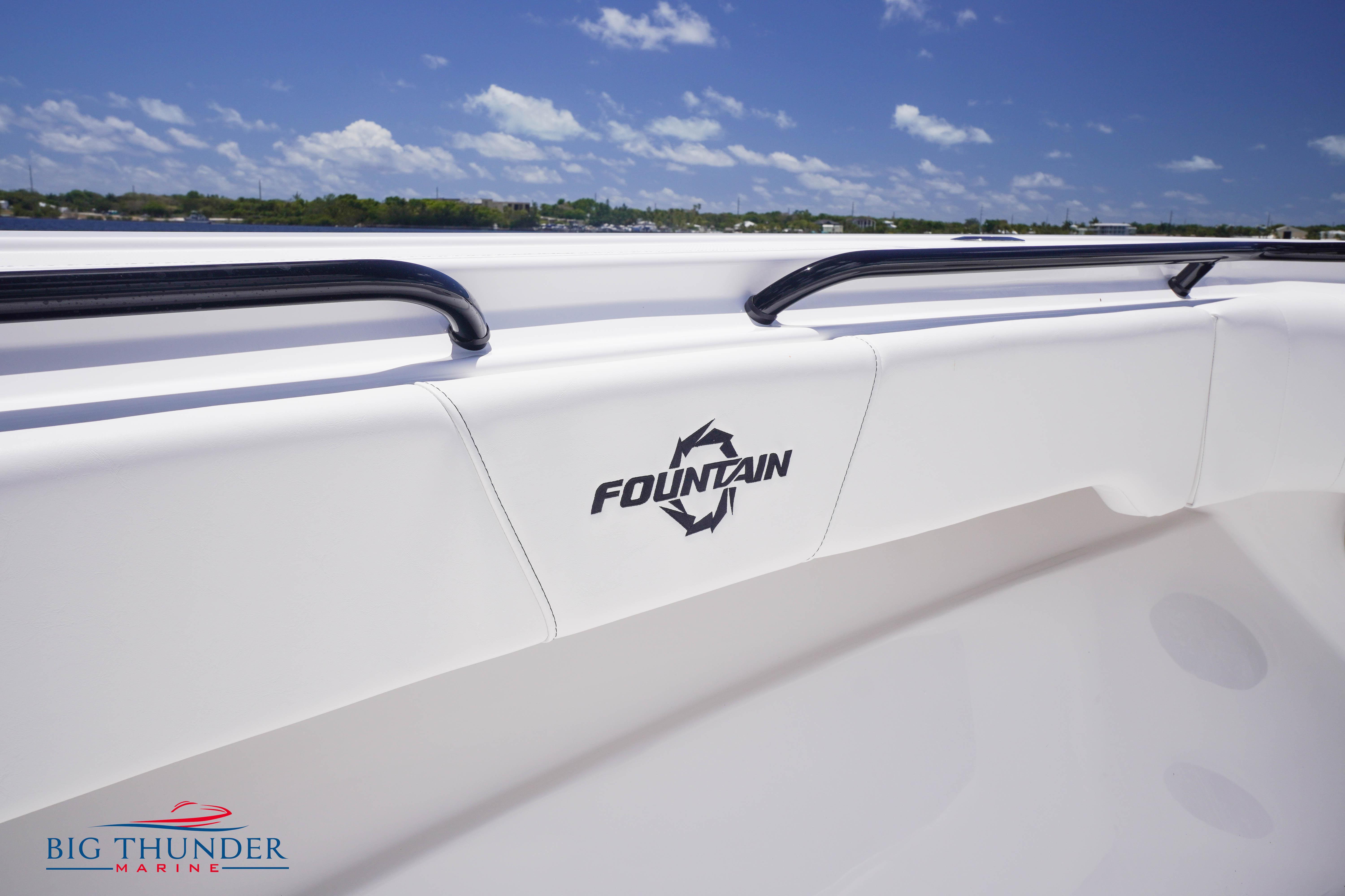 2023 Fountain 38 TETriple Mercury Racing 450R Verado's w/ HD GearcasesBlack Engine Pkg.DTS ControlsReverso Automatic Engine Flushing System380 K-Plane Hydraulic Trim Tabs. Bow ThrusterShadow-Caster RGB Underwater Lighting SystemThru Hull Anchor Windlass/Rode Kit, Stiker Plate, Polished SS Plow, 15’ of 5/16"" Galvanized Chain, 150’ of 5/8"" 8-Strand Braided RopeBlack Vinyl Rubrail InsertTransom Seat w/ Upholstered Seat Bottom & Removable BackrestStarboard Side Cockpit Dive Door w/ Ladder(2) Aft, (2) Forward & (2) Amidship Electric Reel OutletsGemlux BA-12 Outrigger Bases.18’ Collapsible Hybrid Outrigger PolesTackle Center Cooler - 110 QT Frigid Rigid on Rolling SlidesRemovable Upholstered Seat BottomSea Chest UpgradeGarmin Full Function Hydraulic Autopilot w/ Dash Mounted GHC50 ControllerGarmin 254W 4' Beam Open Array RadarDual Garmin GPSmap 8616 16" Multi-Function DisplaysMercury VesselView 903 DisplayAIS 315 VHF Radio w/ AntennaAdditional Airmar B175H TransducerPremium JL Audio System w/ (6) 7.7 LED Spkrs, (2) 10" LED Subs, 600W 6 Ch Amp & 400W Mono Block Amp. XM Weather/Radio Ready OptionAdditional USB Outlet in Dash & Console Topper Glove Compartment(2) Aft Pressurized LivewellsWindshield Wiper(6) Quick Release Fender AttachmentsEnclosed Head w/ Ceramic Toilet, Overboard Discharge, Fresh/Raw Water Holding TankFresh & Raw Water WashdownsTransom ShowerBattery Charging SystemNew trailer quotes available separate. Financing and insurance options also available, call for special dealer pricing and demo scheduling.