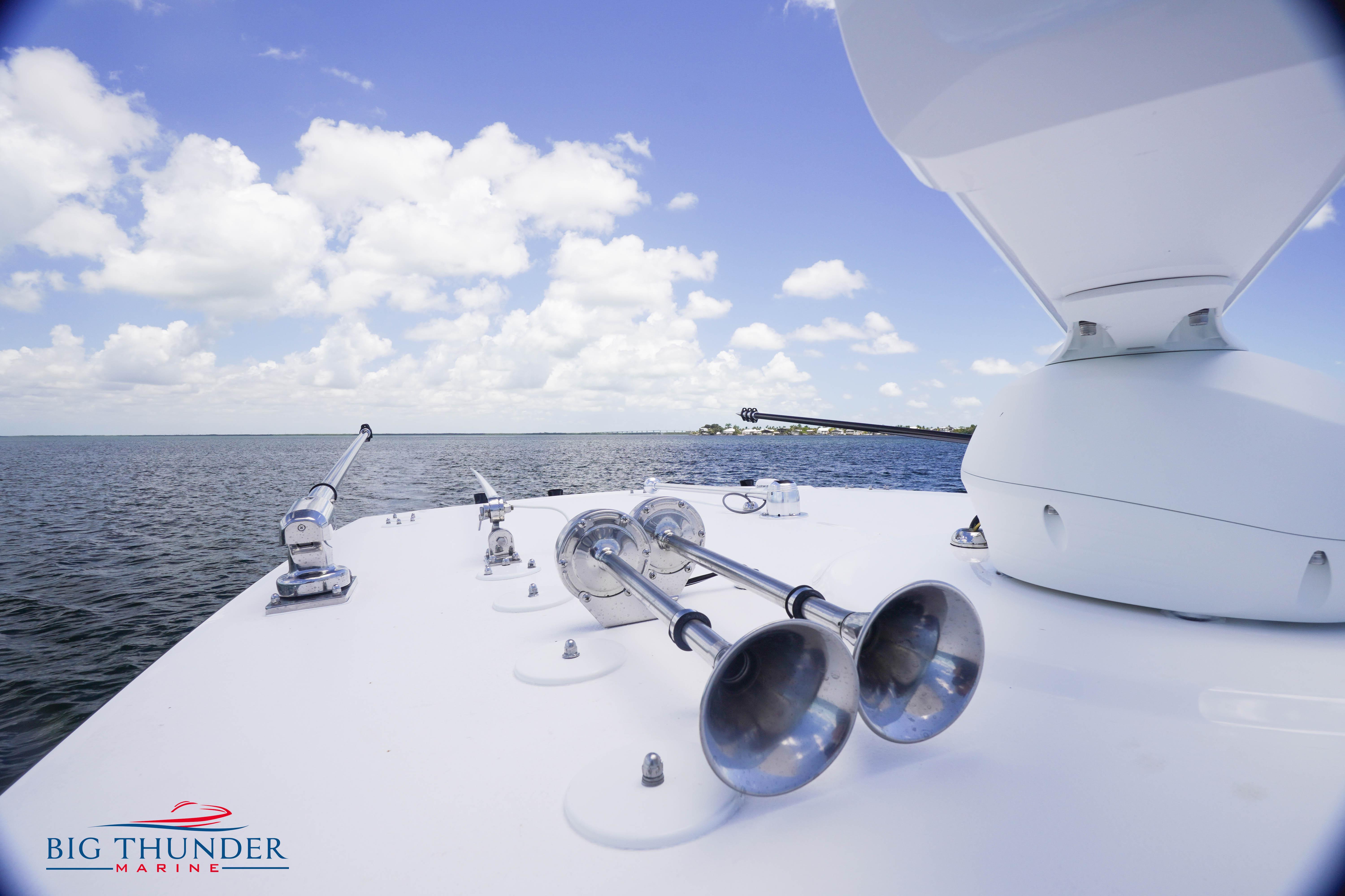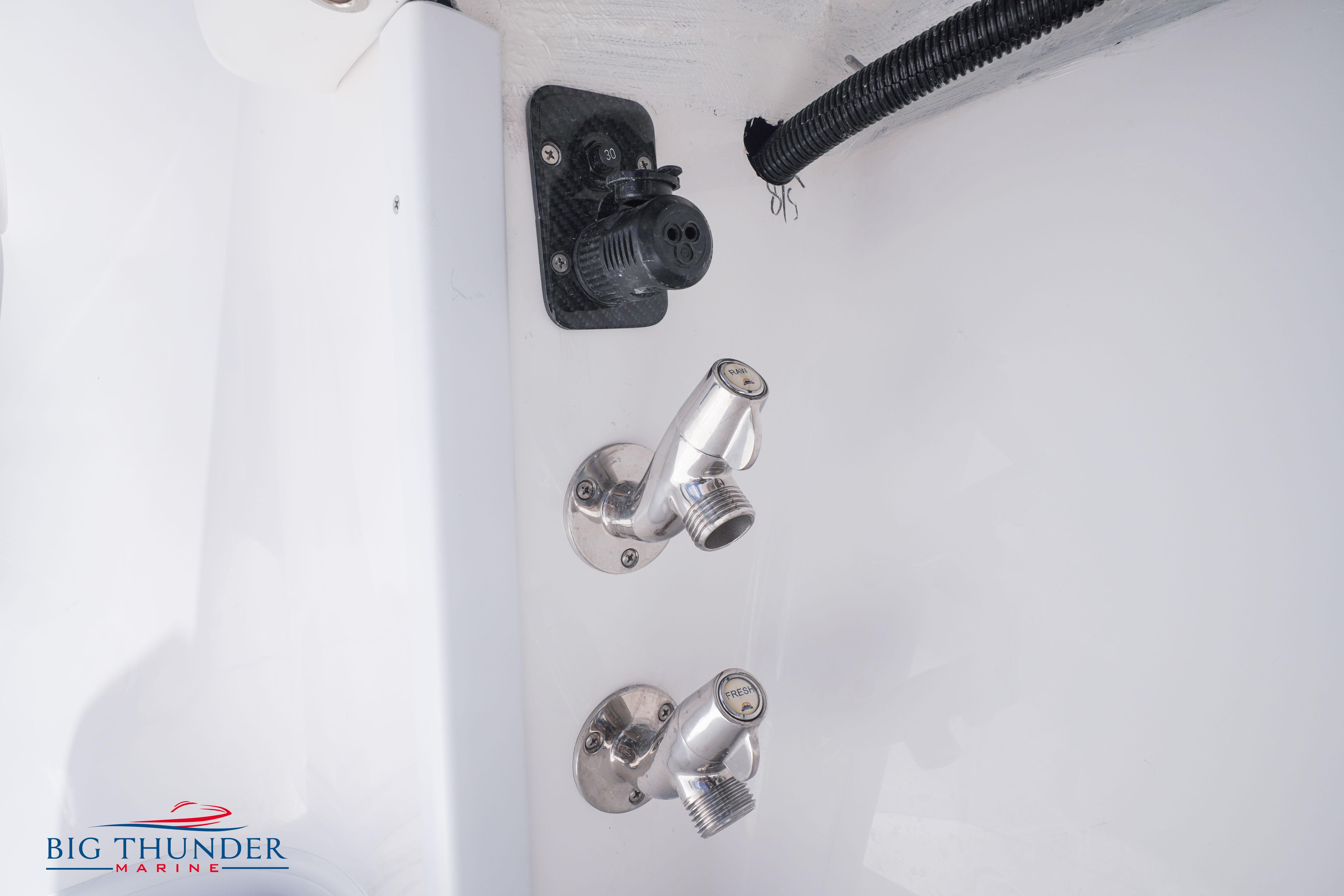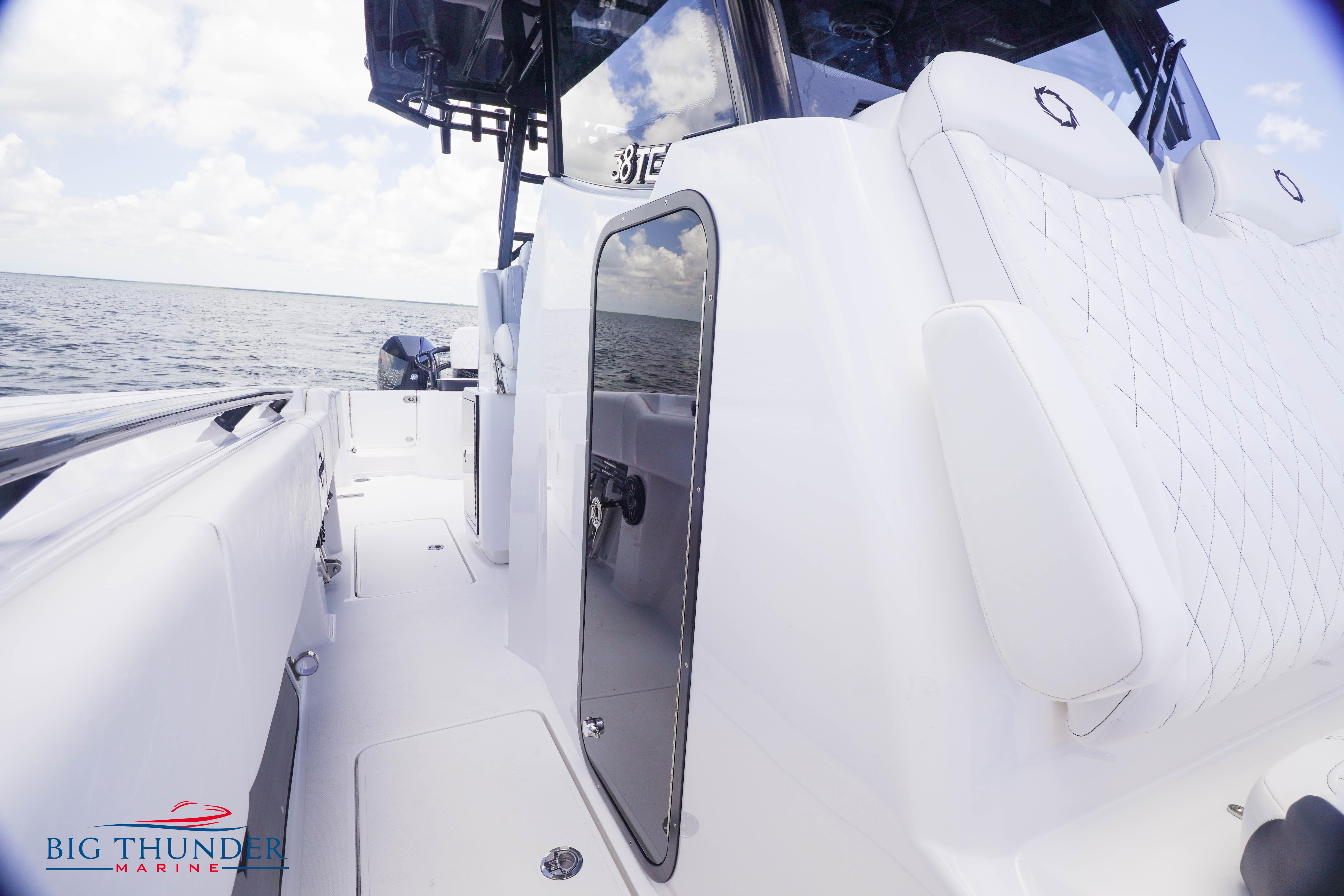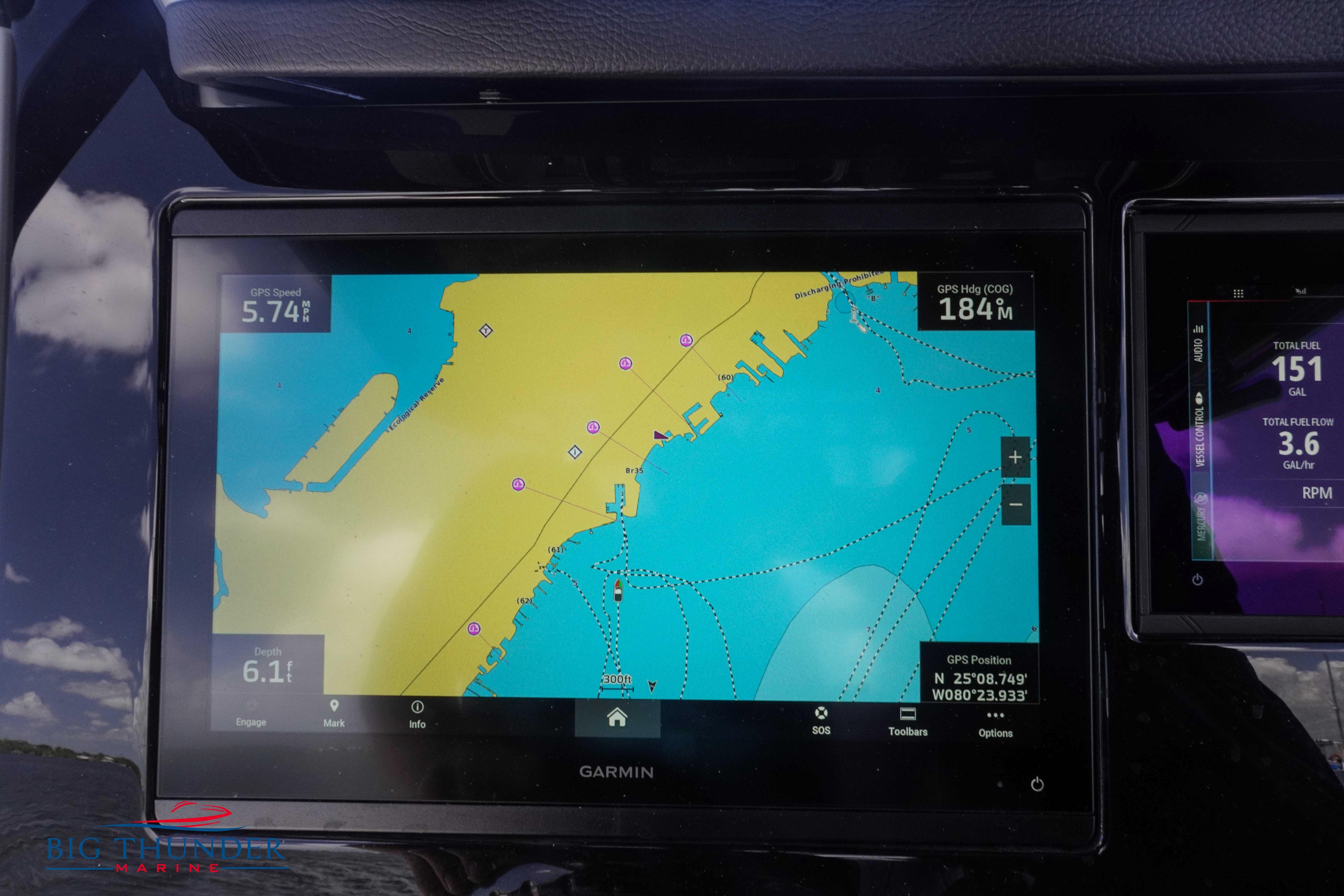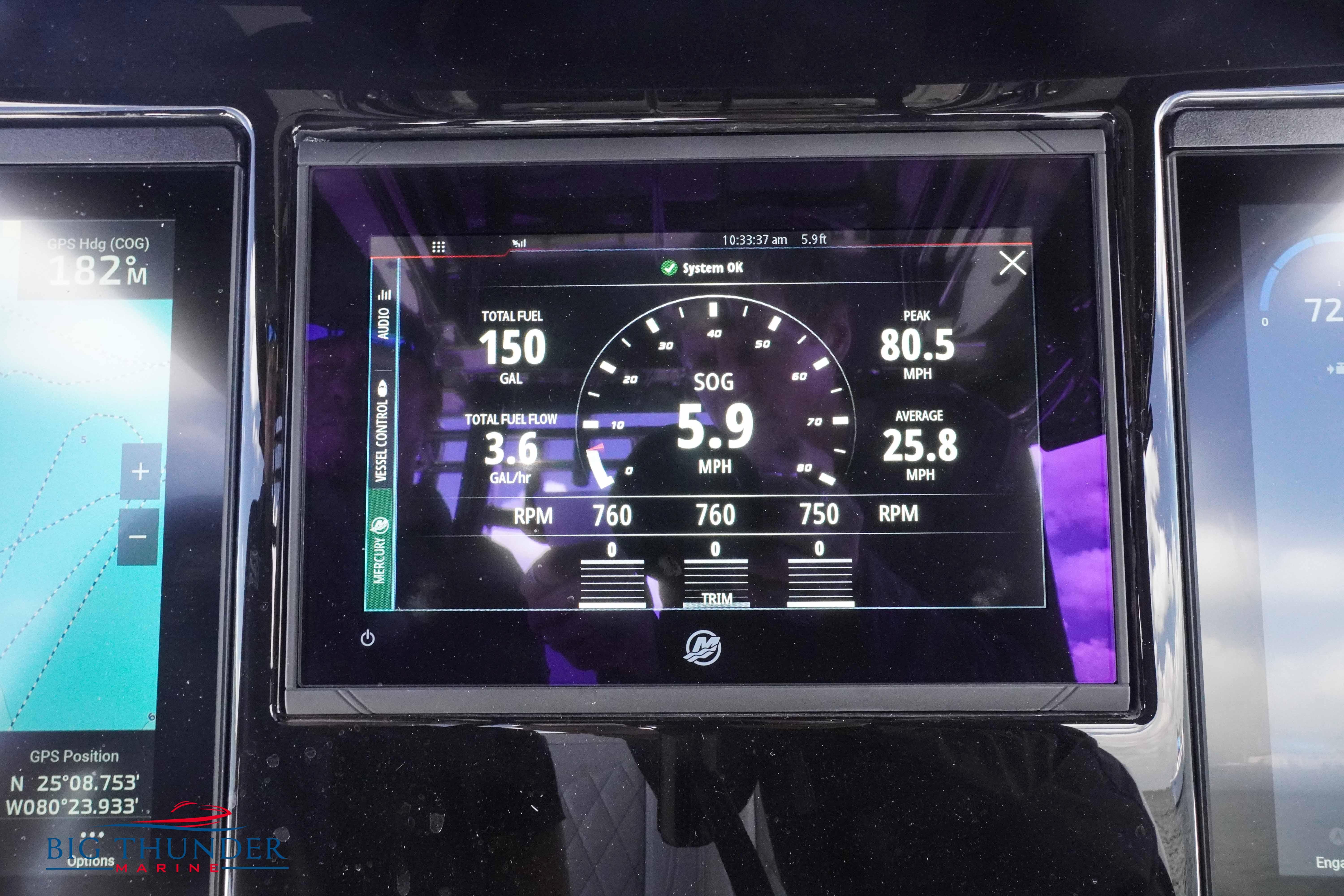 2023 Fountain 38 TETriple Mercury Racing 450R Verado's w/ HD GearcasesBlack Engine Pkg.DTS ControlsReverso Automatic Engine Flushing System380 K-Plane Hydraulic Trim Tabs. Bow ThrusterShadow-Caster RGB Underwater Lighting SystemThru Hull Anchor Windlass/Rode Kit, Stiker Plate, Polished SS Plow, 15’ of 5/16"" Galvanized Chain, 150’ of 5/8"" 8-Strand Braided RopeBlack Vinyl Rubrail InsertTransom Seat w/ Upholstered Seat Bottom & Removable BackrestStarboard Side Cockpit Dive Door w/ Ladder(2) Aft, (2) Forward & (2) Amidship Electric Reel OutletsGemlux BA-12 Outrigger Bases.18’ Collapsible Hybrid Outrigger PolesTackle Center Cooler - 110 QT Frigid Rigid on Rolling SlidesRemovable Upholstered Seat BottomSea Chest UpgradeGarmin Full Function Hydraulic Autopilot w/ Dash Mounted GHC50 ControllerGarmin 254W 4' Beam Open Array RadarDual Garmin GPSmap 8616 16" Multi-Function DisplaysMercury VesselView 903 DisplayAIS 315 VHF Radio w/ AntennaAdditional Airmar B175H TransducerPremium JL Audio System w/ (6) 7.7 LED Spkrs, (2) 10" LED Subs, 600W 6 Ch Amp & 400W Mono Block Amp. XM Weather/Radio Ready OptionAdditional USB Outlet in Dash & Console Topper Glove Compartment(2) Aft Pressurized LivewellsWindshield Wiper(6) Quick Release Fender AttachmentsEnclosed Head w/ Ceramic Toilet, Overboard Discharge, Fresh/Raw Water Holding TankFresh & Raw Water WashdownsTransom ShowerBattery Charging SystemNew trailer quotes available separate. Financing and insurance options also available, call for special dealer pricing and demo scheduling.