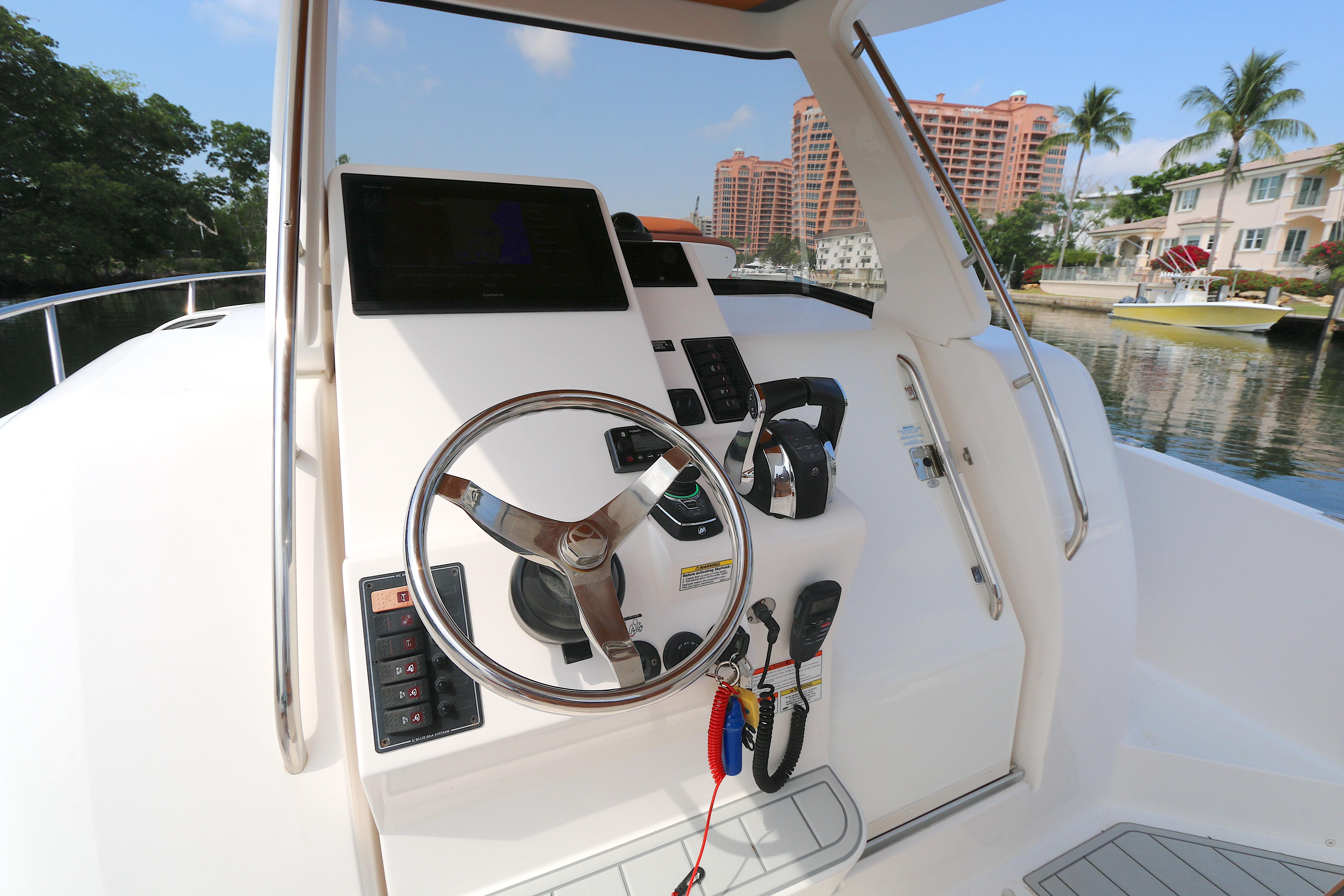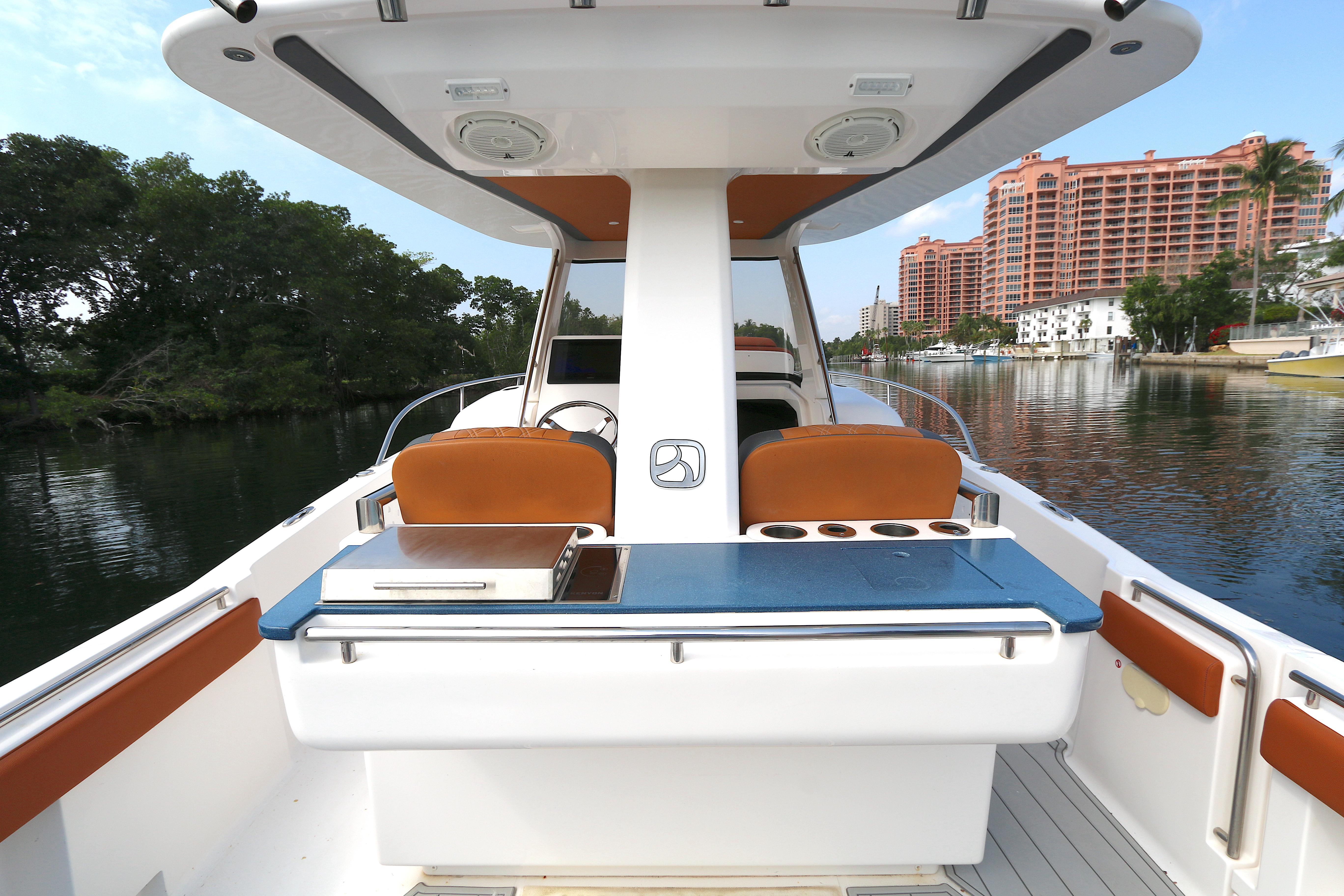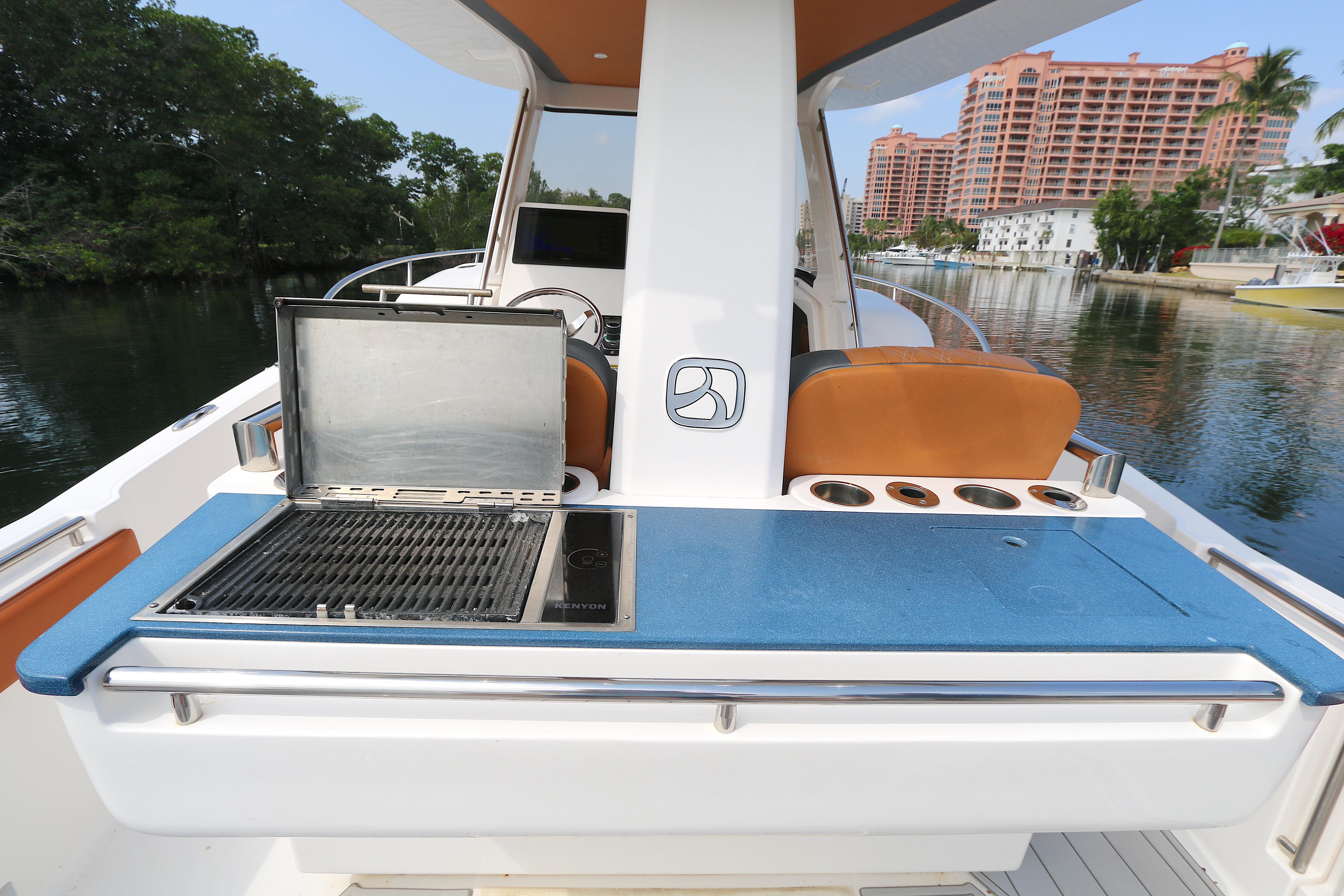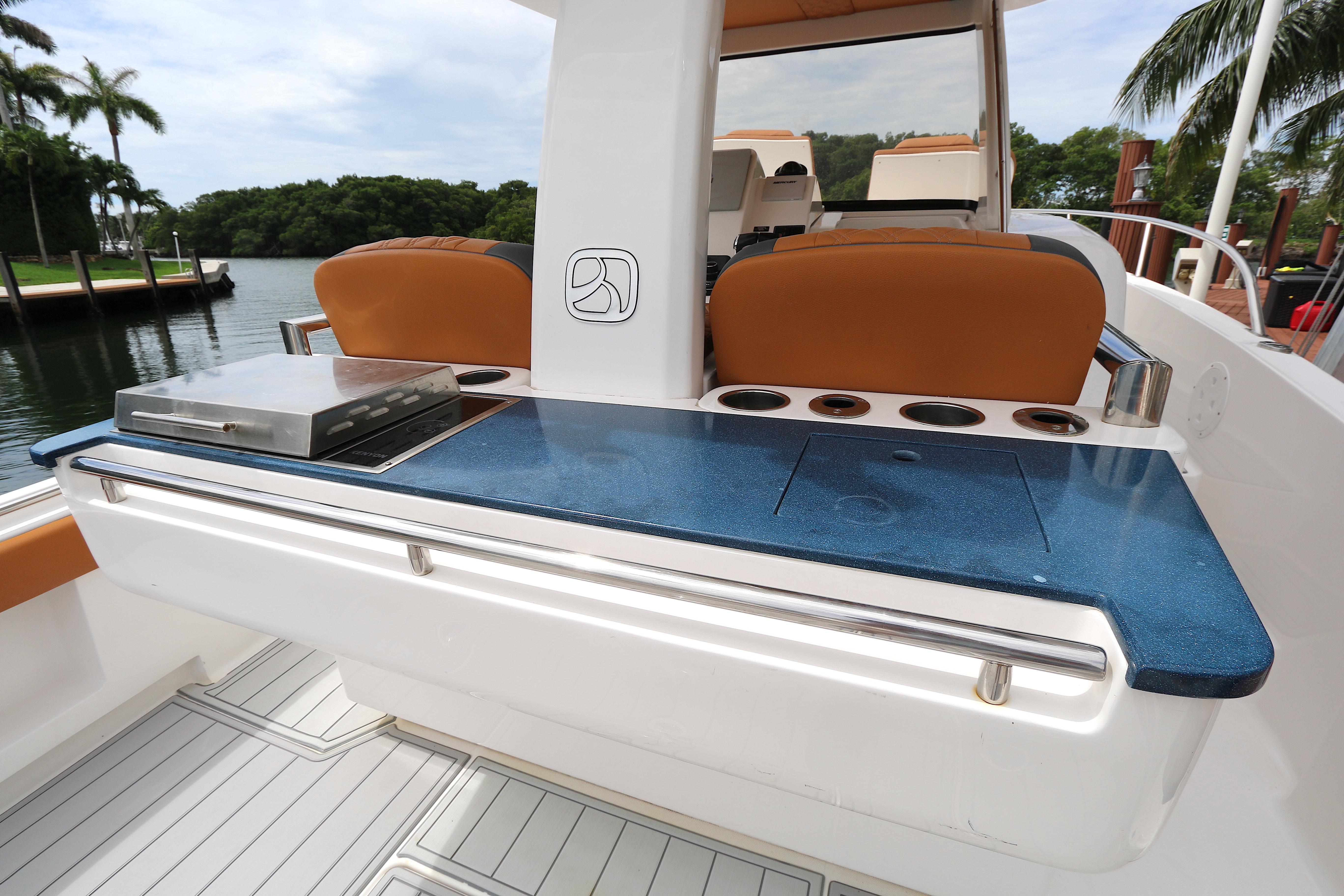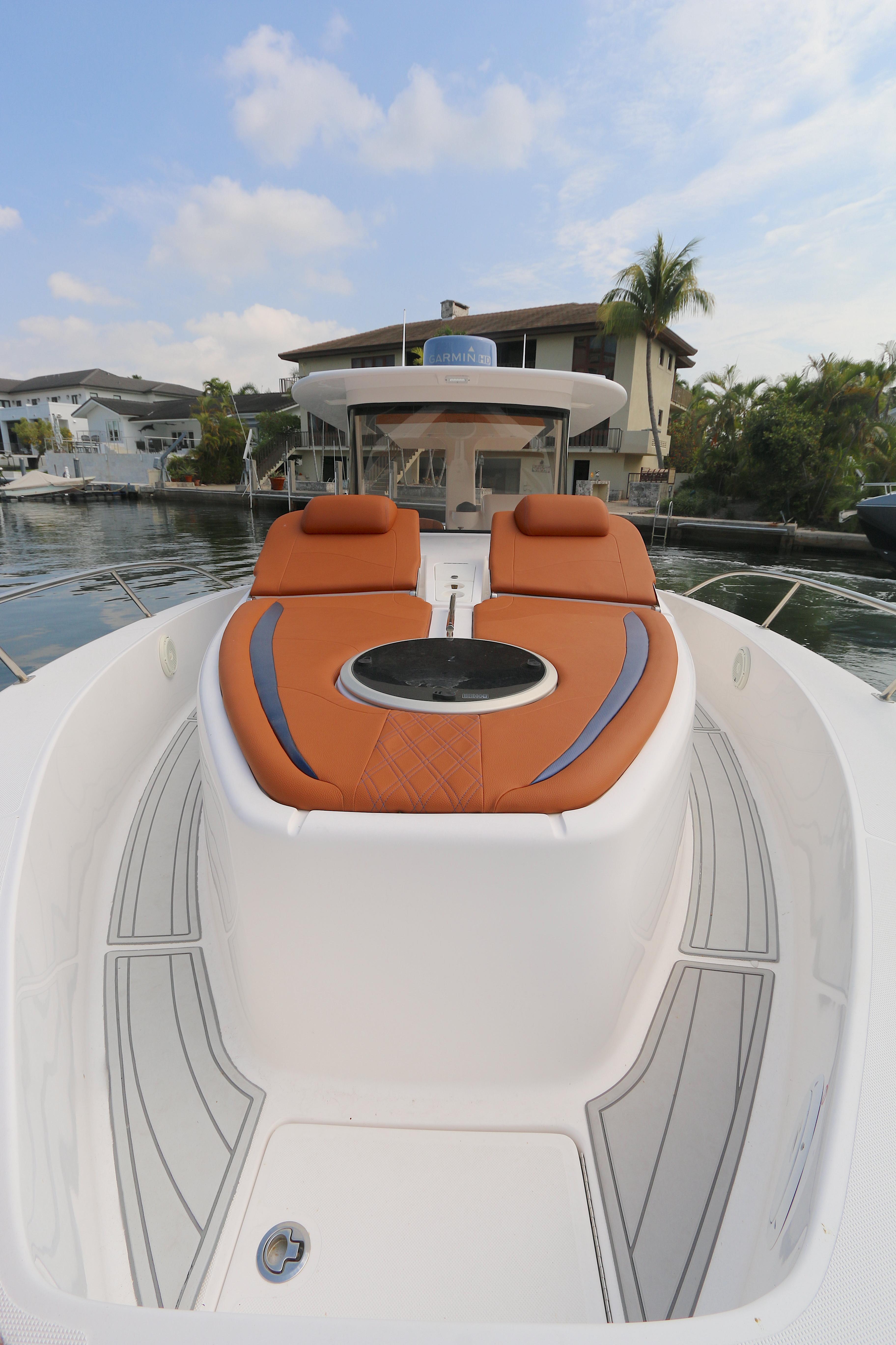 Starting with its highly-customizable cockpit, the 32wa allows you to accommodate huge crowds, entertain with a BBQ grill, spec your boat out for hardcore angling, and any setup in between. You can opt for the standard trim and add in as many options as you’d like—or for a more tailored setup, start with one of our performance trim levels: The Cruiser, Adventurer, or Angler packages. You’ll have several modular seating options, your choice of Corian and deck finishes, reclining lounge seating, and optional forward and aft shades to keep you cool while you’re on your next adventure at seas. Below the deck, you’ll enjoy a comfy v-berth seat, plenty of storage, and dry marine head with a separate shower.