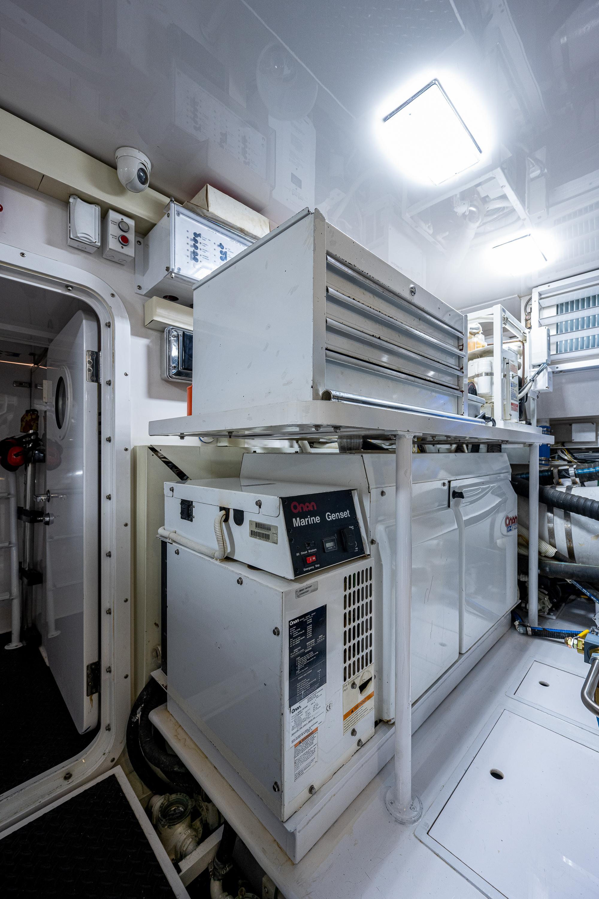 The crew stateroom also has its own head, upper/lower bunks and a direct access door to the immaculate engine room.