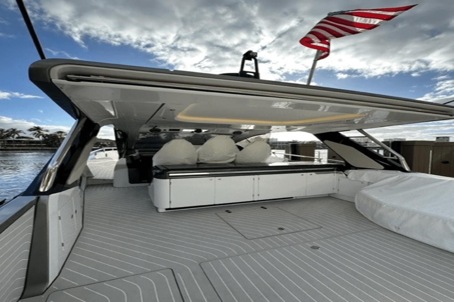 Extended Warranty - Passport Premier Until February 2028A performance phenomenon with sea-immersive DNA, the Verve 47 favors authentic emotions and supreme comfort in an unprecedented style of vessel: the weekender cruiser. With the power to fly across the water at high speeds, this superior outboard machine unties speed and agility, making it the go-to marvel for frequent yet seamless location-hopping for whomever desires a pure connection with the sea. A vigorous design statement, this yacht full of character is as innovative as it gets. Push the limits with the Verve 47.Extended Warranty - Passport Premier Until February 2028Warranty includes Engines, Generators, Navigation Electronics, Wear and BoatQUAD Mercury 450R EnginesSeakeeper Gyro Stabilization185 HoursJoystick Control/Mercury Maneuvering PackageRaymarine Platinum Navigation PackageRaymarine Thermal Camera IP M332Satellite DishOutdoor KitchenTelevision on Lift in CockpitAutomatic Outboard Flushing SystemEstech Decking*Professional Photography Coming
