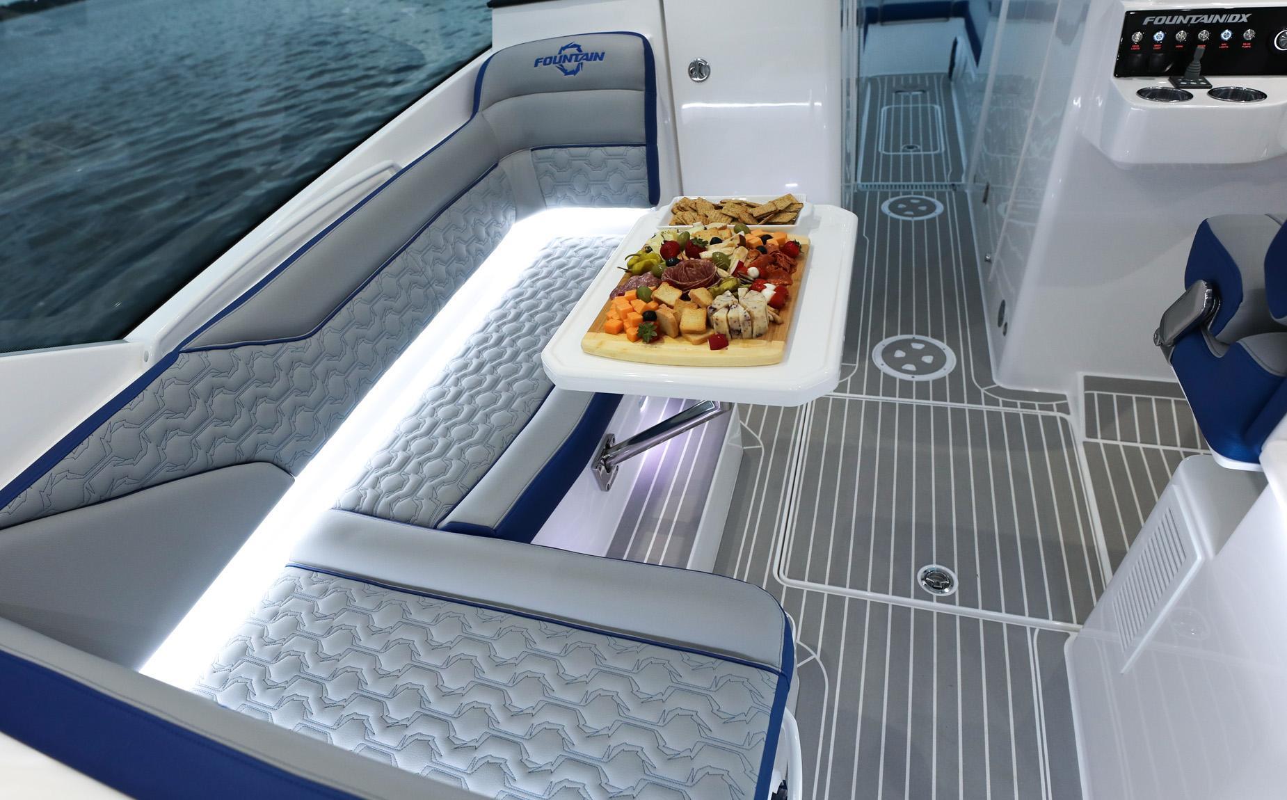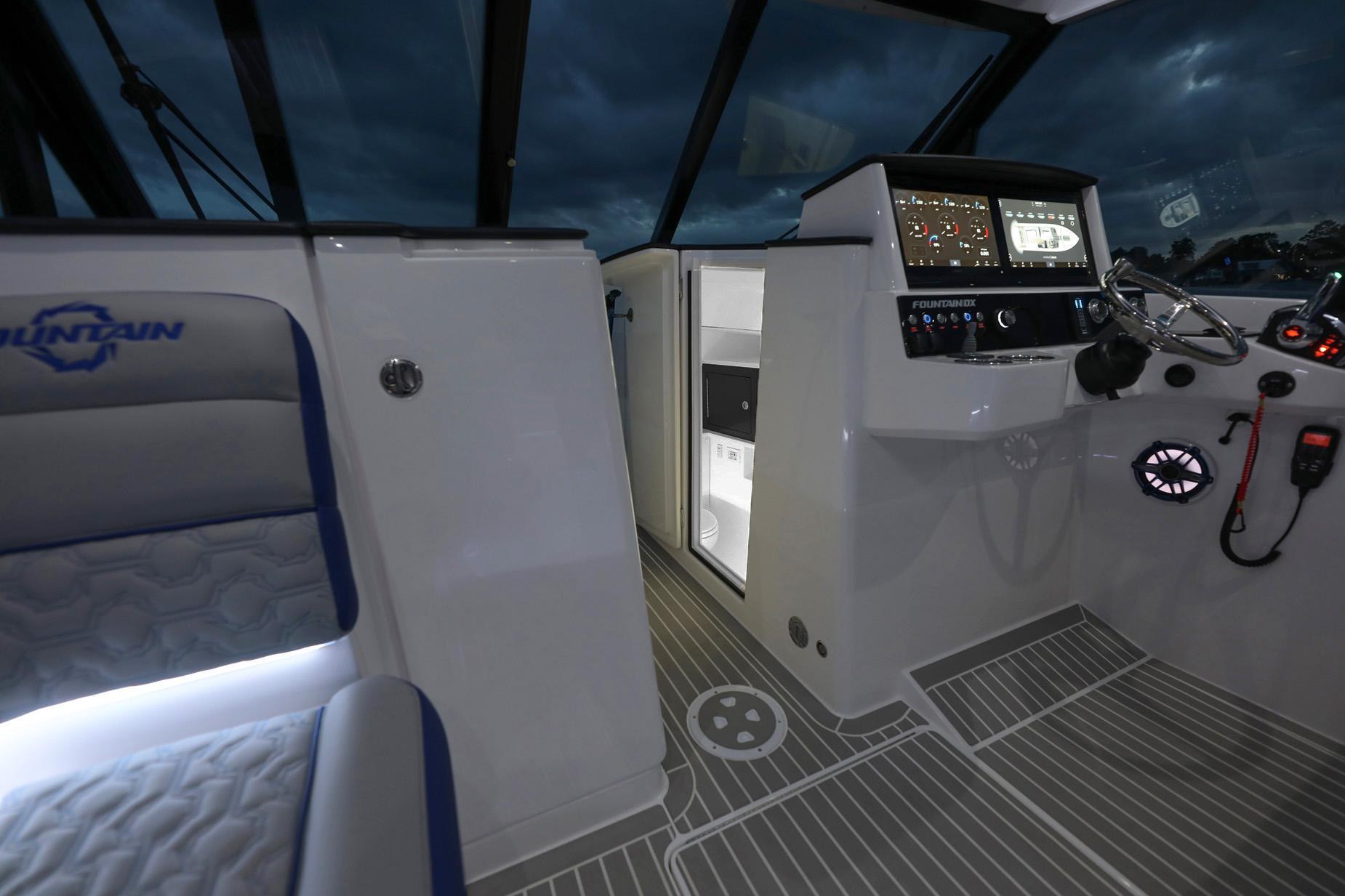 Experience the thrill of the future of boating with the 2026 Fountain Powerboats 39DX Dual Console. Embracing the perfect fusion of Speed and Luxury, Fountain has reinvented the dual console design, catering to a breed of boater who craves both high-octane functionality and the epitome of luxury. At its heart, the boat boasts the awe-inspiring power of the Mercury Twin 600 V12 engines, propelling you through the water with unparalleled grace and velocity.Step aboard, and you'll be welcomed into a world of unparalleled comfort and elegance. The salon area invites you to relax and unwind in the plush lounge seat, accompanied by a removable table for delightful conversations and a touch of sophistication. In the aft cockpit, the indulgence continues with a transom bench seat and an "L" shape lounge seat, providing ample seating for your entire crew to revel in the aquatic adventure. But the extravagance doesn't end there; beneath the protective hardtop, a hidden gem awaits—a sleek and refreshing shower head, discreetly mounted flush to the underside, allowing you to bask in the thrill of the open sea while refreshing yourself in unparalleled style. Whether you're blazing a trail at a thrilling poker run, conquering the offshore fishing grounds, or sharing cherished moments with family and friends, the 39DX promises an exhilarating ride and a pampering experience you'll never forget.Engines Mercury Twin Verado 600 V12 (Includes Electric Steering, Mercury JPO,Autopilot)Engine Color Options - Black Engine PackageEntire Hull - Gel - Monotone WhiteHardtop Underside & Arch Support Gel WhiteRubrail, Vinyl Extrusion Color WhitePowdercoat Color Options Gloss WhiteSolid Surface Color Options White OnyxSeating Configuration Cocktail Lounger - Salon Area Includes Lounge Seat with RemovableTable / Aft Cockpit Includes Wrap-Around Lounge Seating with 2Removable TablesUpholstery Stitching Accent Pattern Fountain "Lightning Bolt" patternUpholstery, Standard and Premium Options White Matrix w/ White Matrix Accents (all white)Marine Flooring PlasDek - Teak with White LinesJL Audio Speaker Colors WhiteGarmin Options Twin 16" Screens (8616)Garmin Options VHF and Antenna with Remote Mic 315Steering Selection Standard Twin 600s Package Electric Steering with JPOSteering Wheel Selection Stitched, Leather Wrapped Steering Wheel - BlackOptional Equipment Bow ThrusterOptional Equipment Cockpit Air Conditioning - Route 6,000 BTU Standard Unit Lines to Cabinand Cockpit AirOptional Equipment Engine Flushing System - Reverso, Automatic Outboard, TRIPLE EngineOptional Equipment Fender Attachments (6) - Quick Release Push Pin LocksOptional Equipment Shower Head - Mounted Flush on the Underside of the HardtopOptional Equipment XM Radio Ready Option