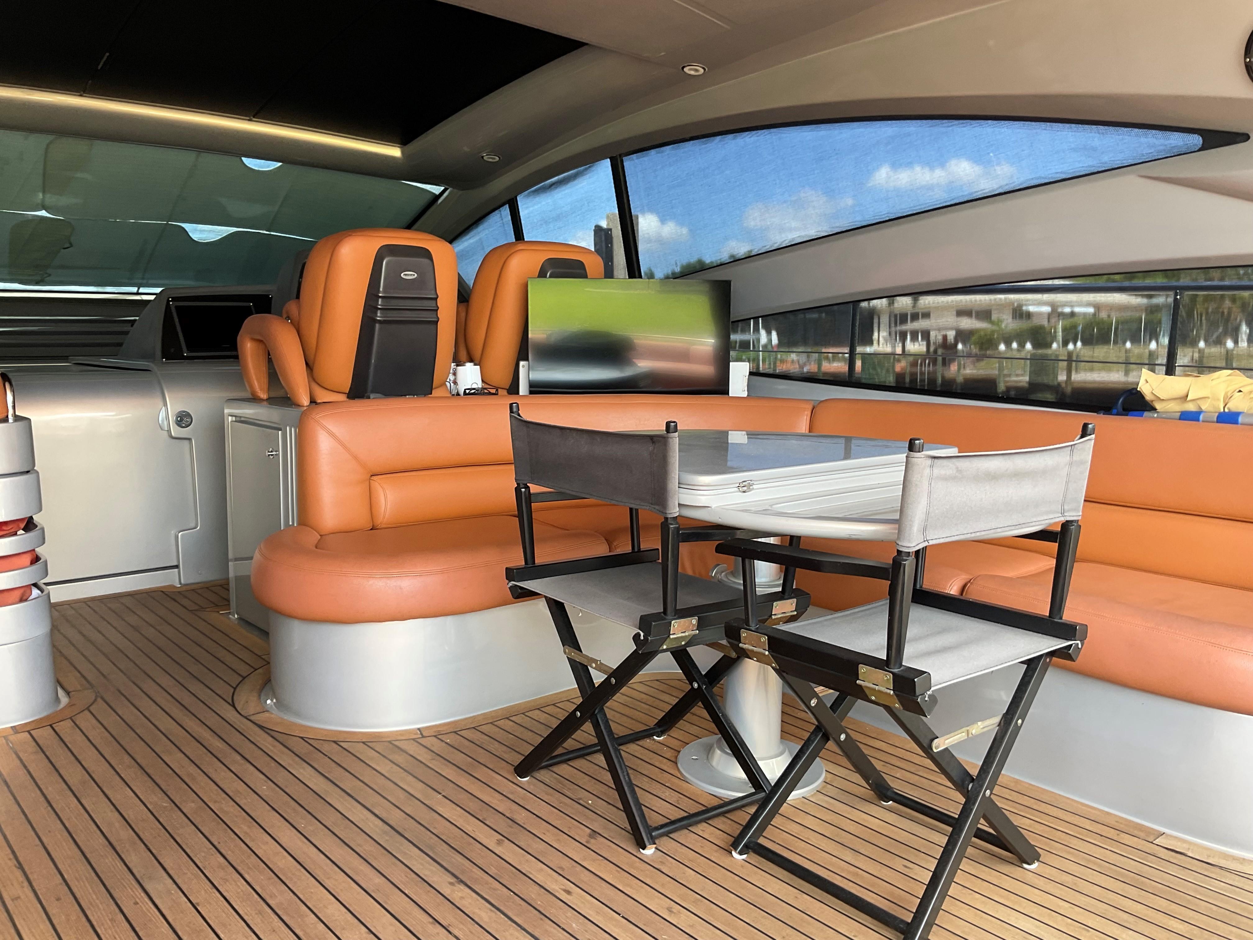 2006 Pershing 56' Cruiser | RX 1AVAILABILE FOR VIEWING IN CAPE CORAL, FLA Timeless Blend of Performance and LuxuryPresenting the 2006 Pershing 56' Cruiser, a stunning example of Italian craftsmanship and sophisticated design. This remarkable yacht offers the perfect combination of cutting-edge performance and luxurious comfort, making it ideal for those who appreciate both speed and style on the open water.The 2006 Pershing 56' Cruiser offers an aggressive, sporty profile with clean lines and a bold presence on the water. The expansive cockpit is designed for entertaining and relaxation, featuring comfortable seating, a wet bar, and ample space for sunbathing. The open-air feel is complemented by a hardtop that provides protection when needed, while still maintaining the yacht's sleek and sporty aesthetic.