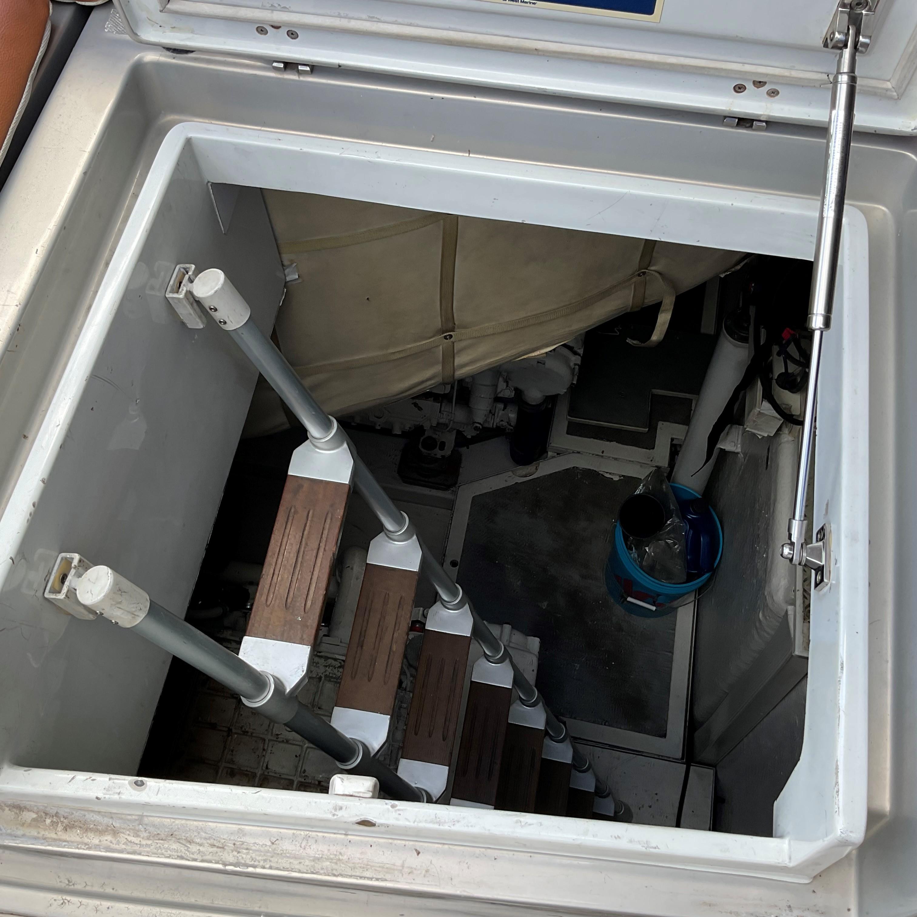 Vessel sustained hurricane damage (Ian - September 2022) while moored behind owner's home in Cape Coral, FL. Damage consisted of hull scrapes and sun roof made inoperable with surrounding fiberglass damage. As of the time of listing, sunroof and paint repairs are scheduled but not yet complete. The KVH systems for TV, WI-FI and SAT telephone were damaged but replaced.