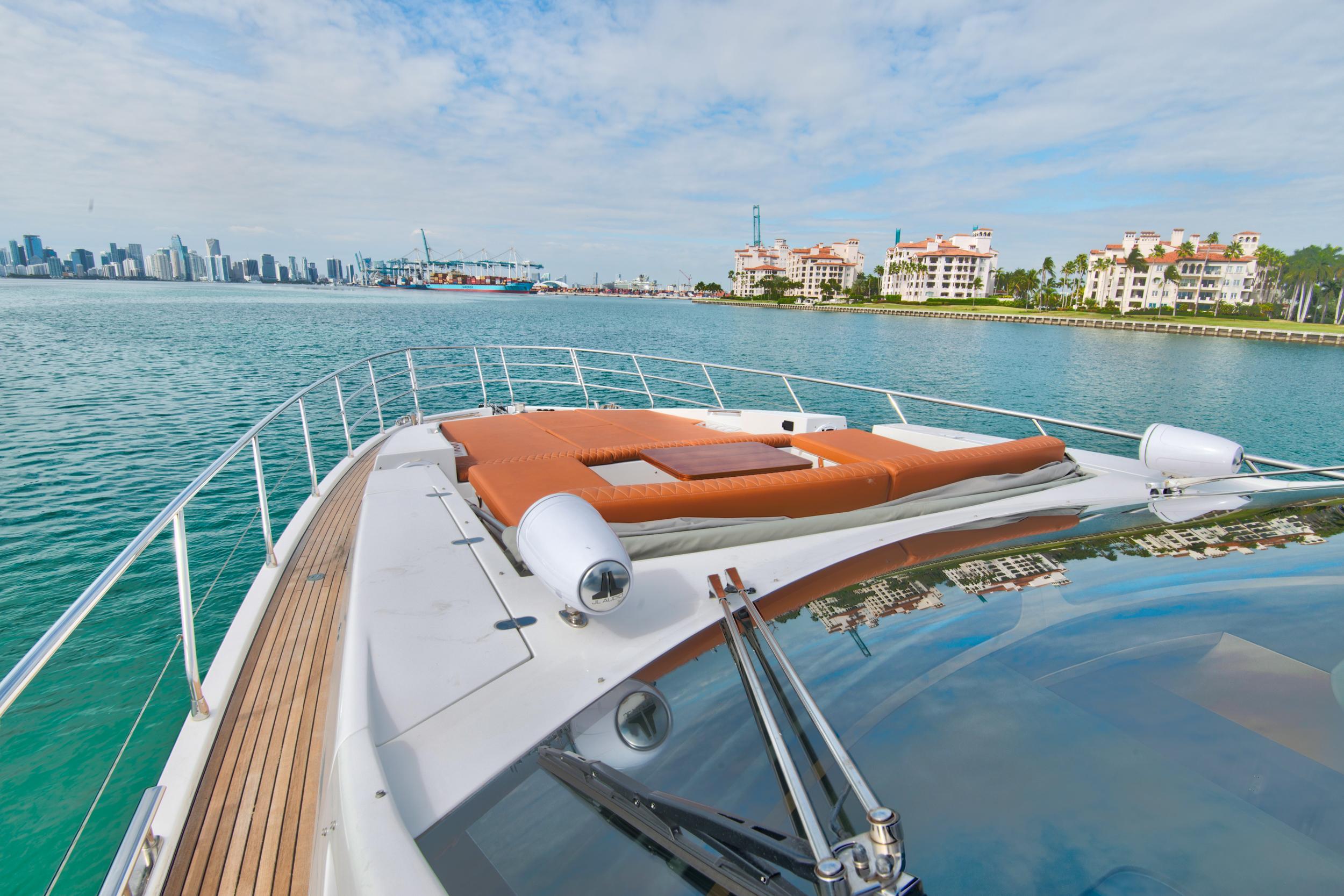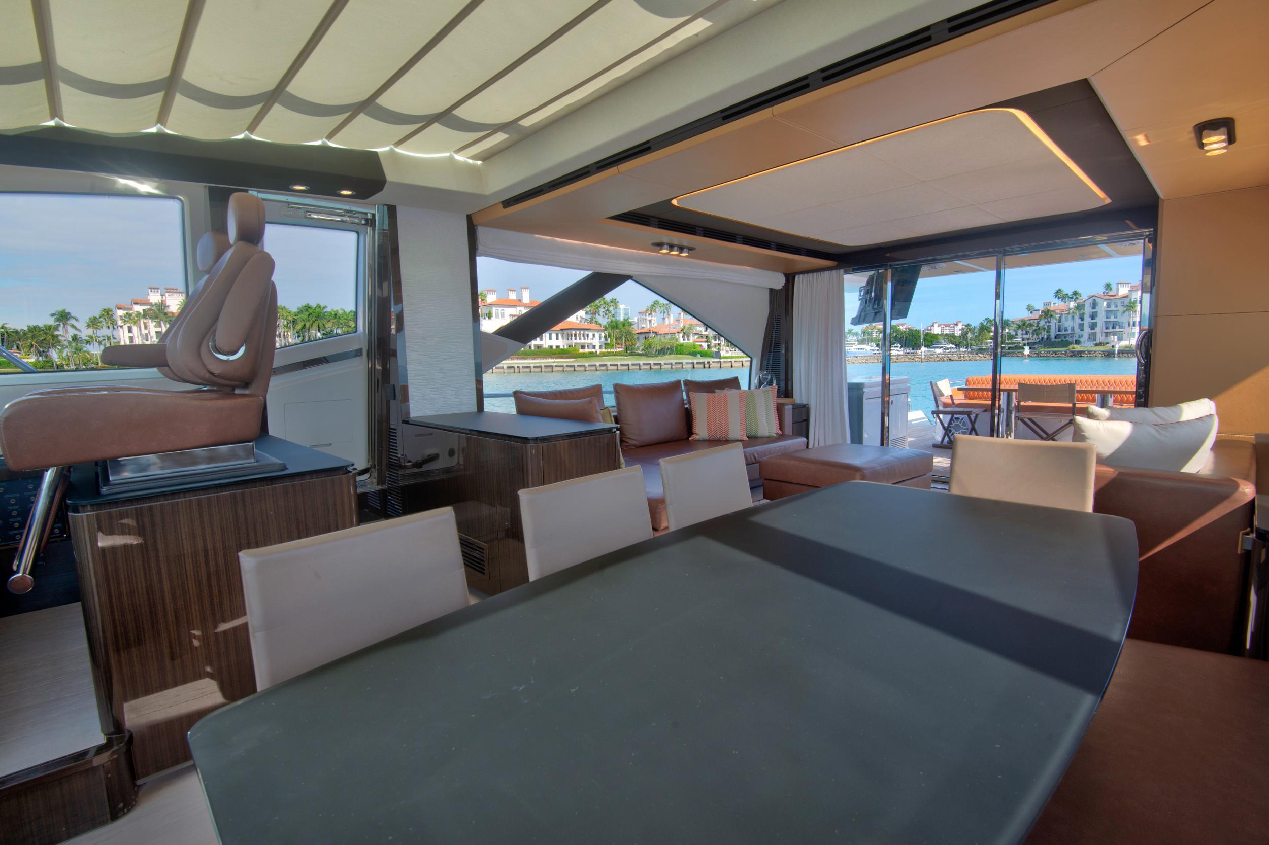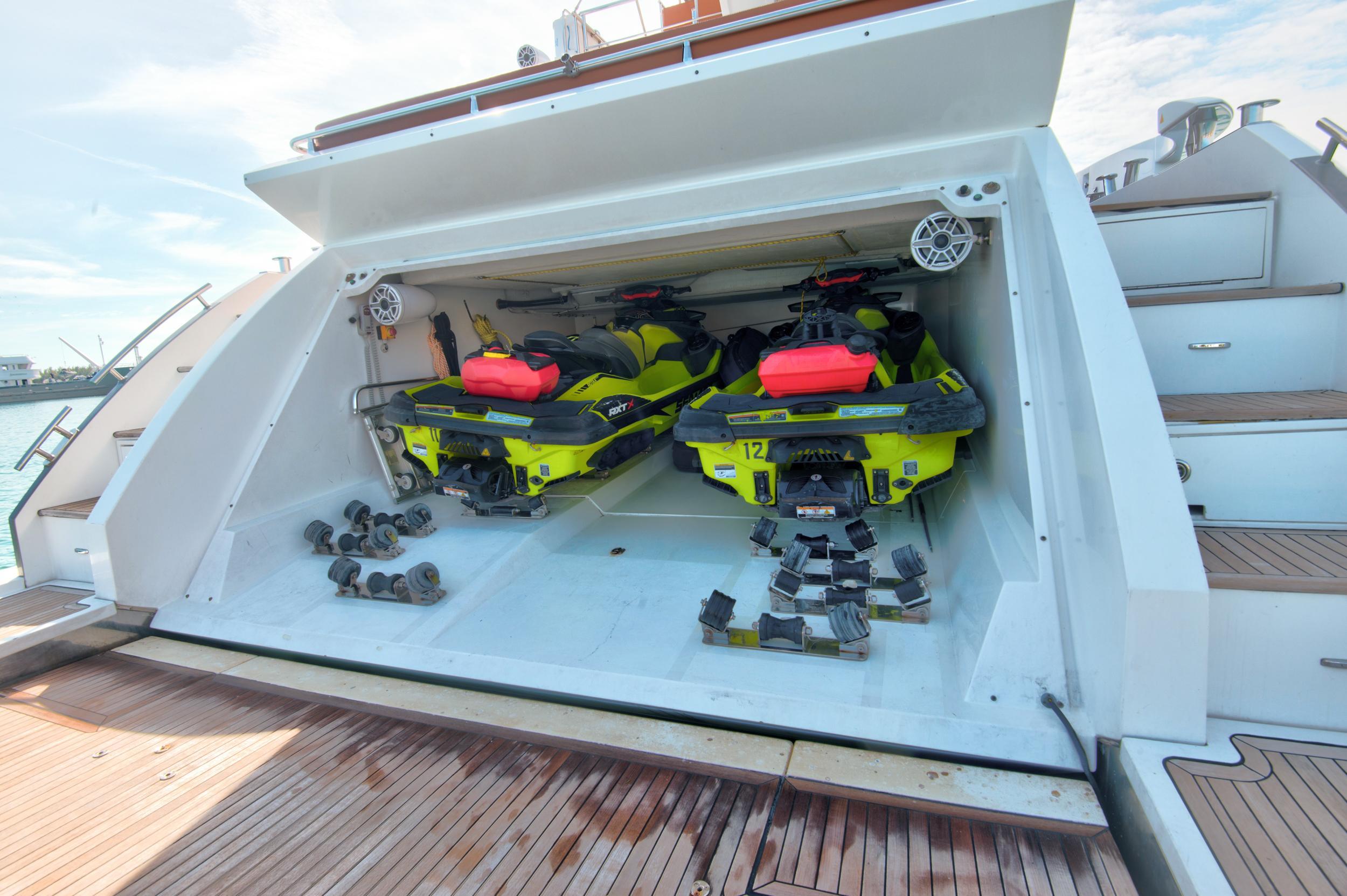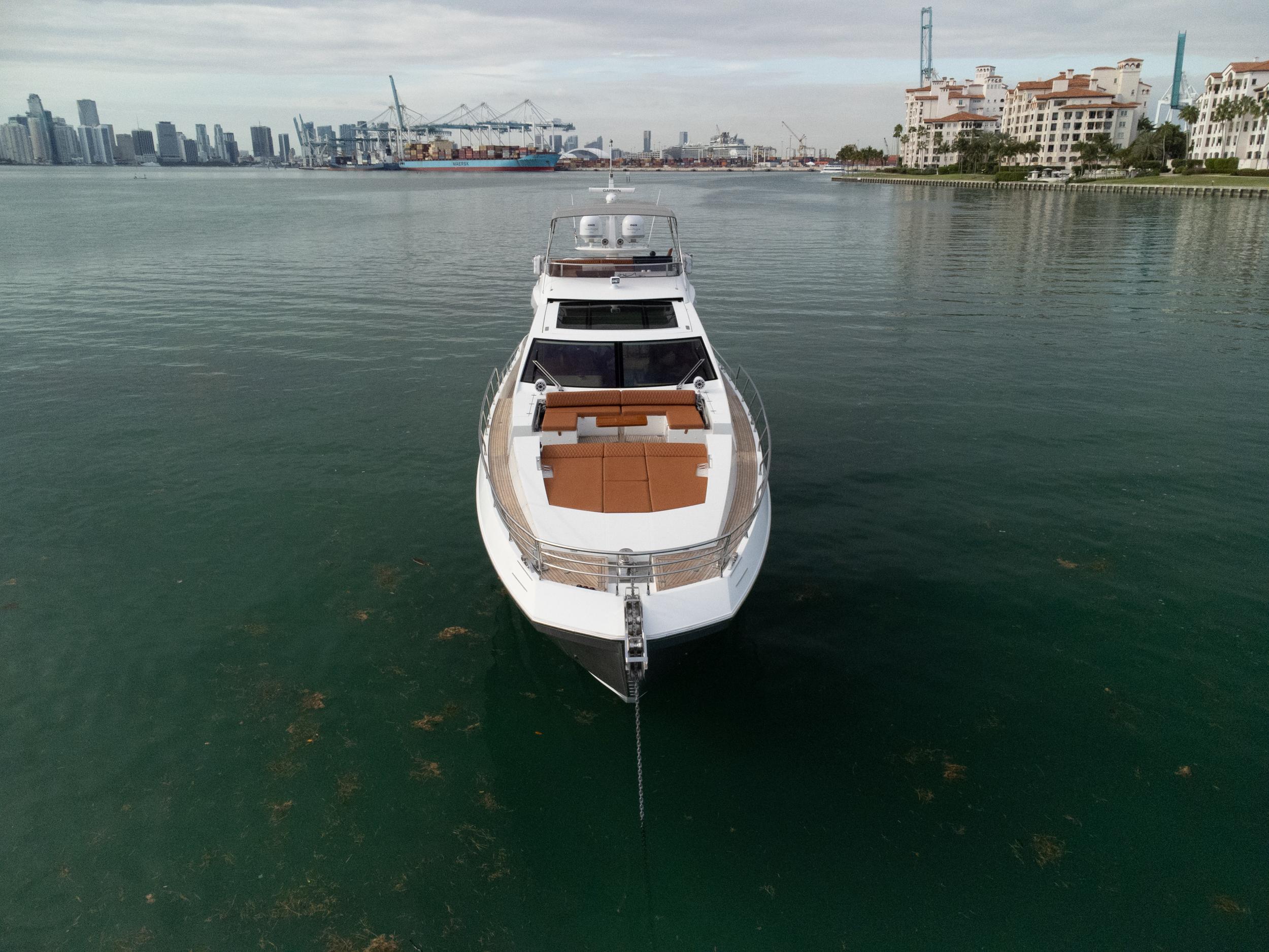 This 2015 Azimut 77S is the most well equipped and well maintained there is. Built to US specifications, she has many features that set her apart from all others such as twin Seakeeper 9, new water maker, two sets of washer and dryer onboard, twin barbecue grill, custom made bimini top, custom made flybridge seating and table, New Garmin Chart plotters, the best JL stereo system you can get and many more. Boat is loaded and turn key!Main SalonL-shaped leather sofa to stbd in new custom leather upholsteryLoveseat leather sofa to port in new custom leather upholsteryDouble low storage unit to portElectra-hydraulically operated panoramic sunroof w/electric blindRoman blinds on all windows & tie-back drapes for salon doorLED lightingWet bar area w/marble top, sink, icemaker & fridgeEntertainment system with 55’ LED TV on hi/lo mount, dual KVH Sat TV w/auto switch system, HR24 HD Satellite DSS Receiver/DVRWood flooringGalleyL-shaped dinette in new custom leather upholstery w/storage below, glass dining table & (4) chairsRefrigerator/freezerMiele 4-burner glass ceramic rangeStainless steel pot holdersBosch hood extraction fax w/overboard ventingMiele microwave/convection ovenMiele dishwasherPlexi-glass skylightDouble extra large, deep stainless steel sinkSilestone top countersHigh gloss cabinetryUnder floor finished pantryMaster StateroomKing berth w/innerspring mattress & storage belowUpholstered leather headboard & nightstandsHigh gloss Zebrano wood cabinetry & furnishingsVanity/lounge to starboard w/ (2) sofas facing each other & central vanity table[1:03 PM, 9/6/2022] Clara Schuindt: Chest of drawers w/glass top to starboardLED 55" TV w/DSS Sat receiver and surround soundSide windows w/porthole openingWalk-in closetBuilt-in safePrivate bath w/Tecma head, smoked glass sink, medicine cabinet, glass vanity top, shower w/marble column insert, glass door & wood laminate floorSplendide wash and drier combo 710 XCVIP Guest StateroomDouble berth w/storage belowHigh gloss Zebrano wood cabinetryFold-away vanity table, port sideUpholstered leather headboardLED TV, Sat TV and surround sound(2) Wall units w/doorsWardrobe closet(2) Storage columns next to headboard w/wall lightingPanoramic windows on both sides(2) Round openable portholesEmergency hatchway to bowPrivate bath w/Tecma head, marble sink, medicine cabinet, glass vanity, shower enclosure w/glass door, porthole w/blinds & wood laminate flooringSplendide wash and drier combo 710 XCCrew QuartersStairs leading down to crew quartersWood flooringCaptain's cabin w/single berth, storage, closet, porthole, Samsung 19" TV, HD DSS receiver, Fusion stereo & JL speakersCrew cabin w/Samsung 19" TV, Fusion stereo, JL speakersCrew head w/shower w/plexi doorMiele washer & dryer w/custom ventingLower Helm Station, ElectronicsAccess to stbd side walkway via semi-automatic pantograph doorAdjustable leather rudder wheelEmergency panelVolvo Penta 7" color monitoring systemVolvo Penta autopilotVolvo intercept trim tab controllerVolvo Penta controls w/joystick docking & cruise controlVolvo Dynamic Position systemVolvo Interceptor tabs, auto modeVolvo cruise controlRitchie 4" compassAzimut tilt wheelLED lightingFire suppression override controlWindshield wiper controlsNaviop systems monitor & control unit(2) Seakeeper 9Bow thruster controlGarmin packageVolvo engine throttlesVolvo joystickVolvo autopilotGarmin VHF radioDual Treben electric leather helm chairs in new custom leather upholsteryKVH TracVision HD7 TV Sat systemChain counter controlSearchlight controlFlybridge Electronics, EquipmentAccess from cockpit via steel stairwayCustom wrap-around seatingwood cocktail tableCustom Bimini top(1) Helm chair w/coverSunbed cushion on instruments board side w/cushion coverStainless steel handrails/grabrailsTeak decksVolvo Platinum package electronicsVolvo Penta autopilotVolvo DPSVolvo interceptor tabs, auto modeVolvo cruise controlNaviopCarling switchesVolvo Penta maneuvering joystickAdjustable steering wheelVolvo Penta joystickHorn/navigation lightsVHF stationCompassChain meterWave WiFi antennaCustom made TV bracketCockpit, Garage, TenderSteel/glass sliding doors to salonLarge sunpad w/cushions in new custom leather upholstery, sternCockpit sofa w/backrest w/cushions & covers in new custom leather upholsteryStairway leading to sundeck w/steel structure & teak steps(2) Plexiglass aft gates(2) Launching/retrieving warping winches w/recessed controlsLocker under sundeckStairway leading to flybridge w/steel structure & teak stepsLED lighting w/dimmerOutdoor JL speakersWet bar w/sink, fridge & icemakerEngine room access w/lock & secuiry Aqua EyeTeak decksStairway w/teak steps to platform w/grab railsElectro-hydraulic, fold-away gangwayPivoted, electro-hydraulic garage door which coverts to swimming platformGarage has been updated to store two three seater jetski’sTender & jet ski hauling & launching winch systemTeak deckingFoldaway swim ladder