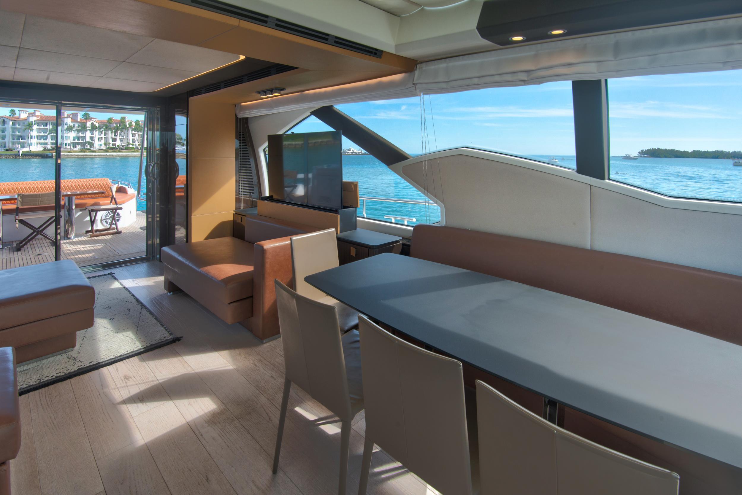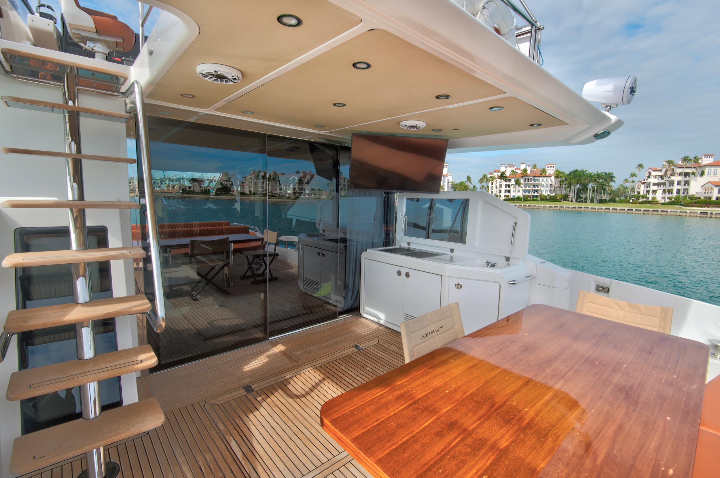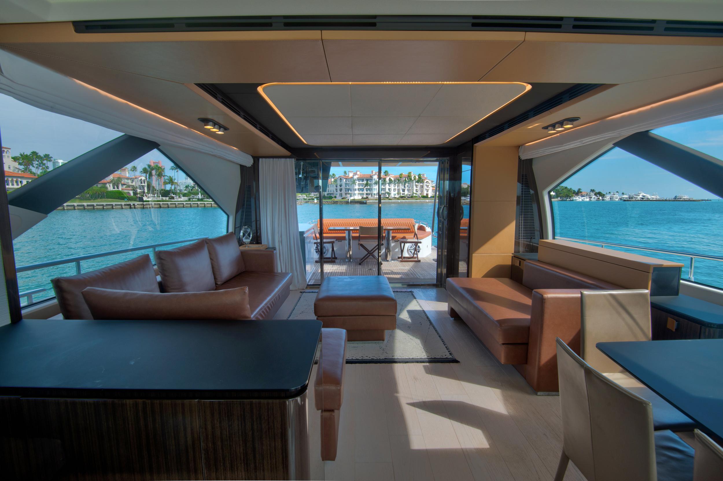 This 2015 Azimut 77S is the most well equipped and well maintained there is. Built to US specifications, she has many features that set her apart from all others such as twin Seakeeper 9, new water maker, two sets of washer and dryer onboard, twin barbecue grill, custom made bimini top, custom made flybridge seating and table, New Garmin Chart plotters, the best JL stereo system you can get and many more. Boat is loaded and turn key!Main SalonL-shaped leather sofa to stbd in new custom leather upholsteryLoveseat leather sofa to port in new custom leather upholsteryDouble low storage unit to portElectra-hydraulically operated panoramic sunroof w/electric blindRoman blinds on all windows & tie-back drapes for salon doorLED lightingWet bar area w/marble top, sink, icemaker & fridgeEntertainment system with 55’ LED TV on hi/lo mount, dual KVH Sat TV w/auto switch system, HR24 HD Satellite DSS Receiver/DVRWood flooringGalleyL-shaped dinette in new custom leather upholstery w/storage below, glass dining table & (4) chairsRefrigerator/freezerMiele 4-burner glass ceramic rangeStainless steel pot holdersBosch hood extraction fax w/overboard ventingMiele microwave/convection ovenMiele dishwasherPlexi-glass skylightDouble extra large, deep stainless steel sinkSilestone top countersHigh gloss cabinetryUnder floor finished pantryMaster StateroomKing berth w/innerspring mattress & storage belowUpholstered leather headboard & nightstandsHigh gloss Zebrano wood cabinetry & furnishingsVanity/lounge to starboard w/ (2) sofas facing each other & central vanity table[1:03 PM, 9/6/2022] Clara Schuindt: Chest of drawers w/glass top to starboardLED 55" TV w/DSS Sat receiver and surround soundSide windows w/porthole openingWalk-in closetBuilt-in safePrivate bath w/Tecma head, smoked glass sink, medicine cabinet, glass vanity top, shower w/marble column insert, glass door & wood laminate floorSplendide wash and drier combo 710 XCVIP Guest StateroomDouble berth w/storage belowHigh gloss Zebrano wood cabinetryFold-away vanity table, port sideUpholstered leather headboardLED TV, Sat TV and surround sound(2) Wall units w/doorsWardrobe closet(2) Storage columns next to headboard w/wall lightingPanoramic windows on both sides(2) Round openable portholesEmergency hatchway to bowPrivate bath w/Tecma head, marble sink, medicine cabinet, glass vanity, shower enclosure w/glass door, porthole w/blinds & wood laminate flooringSplendide wash and drier combo 710 XCCrew QuartersStairs leading down to crew quartersWood flooringCaptain's cabin w/single berth, storage, closet, porthole, Samsung 19" TV, HD DSS receiver, Fusion stereo & JL speakersCrew cabin w/Samsung 19" TV, Fusion stereo, JL speakersCrew head w/shower w/plexi doorMiele washer & dryer w/custom ventingLower Helm Station, ElectronicsAccess to stbd side walkway via semi-automatic pantograph doorAdjustable leather rudder wheelEmergency panelVolvo Penta 7" color monitoring systemVolvo Penta autopilotVolvo intercept trim tab controllerVolvo Penta controls w/joystick docking & cruise controlVolvo Dynamic Position systemVolvo Interceptor tabs, auto modeVolvo cruise controlRitchie 4" compassAzimut tilt wheelLED lightingFire suppression override controlWindshield wiper controlsNaviop systems monitor & control unit(2) Seakeeper 9Bow thruster controlGarmin packageVolvo engine throttlesVolvo joystickVolvo autopilotGarmin VHF radioDual Treben electric leather helm chairs in new custom leather upholsteryKVH TracVision HD7 TV Sat systemChain counter controlSearchlight controlFlybridge Electronics, EquipmentAccess from cockpit via steel stairwayCustom wrap-around seatingwood cocktail tableCustom Bimini top(1) Helm chair w/coverSunbed cushion on instruments board side w/cushion coverStainless steel handrails/grabrailsTeak decksVolvo Platinum package electronicsVolvo Penta autopilotVolvo DPSVolvo interceptor tabs, auto modeVolvo cruise controlNaviopCarling switchesVolvo Penta maneuvering joystickAdjustable steering wheelVolvo Penta joystickHorn/navigation lightsVHF stationCompassChain meterWave WiFi antennaCustom made TV bracketCockpit, Garage, TenderSteel/glass sliding doors to salonLarge sunpad w/cushions in new custom leather upholstery, sternCockpit sofa w/backrest w/cushions & covers in new custom leather upholsteryStairway leading to sundeck w/steel structure & teak steps(2) Plexiglass aft gates(2) Launching/retrieving warping winches w/recessed controlsLocker under sundeckStairway leading to flybridge w/steel structure & teak stepsLED lighting w/dimmerOutdoor JL speakersWet bar w/sink, fridge & icemakerEngine room access w/lock & secuiry Aqua EyeTeak decksStairway w/teak steps to platform w/grab railsElectro-hydraulic, fold-away gangwayPivoted, electro-hydraulic garage door which coverts to swimming platformGarage has been updated to store two three seater jetski’sTender & jet ski hauling & launching winch systemTeak deckingFoldaway swim ladder