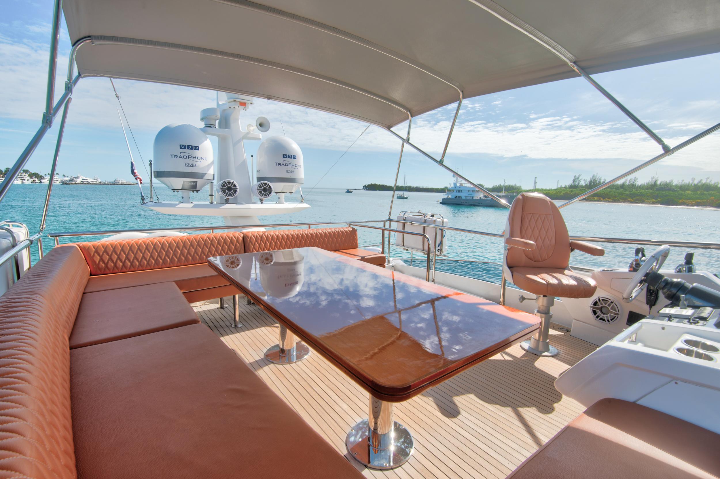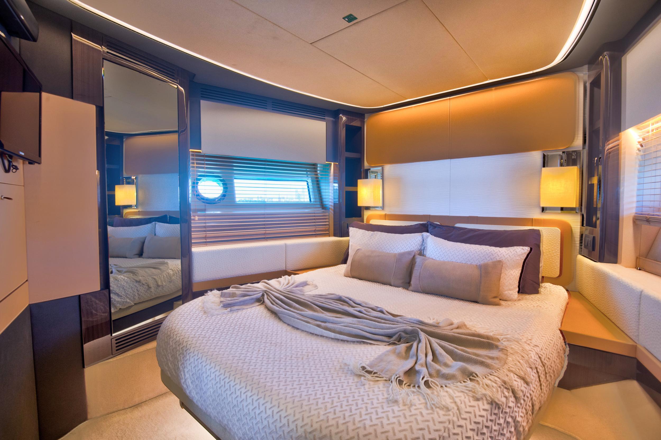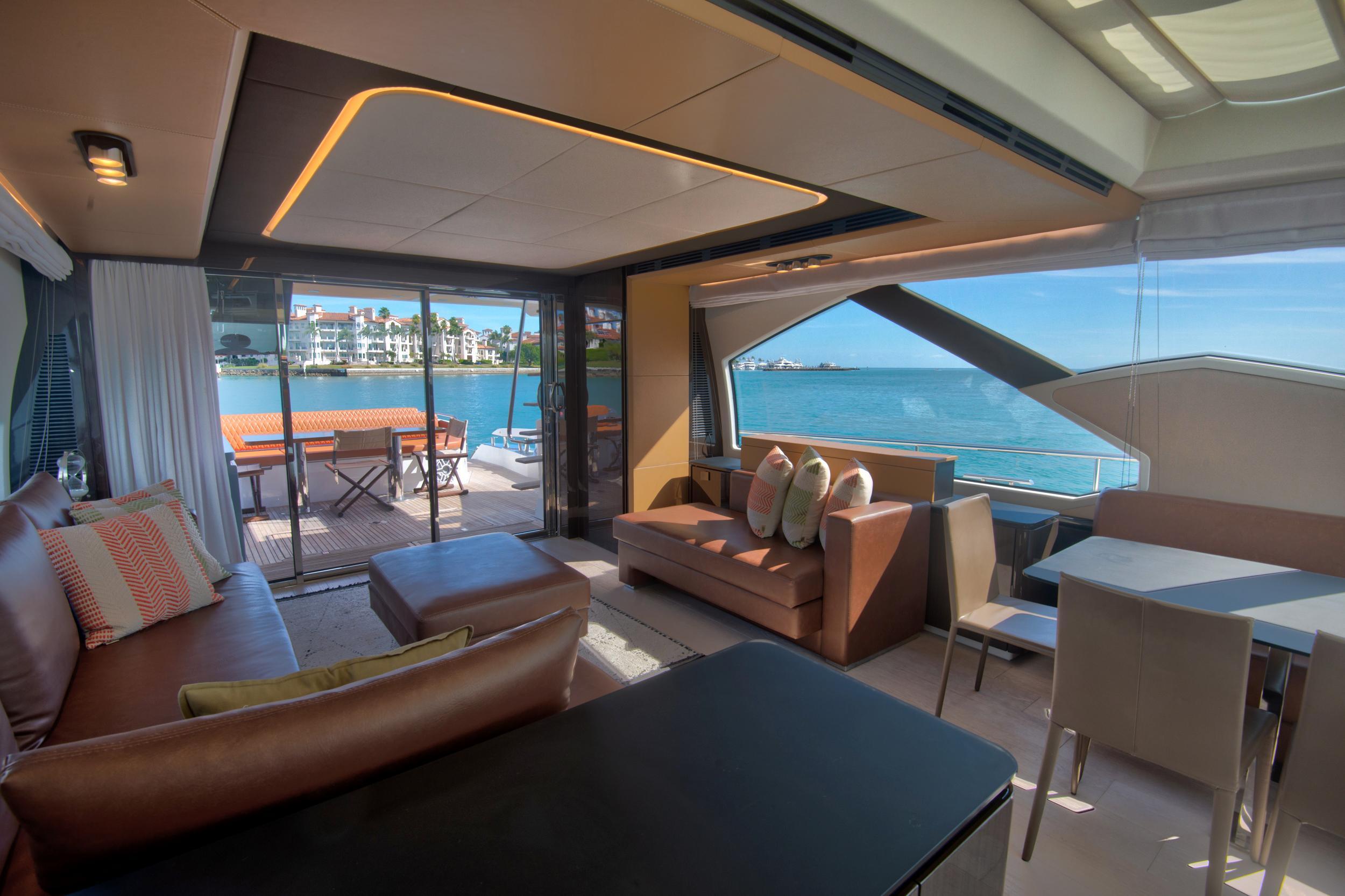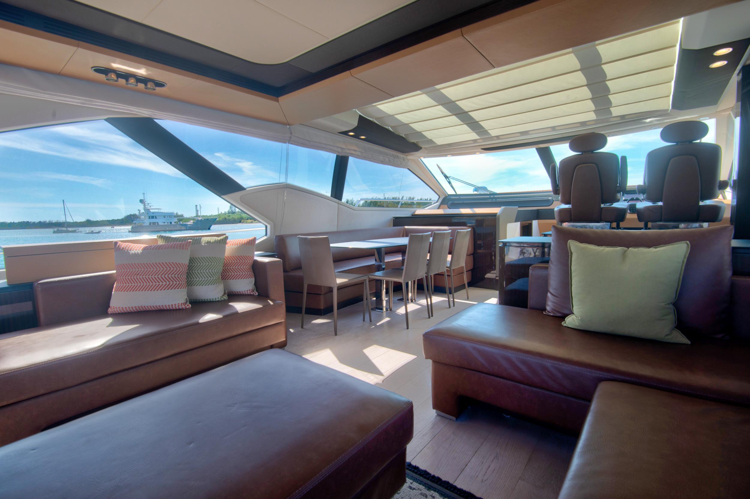 This 2015 Azimut 77S is the most well equipped and well maintained there is. Built to US specifications, she has many features that set her apart from all others such as twin Seakeeper 9, new water maker, two sets of washer and dryer onboard, twin barbecue grill, custom made bimini top, custom made flybridge seating and table, New Garmin Chart plotters, the best JL stereo system you can get and many more. Boat is loaded and turn key!Main SalonL-shaped leather sofa to stbd in new custom leather upholsteryLoveseat leather sofa to port in new custom leather upholsteryDouble low storage unit to portElectra-hydraulically operated panoramic sunroof w/electric blindRoman blinds on all windows & tie-back drapes for salon doorLED lightingWet bar area w/marble top, sink, icemaker & fridgeEntertainment system with 55’ LED TV on hi/lo mount, dual KVH Sat TV w/auto switch system, HR24 HD Satellite DSS Receiver/DVRWood flooringGalleyL-shaped dinette in new custom leather upholstery w/storage below, glass dining table & (4) chairsRefrigerator/freezerMiele 4-burner glass ceramic rangeStainless steel pot holdersBosch hood extraction fax w/overboard ventingMiele microwave/convection ovenMiele dishwasherPlexi-glass skylightDouble extra large, deep stainless steel sinkSilestone top countersHigh gloss cabinetryUnder floor finished pantryMaster StateroomKing berth w/innerspring mattress & storage belowUpholstered leather headboard & nightstandsHigh gloss Zebrano wood cabinetry & furnishingsVanity/lounge to starboard w/ (2) sofas facing each other & central vanity table[1:03 PM, 9/6/2022] Clara Schuindt: Chest of drawers w/glass top to starboardLED 55" TV w/DSS Sat receiver and surround soundSide windows w/porthole openingWalk-in closetBuilt-in safePrivate bath w/Tecma head, smoked glass sink, medicine cabinet, glass vanity top, shower w/marble column insert, glass door & wood laminate floorSplendide wash and drier combo 710 XCVIP Guest StateroomDouble berth w/storage belowHigh gloss Zebrano wood cabinetryFold-away vanity table, port sideUpholstered leather headboardLED TV, Sat TV and surround sound(2) Wall units w/doorsWardrobe closet(2) Storage columns next to headboard w/wall lightingPanoramic windows on both sides(2) Round openable portholesEmergency hatchway to bowPrivate bath w/Tecma head, marble sink, medicine cabinet, glass vanity, shower enclosure w/glass door, porthole w/blinds & wood laminate flooringSplendide wash and drier combo 710 XCCrew QuartersStairs leading down to crew quartersWood flooringCaptain's cabin w/single berth, storage, closet, porthole, Samsung 19" TV, HD DSS receiver, Fusion stereo & JL speakersCrew cabin w/Samsung 19" TV, Fusion stereo, JL speakersCrew head w/shower w/plexi doorMiele washer & dryer w/custom ventingLower Helm Station, ElectronicsAccess to stbd side walkway via semi-automatic pantograph doorAdjustable leather rudder wheelEmergency panelVolvo Penta 7" color monitoring systemVolvo Penta autopilotVolvo intercept trim tab controllerVolvo Penta controls w/joystick docking & cruise controlVolvo Dynamic Position systemVolvo Interceptor tabs, auto modeVolvo cruise controlRitchie 4" compassAzimut tilt wheelLED lightingFire suppression override controlWindshield wiper controlsNaviop systems monitor & control unit(2) Seakeeper 9Bow thruster controlGarmin packageVolvo engine throttlesVolvo joystickVolvo autopilotGarmin VHF radioDual Treben electric leather helm chairs in new custom leather upholsteryKVH TracVision HD7 TV Sat systemChain counter controlSearchlight controlFlybridge Electronics, EquipmentAccess from cockpit via steel stairwayCustom wrap-around seatingwood cocktail tableCustom Bimini top(1) Helm chair w/coverSunbed cushion on instruments board side w/cushion coverStainless steel handrails/grabrailsTeak decksVolvo Platinum package electronicsVolvo Penta autopilotVolvo DPSVolvo interceptor tabs, auto modeVolvo cruise controlNaviopCarling switchesVolvo Penta maneuvering joystickAdjustable steering wheelVolvo Penta joystickHorn/navigation lightsVHF stationCompassChain meterWave WiFi antennaCustom made TV bracketCockpit, Garage, TenderSteel/glass sliding doors to salonLarge sunpad w/cushions in new custom leather upholstery, sternCockpit sofa w/backrest w/cushions & covers in new custom leather upholsteryStairway leading to sundeck w/steel structure & teak steps(2) Plexiglass aft gates(2) Launching/retrieving warping winches w/recessed controlsLocker under sundeckStairway leading to flybridge w/steel structure & teak stepsLED lighting w/dimmerOutdoor JL speakersWet bar w/sink, fridge & icemakerEngine room access w/lock & secuiry Aqua EyeTeak decksStairway w/teak steps to platform w/grab railsElectro-hydraulic, fold-away gangwayPivoted, electro-hydraulic garage door which coverts to swimming platformGarage has been updated to store two three seater jetski’sTender & jet ski hauling & launching winch systemTeak deckingFoldaway swim ladder