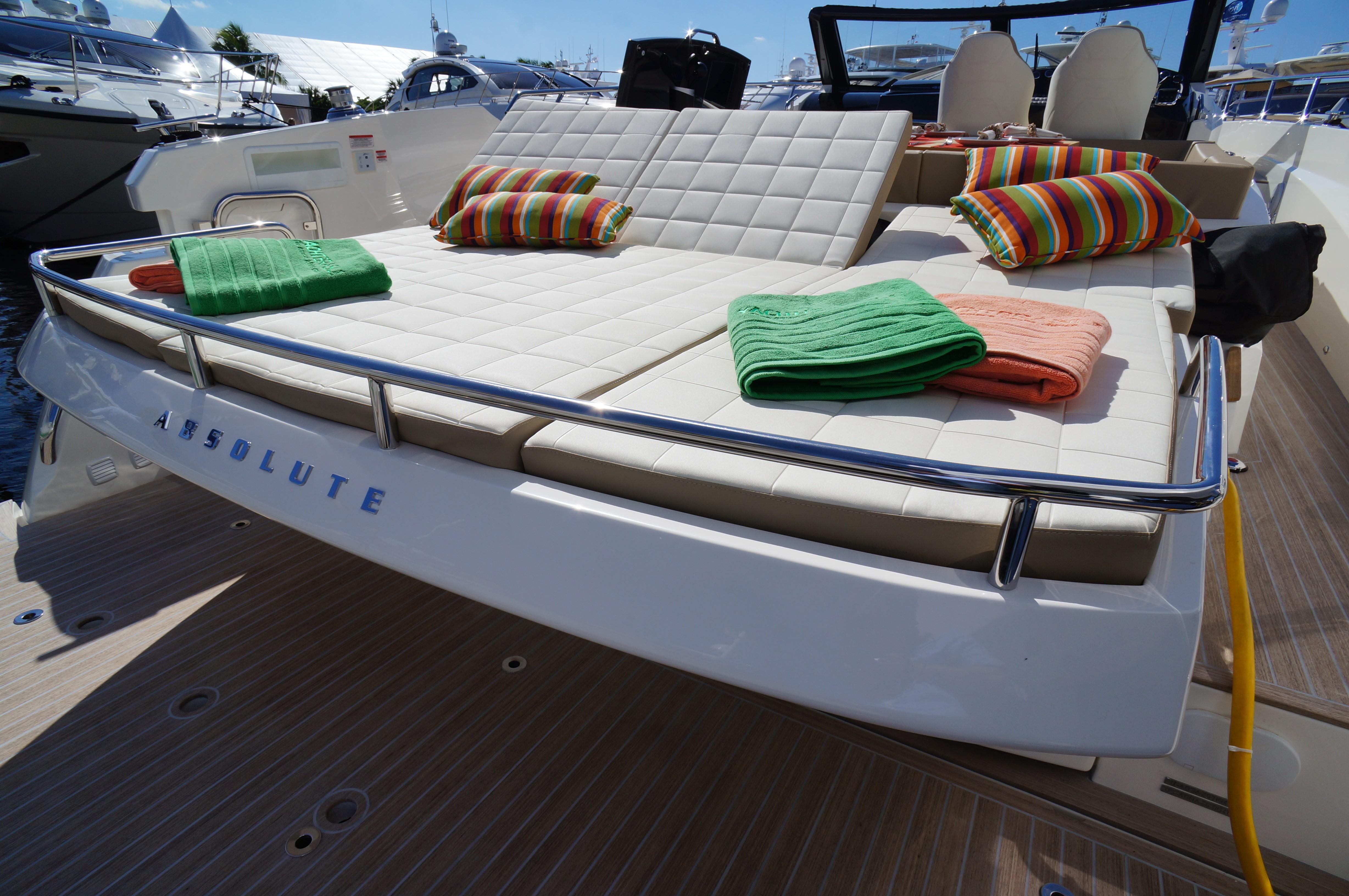 - Bow sunbathing cushions with reclining backrests and covering sheet