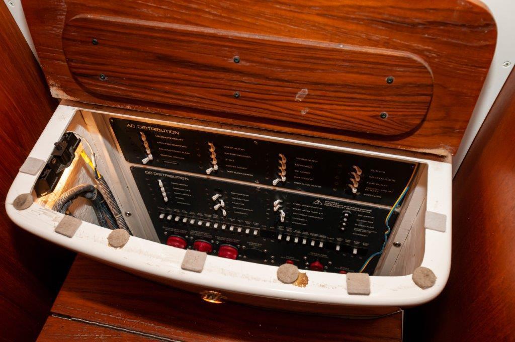 - Tiara custom 12V DC and 120V/240V AC electrical system with master distribution panel under the companionway steps
