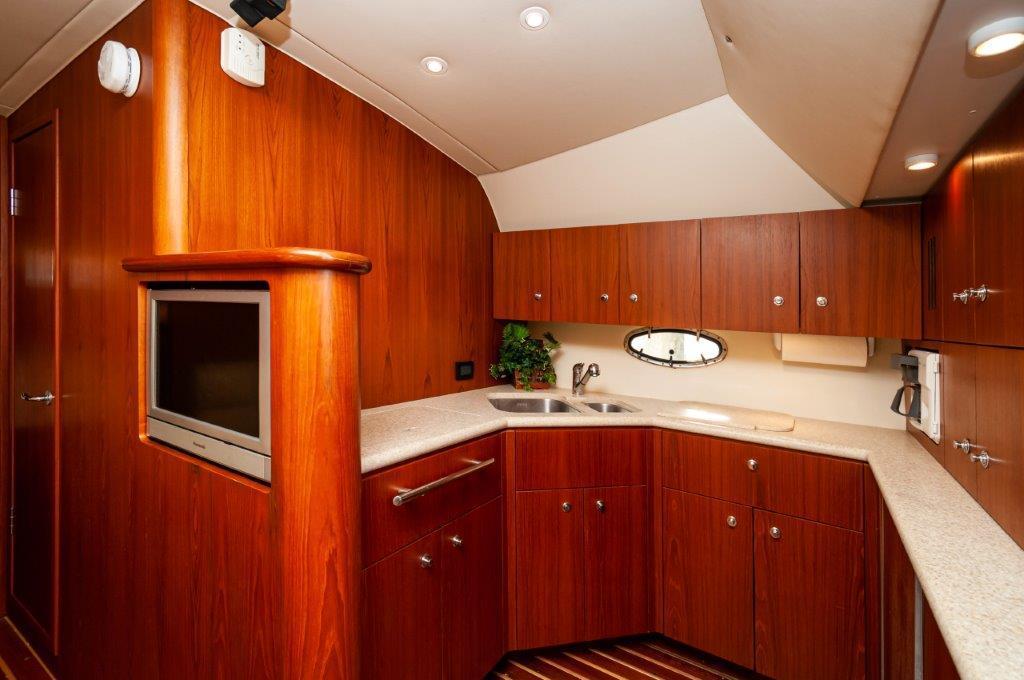 - Upper cockpit wet bar with sink, cutting and insulated cooler aft