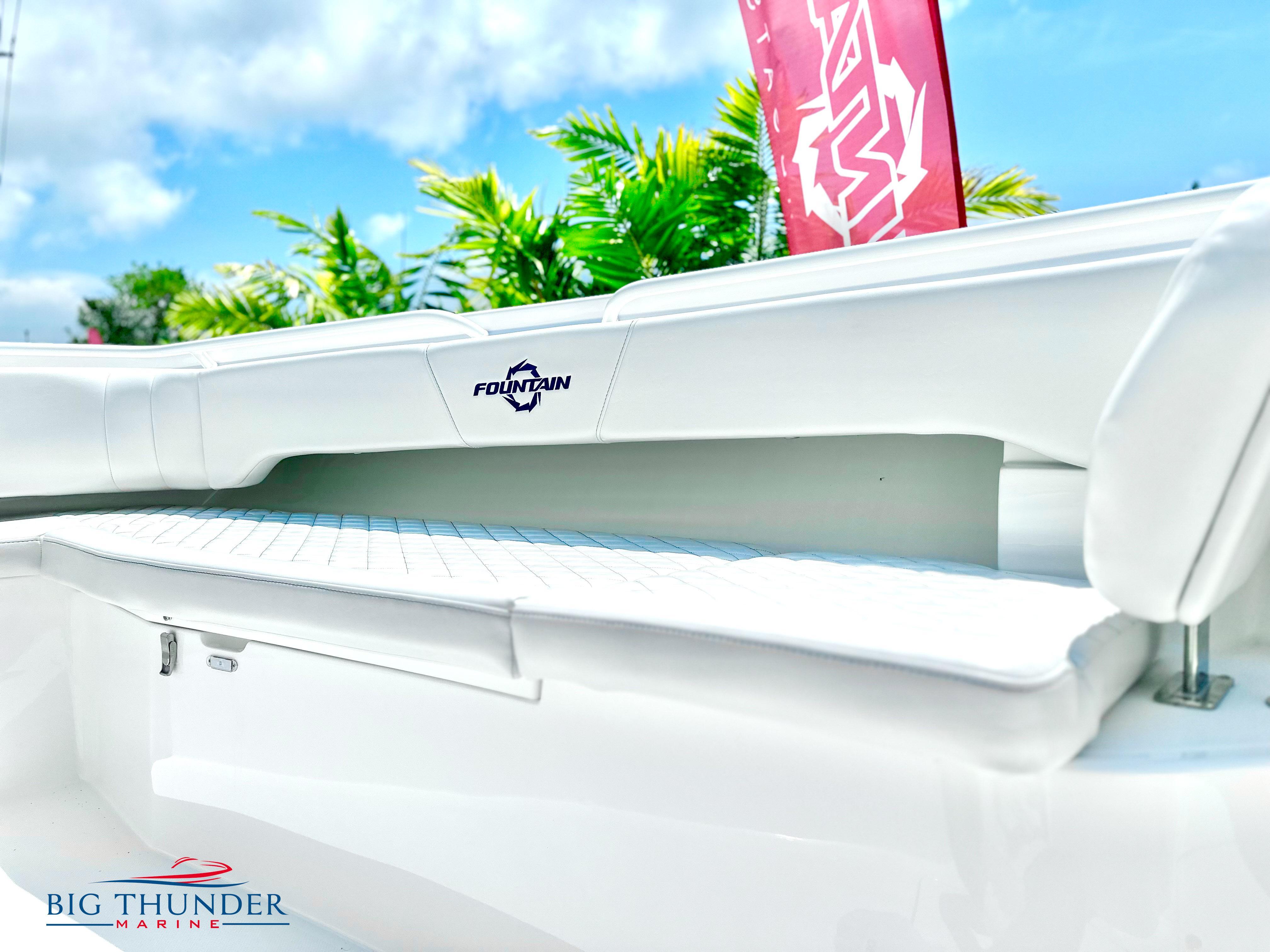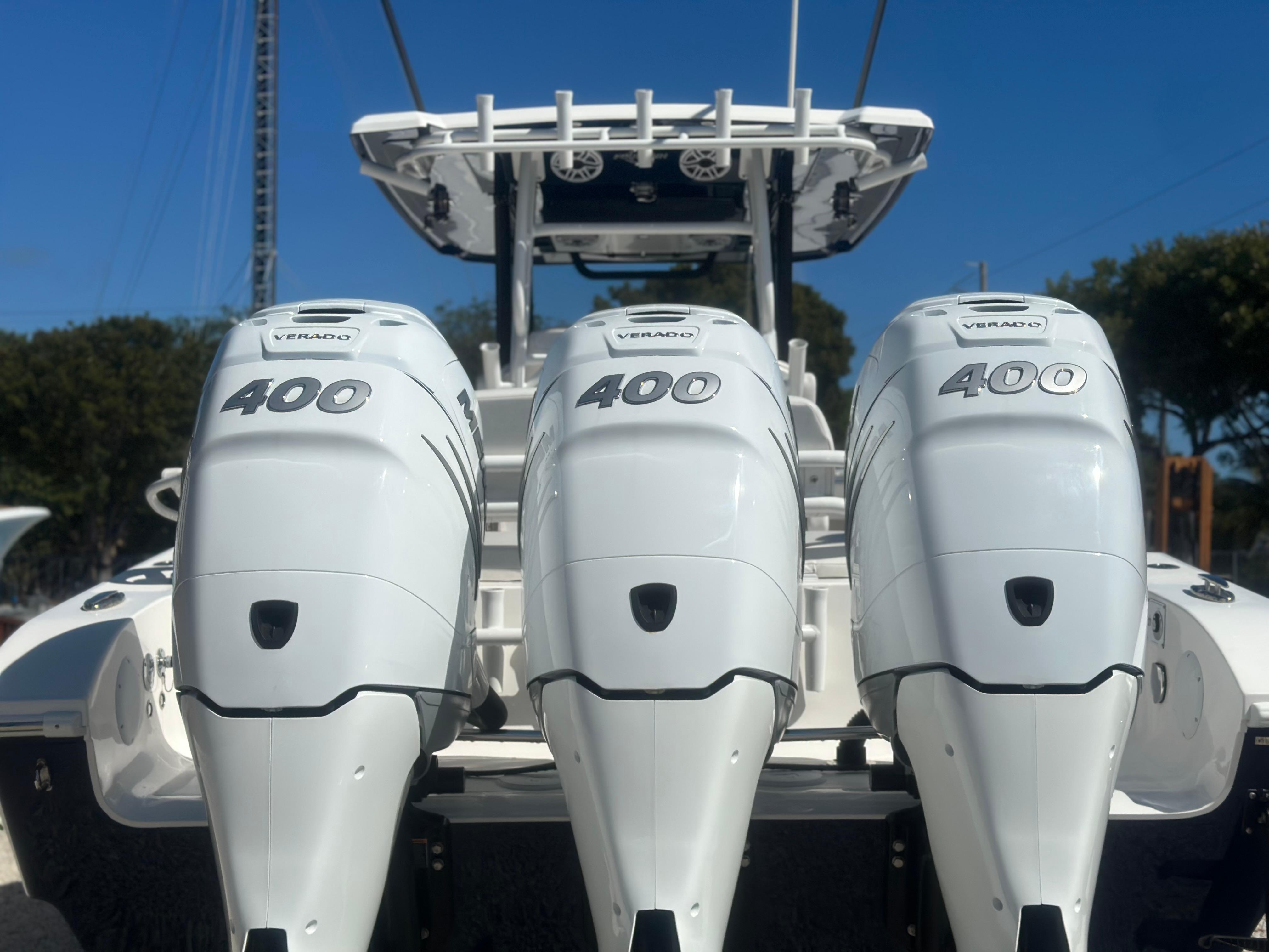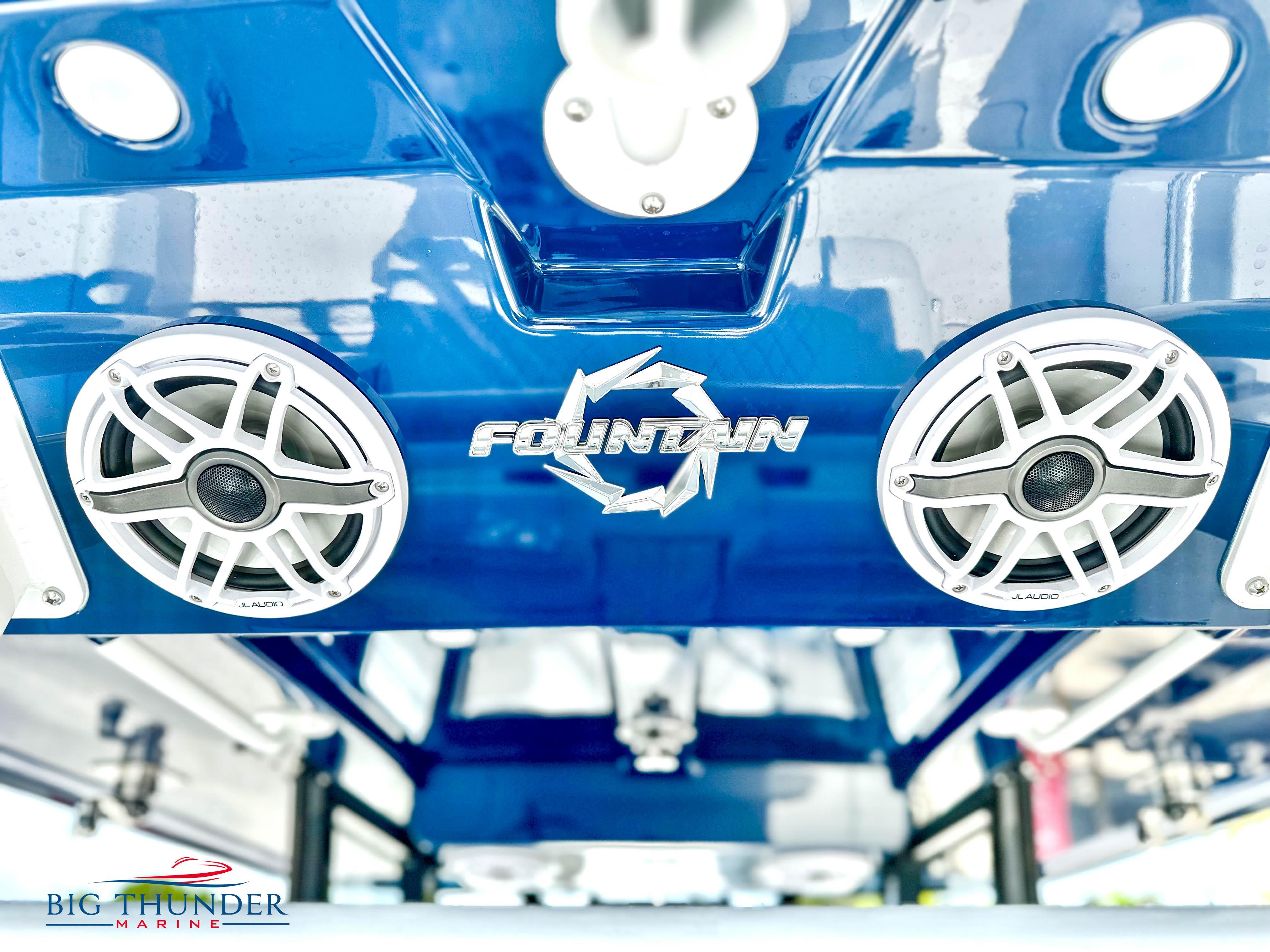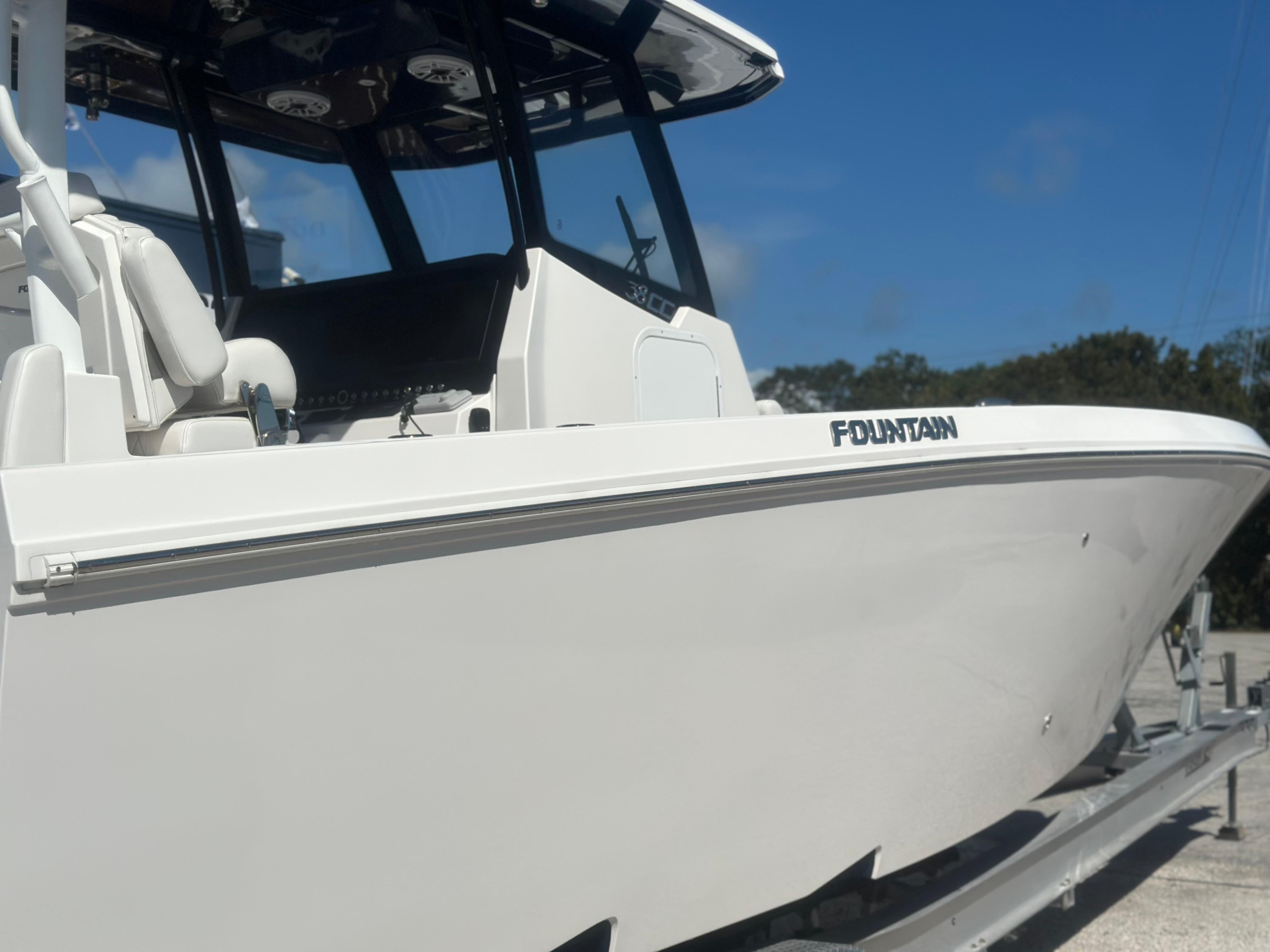 2023 Fountain 38 CC TripleMercury 400M Verado'sWhite Engine Pkg.Reverso Automatic Engine Flushing SystemBow ThrusterDTS ControlsMercury 380 K-Plane Hydraulic Trim TabsHydraulic SteeringWindlass/Anchor Rode Kit w/ Thru Hull Striker Plate - Polished SS Plow, 15' of 5/16" Galvanized Chain, 150' of 5/8" 8-Strand Braided RopeWhite Matrix w/ White Matrix Accent UpholsteryBlue Stitching & EmbroideryNavy T-Top Underside PaintGloss White Powder CoatingDual Garmin GPSmap 8616 16" DisplaysGMR Fantom 54 Radar215 AIS VHF Radio w/ AntennaB175H TransducerGarmin Full Function Hydraulic AutopilotDash Mounted GHC50 Autopilot ControlVesselView 903 DisplayStainless Steel Wheel w/ "Speed Knob"Additional Console Topper Glove Box USB OutletAdditional Dash USBRA 770 Touch Screen Entertainment Center w/ Built In WiFiJL Audio Speaker System w/ (8) 7.7" RGB LED., (2) 10" RGB LED Subs, 800W 8 Ch Amp & 400W Mono BlockWindshield WiperGemlux BA-12 Outrigger BasesGemlux 18' Hybrid Deluxe Collapsible Outrigger PolesElectric Reel Outlets.(2) Pressurized Aft LivewellsRemovable Transom Seat w/ Upholstered Seat Bottom & Backrest, Integral Welded & Upholstered ArmrestsStarboard Side Dive Door w/ LadderAft Electric SureShadeForward Cockpit SailshadeScreened Portlight w/Head Compartment w/ Ceramic Toilet, Overboard Discharge, Fresh/Raw Water Holding Tank. Fresh & Raw Water WashdownsTransom ShowerDash & Helm Seat CoversDoes not include trailer, new trailer quotes available separate. Financing and insurance options also available, all 2005 and newer model year trades considered. Call for special dealer pricing and demo availability.