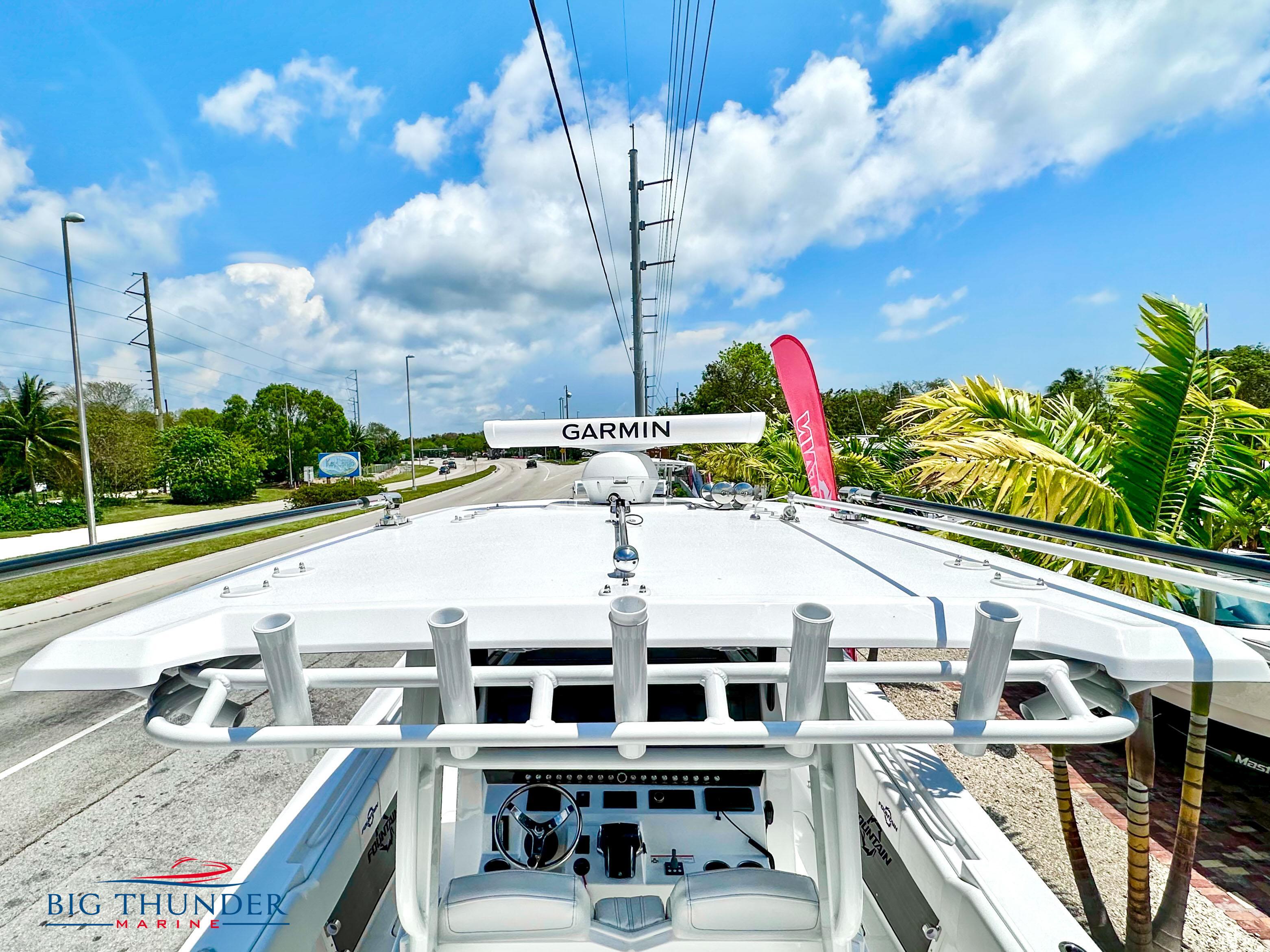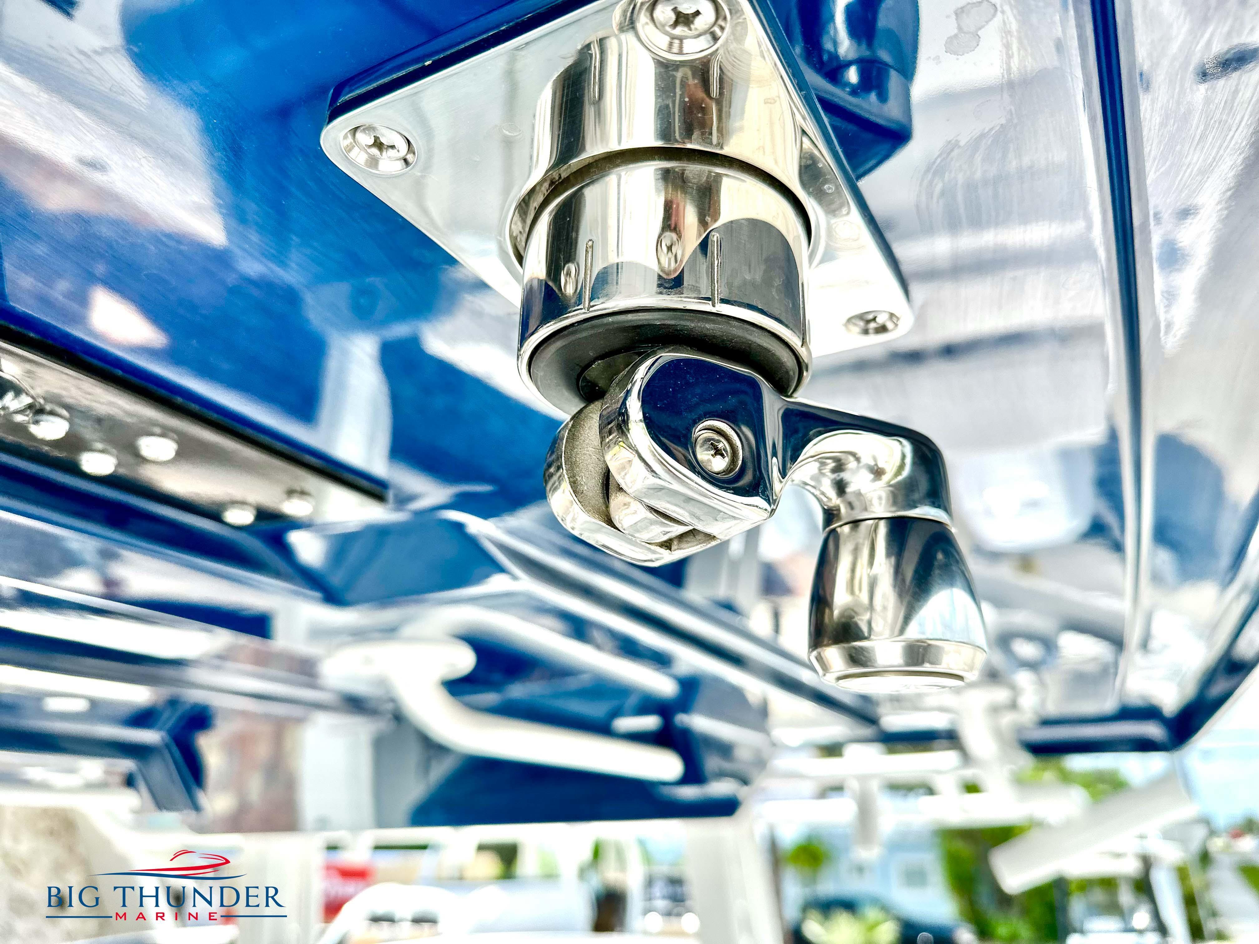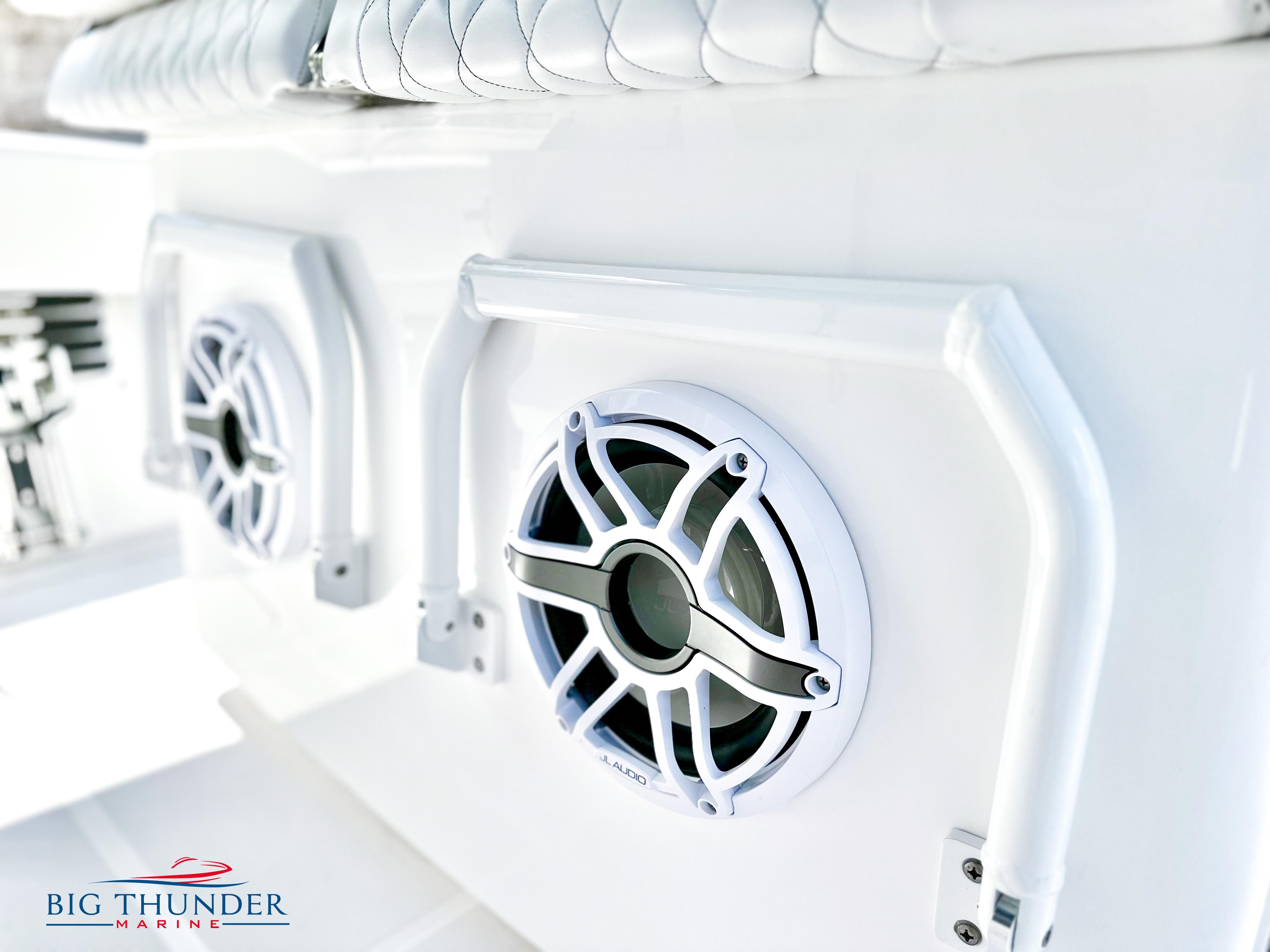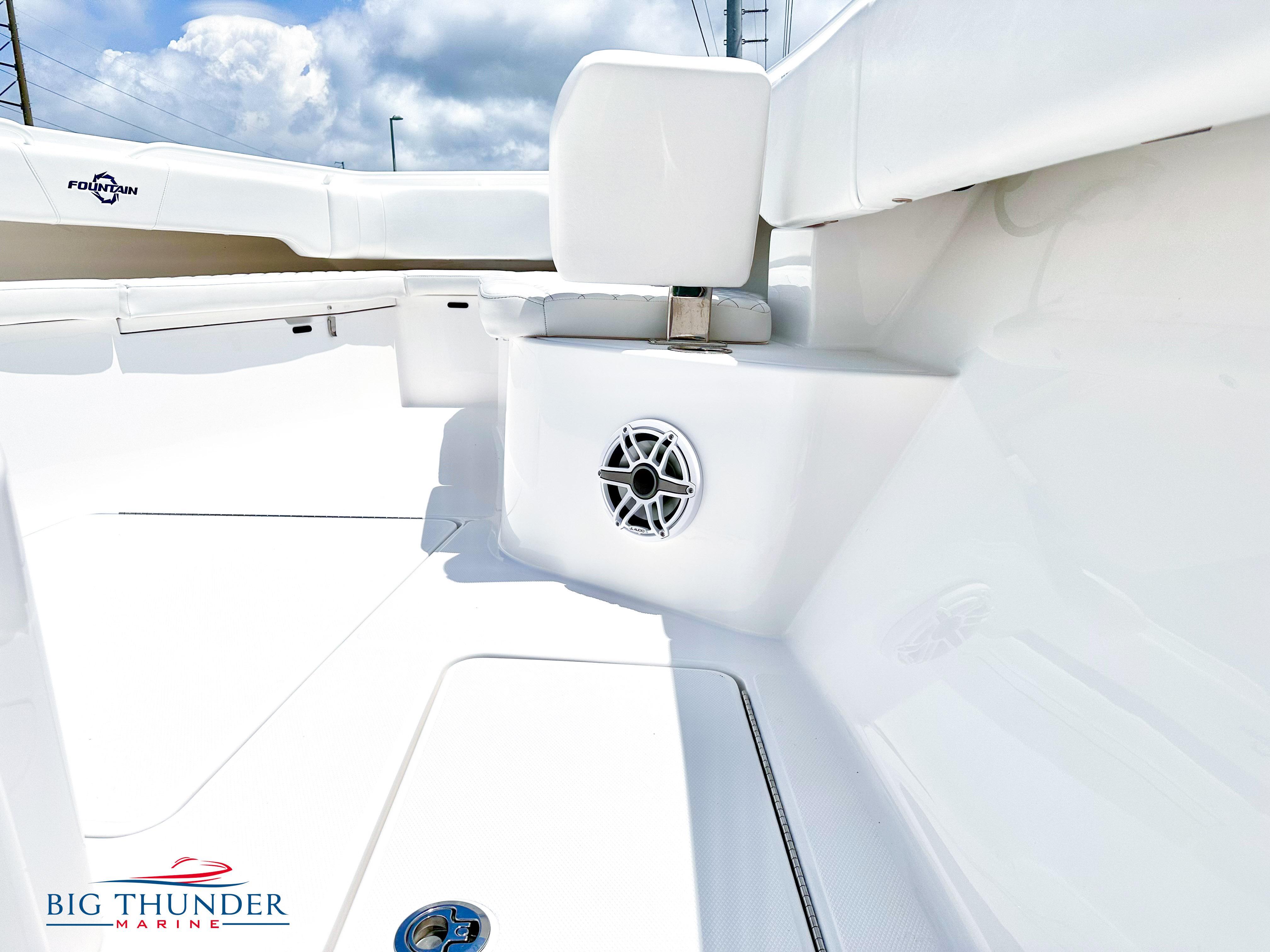 2023 Fountain 38 CC TripleMercury 400M Verado'sWhite Engine Pkg.Reverso Automatic Engine Flushing SystemBow ThrusterDTS ControlsMercury 380 K-Plane Hydraulic Trim TabsHydraulic SteeringWindlass/Anchor Rode Kit w/ Thru Hull Striker Plate - Polished SS Plow, 15' of 5/16" Galvanized Chain, 150' of 5/8" 8-Strand Braided RopeWhite Matrix w/ White Matrix Accent UpholsteryBlue Stitching & EmbroideryNavy T-Top Underside PaintGloss White Powder CoatingDual Garmin GPSmap 8616 16" DisplaysGMR Fantom 54 Radar215 AIS VHF Radio w/ AntennaB175H TransducerGarmin Full Function Hydraulic AutopilotDash Mounted GHC50 Autopilot ControlVesselView 903 DisplayStainless Steel Wheel w/ "Speed Knob"Additional Console Topper Glove Box USB OutletAdditional Dash USBRA 770 Touch Screen Entertainment Center w/ Built In WiFiJL Audio Speaker System w/ (8) 7.7" RGB LED., (2) 10" RGB LED Subs, 800W 8 Ch Amp & 400W Mono BlockWindshield WiperGemlux BA-12 Outrigger BasesGemlux 18' Hybrid Deluxe Collapsible Outrigger PolesElectric Reel Outlets.(2) Pressurized Aft LivewellsRemovable Transom Seat w/ Upholstered Seat Bottom & Backrest, Integral Welded & Upholstered ArmrestsStarboard Side Dive Door w/ LadderAft Electric SureShadeForward Cockpit SailshadeScreened Portlight w/Head Compartment w/ Ceramic Toilet, Overboard Discharge, Fresh/Raw Water Holding Tank. Fresh & Raw Water WashdownsTransom ShowerDash & Helm Seat CoversDoes not include trailer, new trailer quotes available separate. Financing and insurance options also available, all 2005 and newer model year trades considered. Call for special dealer pricing and demo availability.