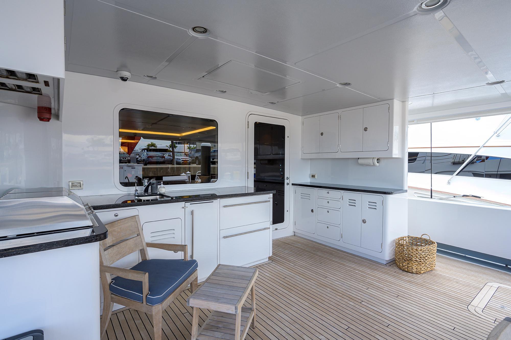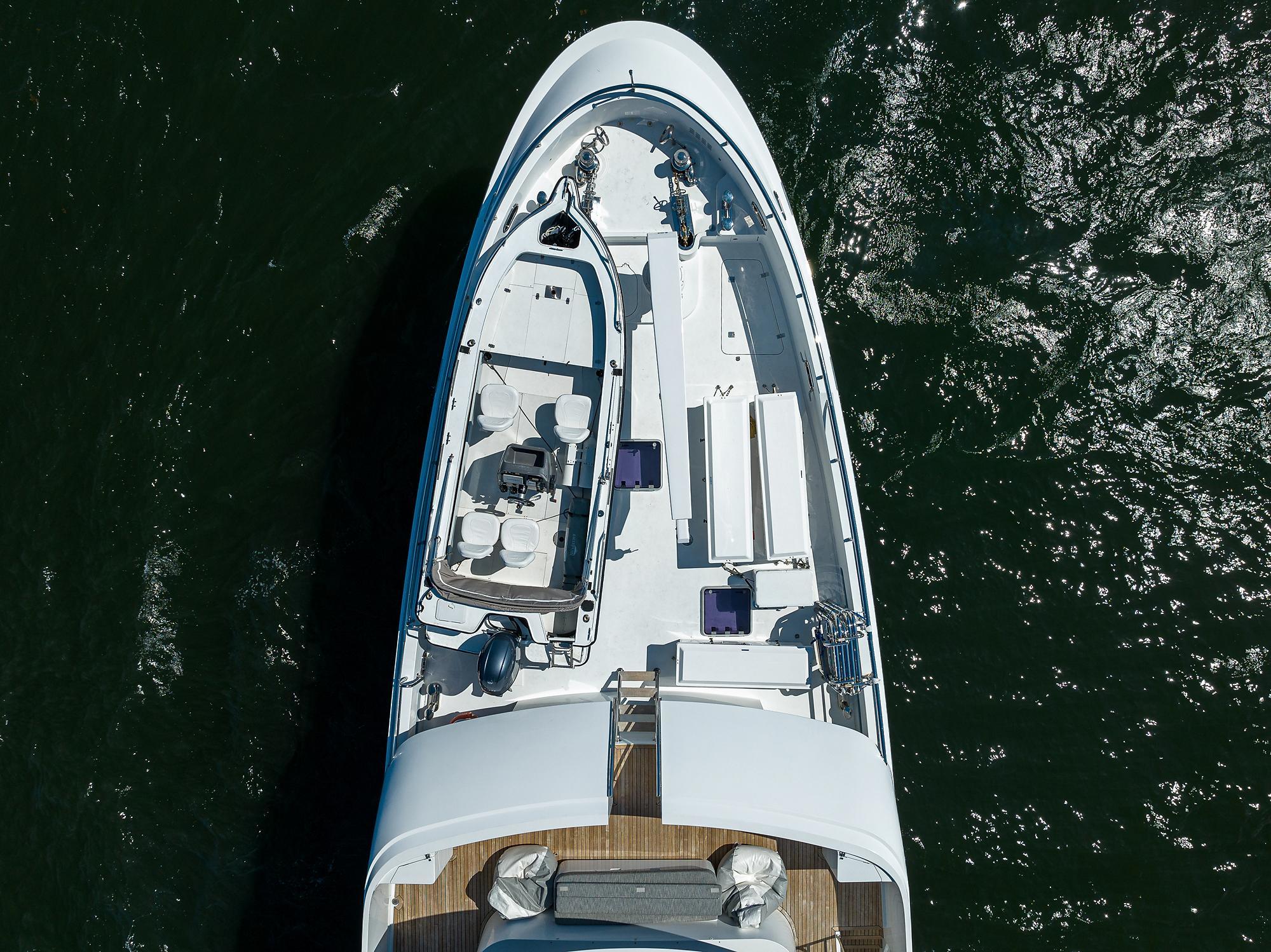 In 2017, Pacific Asian Enterprises (PAE) expanded their Nordhavn line with the addition of the Nordhavn 96. Being well received by the exploration yacht community, the Nordhavn 96 won the 2017 International Yacht and Aviation Award. Lacey Kay was the third in this line, just after the launching of Vivierae II. This new design bridged the gap between the large cruising exploration yacht and super-yacht categories. She was designed for the yachting enthusiast who seeks the super-yacht comfort and style in a boat that is still able to be managed with no or minimal crew, and travel big open oceans.The 96 series is based on the hull of the very successful Nordhavn 86, while incorporating a larger cockpit, lazarette, and better crew space below deck. The greater volume is also felt on the main deck level, in the dining and galley areas, and on the pilothouse deck with a large upper master stateroom. The greater length also allows for a more spacious fly bridge with hot tub.Lacey Kay was built by her current owner, making frequent trips to the yard during the build process. He opted for the additional fuel tanks, giving her an aggregate capacity of 9,575 gallons. With her increased waterline hull length, her fuel burn was actually slightly reduced from the 86. At her most efficient cruise speed of 9 knots, she burns about 10 gallons per hour per side, plus 5 gallons for the house generator, giving her an approximate 4,000 NM range; well enough for a Pacific crossing. According to Jeff Leishman, PAE's Chief of Design, extending her hull length has allowed Nordhavn to enhance the performance of, and increase stability and comfort in this well-proven hull design.