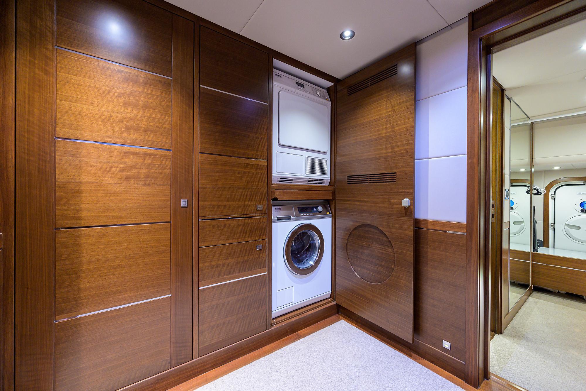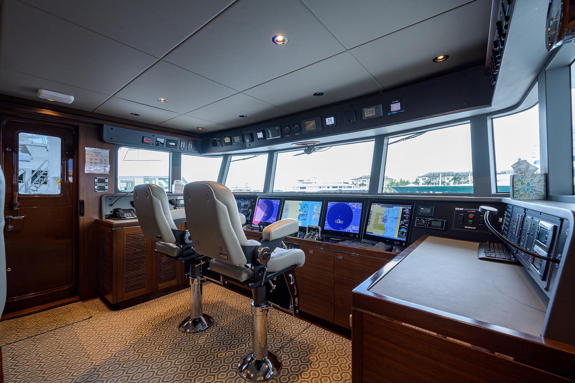 The boat is equipped with six large fuel tanks used primary as storage tanks, and a smaller-sized supply tank that provides fuel directly to the main engines and generators. The maximum aggregate capacity of these tanks is approximately 9,575 US gallons, distributed as follows:
