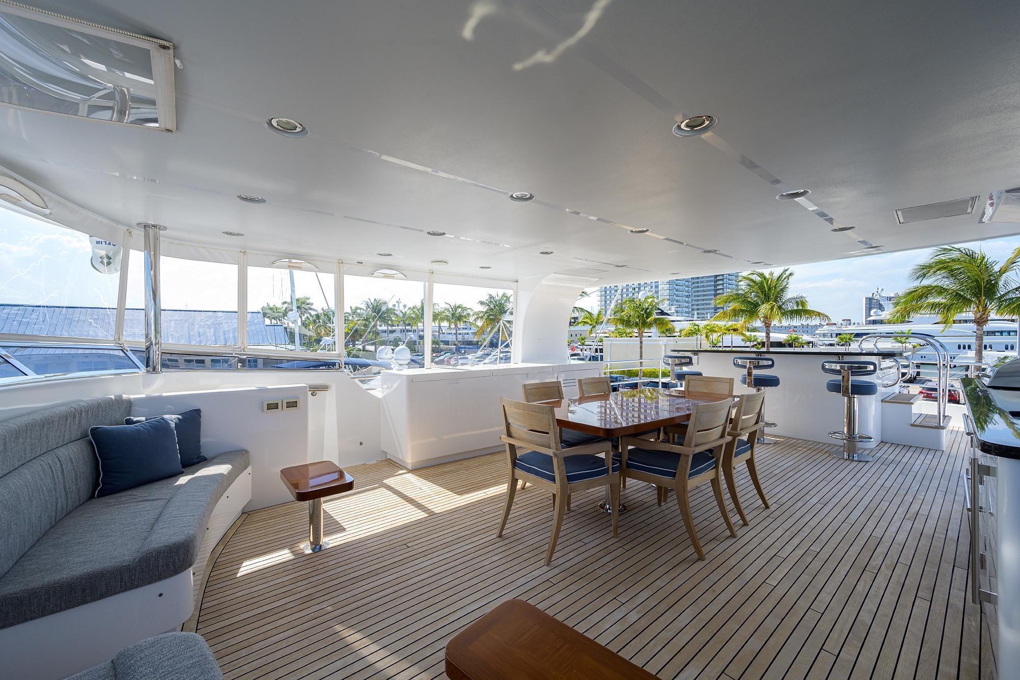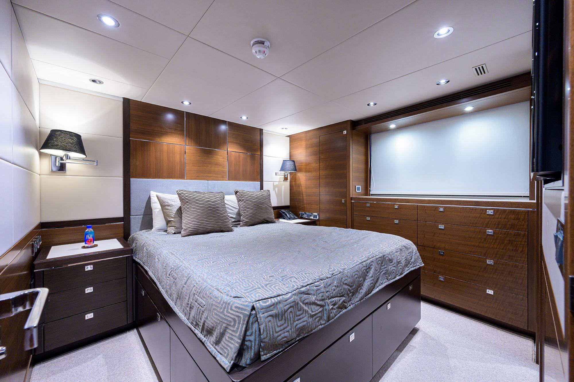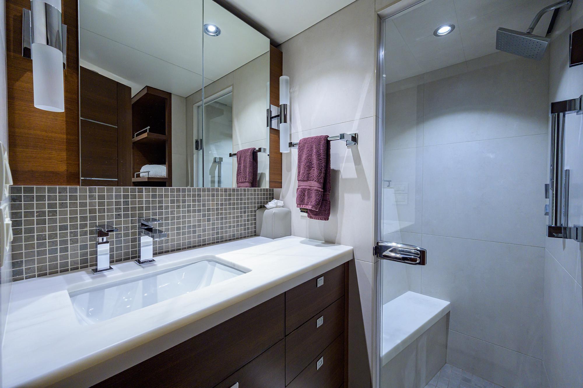 AccommodationsSleeps up to 9 guests in 5 staterooms with an upper deck owner's cabin, a full-beam VIP suite, and 2 convertible doubles. All cabins have entertainment centers and en suite bathroom facilities.