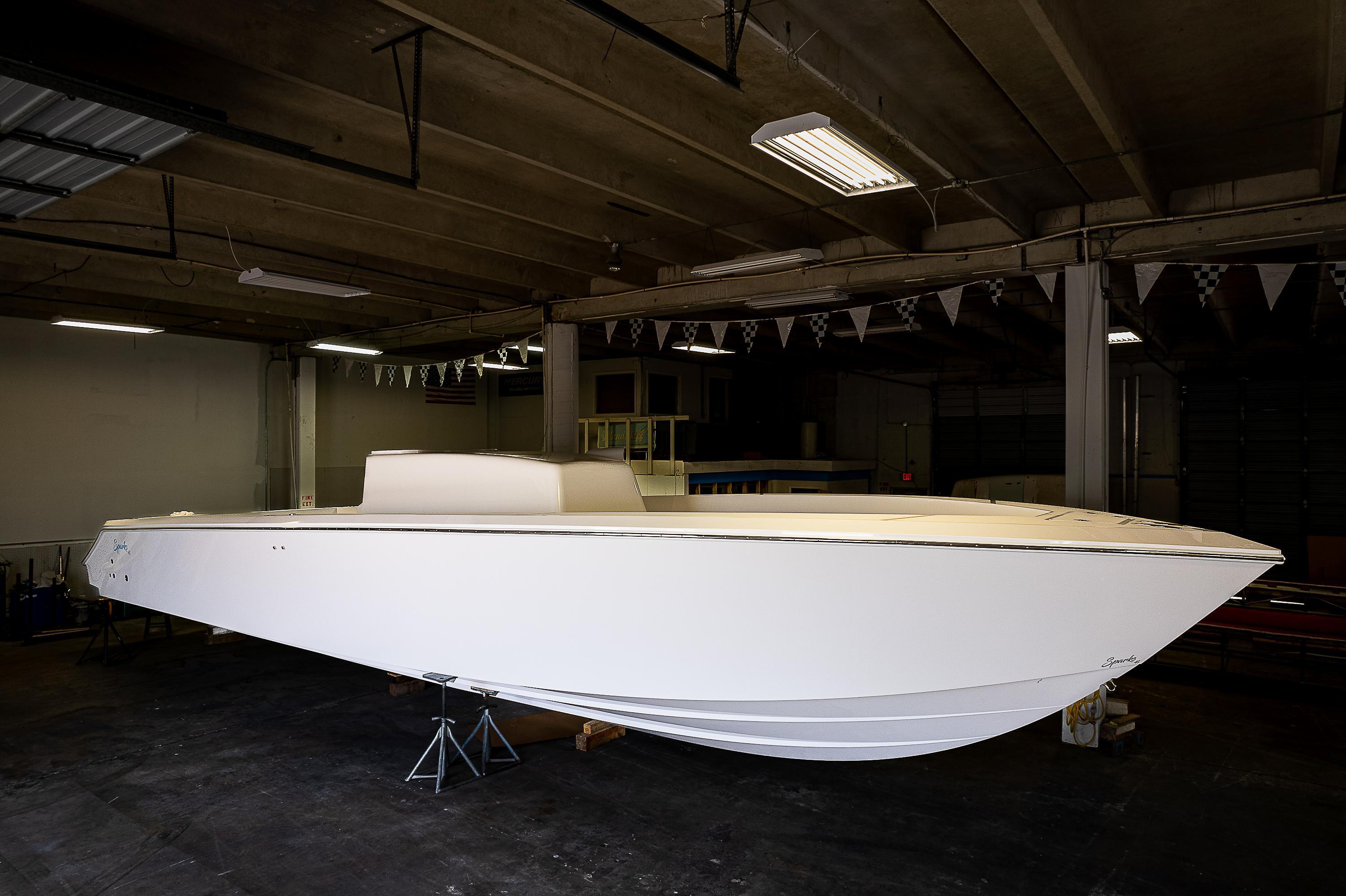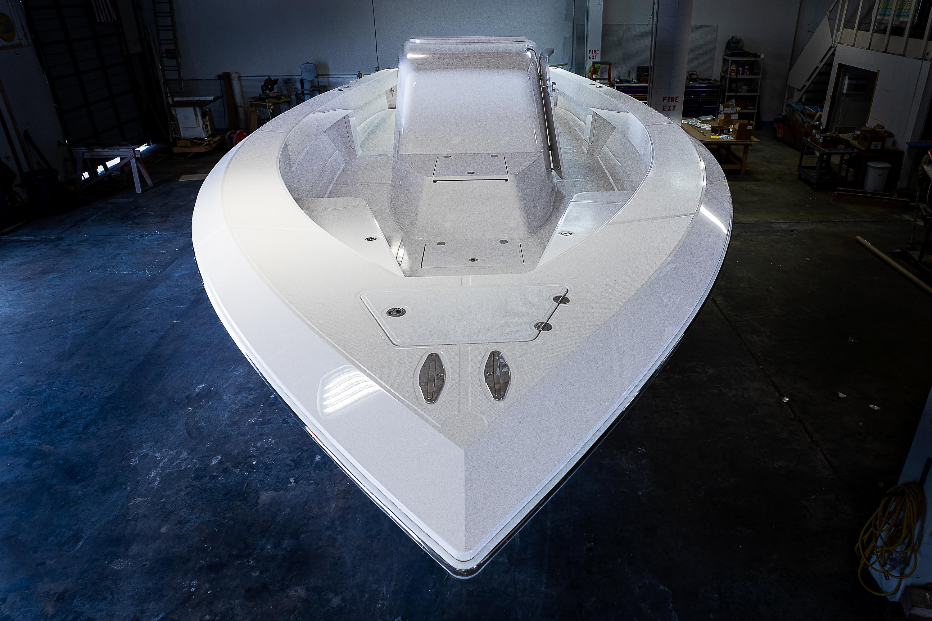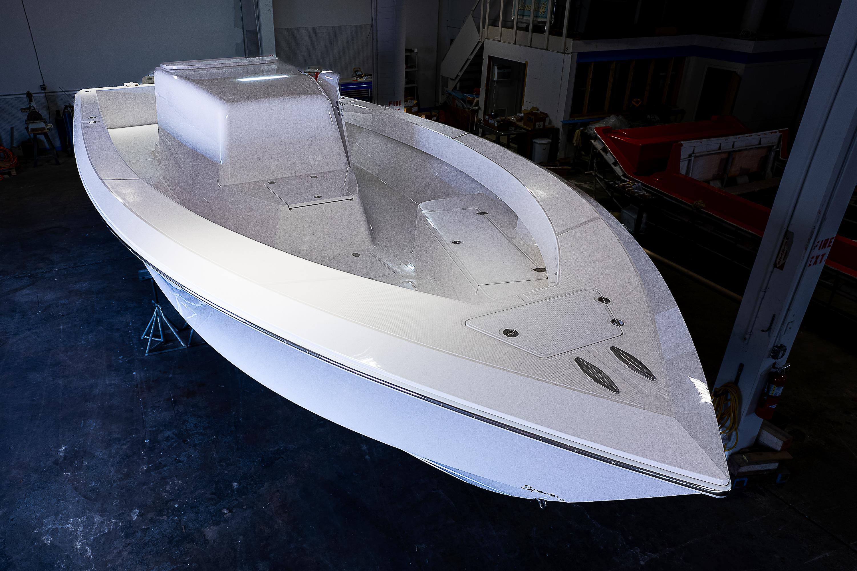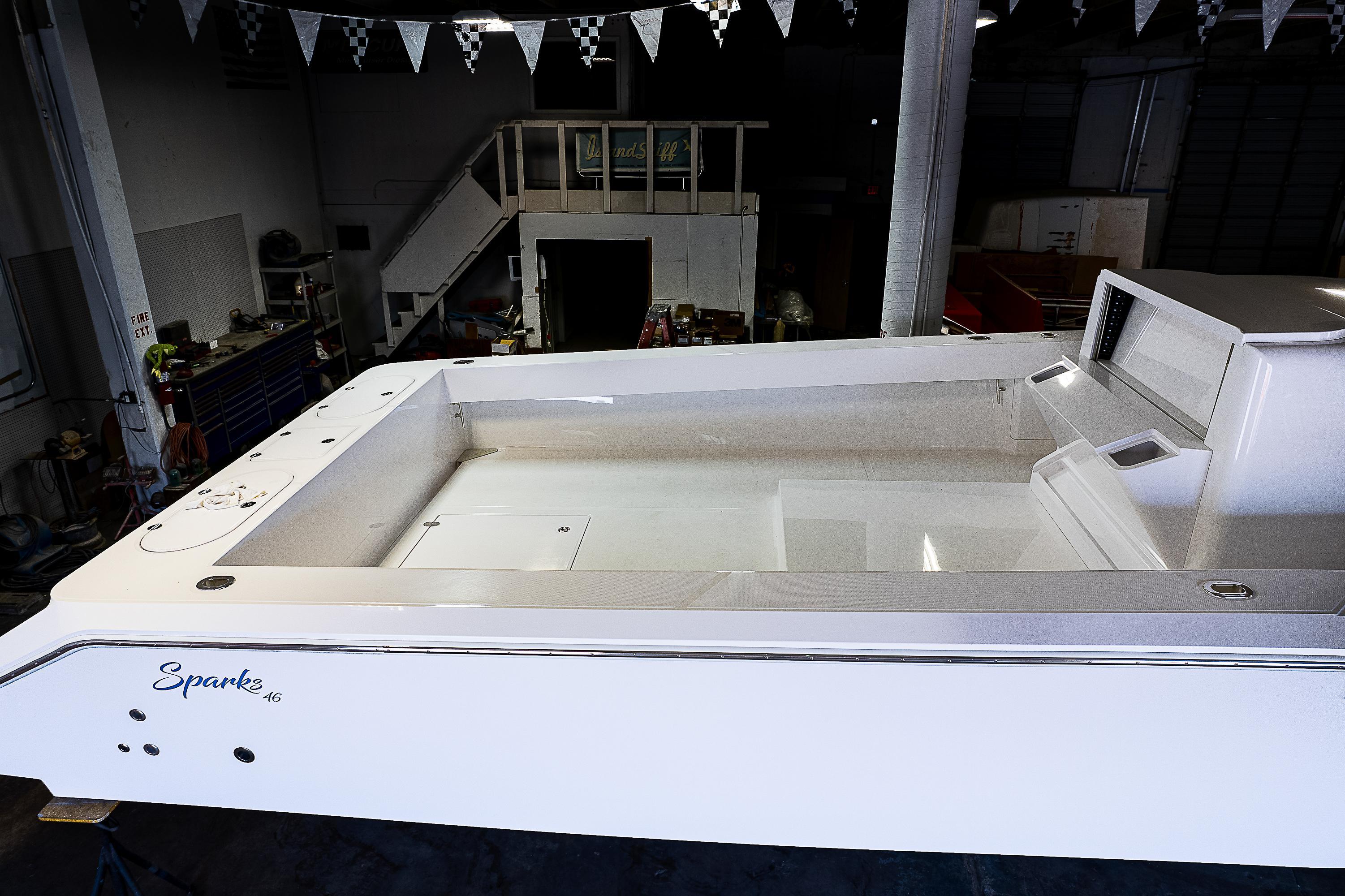 Standard FeaturesArmourflex CCP UV resistant Gelcoat throughout Vinylester and Isophathalic resins Vacuum bagged PVC foam core Solid fiberglass stringers All boats are constructed with a unique and specific laminate schedule using a variation of different Biaxial fiberglass materials Diamond patterned non skid throughout All interior deck hatches feature a high gloss Gelcoat finish All below deck hatches and boxes feature LED lighting throughout All hatches feature a double O-Ring gasket system, 316 stainless steel hardware as well as blind fasteners used throughout LED lighting throughout (2) 10' 316 stainless steel pop up bow cleats (4) 316 stainless steel cleats with blind fastened hawse pipes Forward anchor locker with built in anchor tube LED lighting and gel coat finish throughout Large aft bilge access hatch featuring below deck clear acrylic hatches with built in sea chest and optional Northern lights 9KW marine genset Self bailing cockpit with large stainless steel scuppers custom laser cut drain covers Heavy duty rub rail with or without stainless steel insert 1/4 ' thick corrosion protected aluminum fuel tanks ,glassed/foamed and mechanically fastened in place Stainless steel compression latches and gas shocks on all hatches (2) Large insulated forward seating fish boxes with optional chill plates featuring direct overboard drains Large Forward in deck storage box Large forward in deck storage box that can be an optional live well Large forward lounge seat with insulated drink box and optional chill plate Expansive walk in center console can be outfitted in different configurations and finishes Large mechanical space aft of console and below deck featuring Sea Keeper access as well as a pump room for additional equipment Large center lined helm with lockable acrylic electronics slide cover and room for (3) 17" MFD displays , storage glove boxes on both sides of helm Raised helm deck platform for a multitude of seating options (2) Large 65 gal LED lit transom live wells with bait prep sink in between are built into the euro-style transom. Custom pressurized live well sea chest with multiple pump options available Sparks Boat Works offers an extensive amount of customized rigging and equipment options to choose from