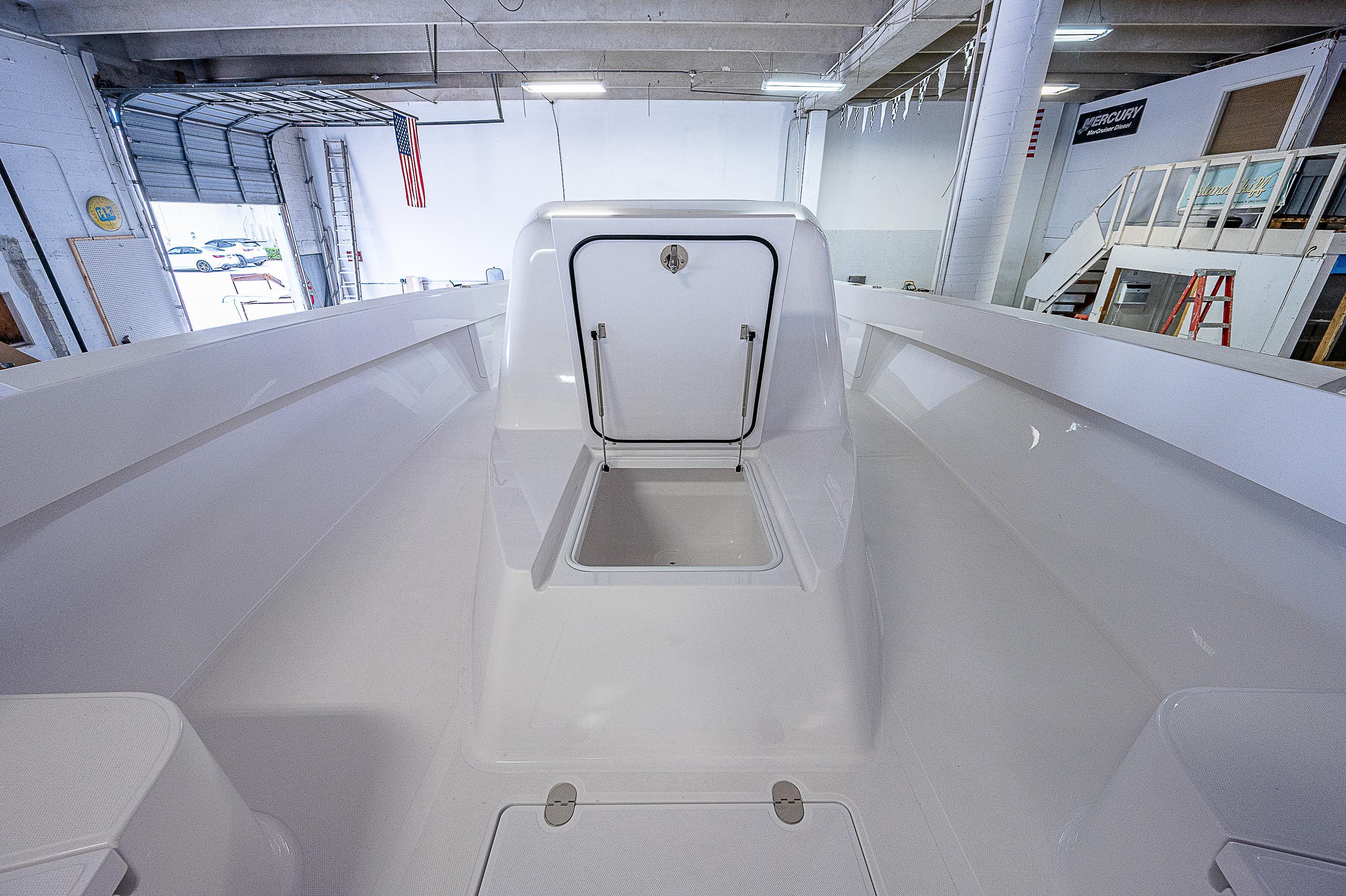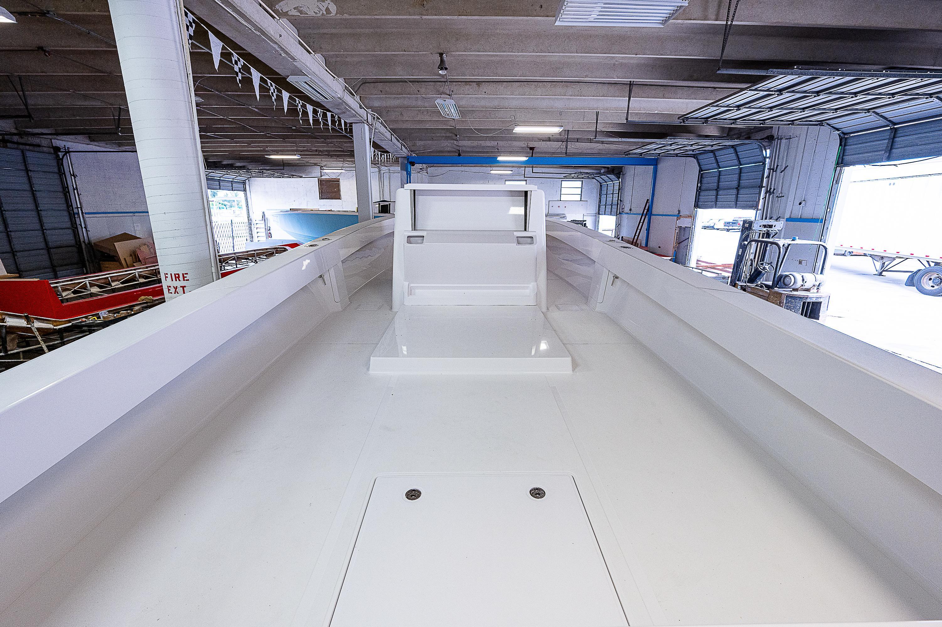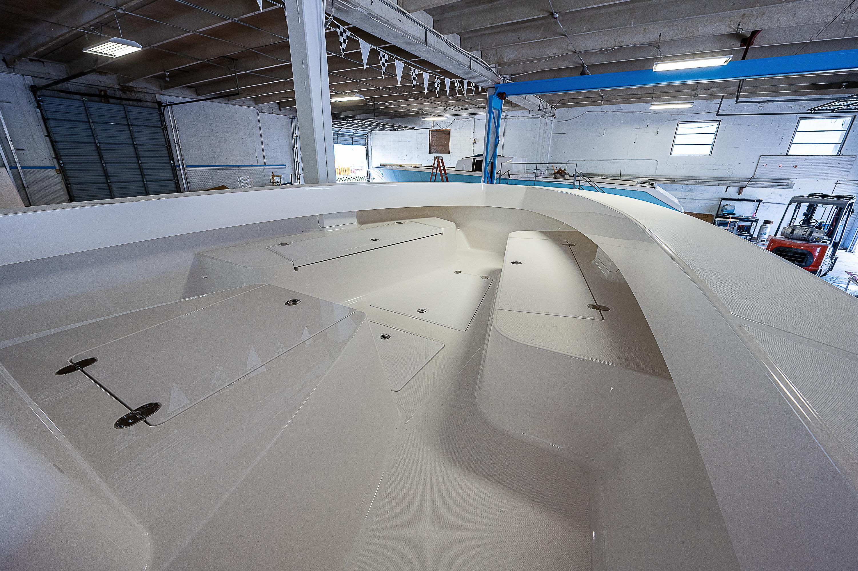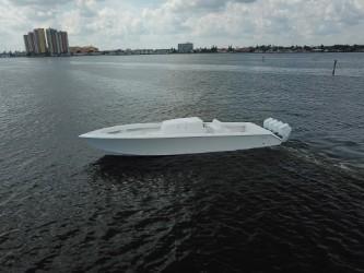 Standard FeaturesArmourflex CCP UV resistant Gelcoat throughout Vinylester and Isophathalic resins Vacuum bagged PVC foam core Solid fiberglass stringers All boats are constructed with a unique and specific laminate schedule using a variation of different Biaxial fiberglass materials Diamond patterned non skid throughout All interior deck hatches feature a high gloss Gelcoat finish All below deck hatches and boxes feature LED lighting throughout All hatches feature a double O-Ring gasket system, 316 stainless steel hardware as well as blind fasteners used throughout LED lighting throughout (2) 10' 316 stainless steel pop up bow cleats (4) 316 stainless steel cleats with blind fastened hawse pipes Forward anchor locker with built in anchor tube LED lighting and gel coat finish throughout Large aft bilge access hatch featuring below deck clear acrylic hatches with built in sea chest and optional Northern lights 9KW marine genset Self bailing cockpit with large stainless steel scuppers custom laser cut drain covers Heavy duty rub rail with or without stainless steel insert 1/4 ' thick corrosion protected aluminum fuel tanks ,glassed/foamed and mechanically fastened in place Stainless steel compression latches and gas shocks on all hatches (2) Large insulated forward seating fish boxes with optional chill plates featuring direct overboard drains Large Forward in deck storage box Large forward in deck storage box that can be an optional live well Large forward lounge seat with insulated drink box and optional chill plate Expansive walk in center console can be outfitted in different configurations and finishes Large mechanical space aft of console and below deck featuring Sea Keeper access as well as a pump room for additional equipment Large center lined helm with lockable acrylic electronics slide cover and room for (3) 17" MFD displays , storage glove boxes on both sides of helm Raised helm deck platform for a multitude of seating options (2) Large 65 gal LED lit transom live wells with bait prep sink in between are built into the euro-style transom. Custom pressurized live well sea chest with multiple pump options available Sparks Boat Works offers an extensive amount of customized rigging and equipment options to choose from