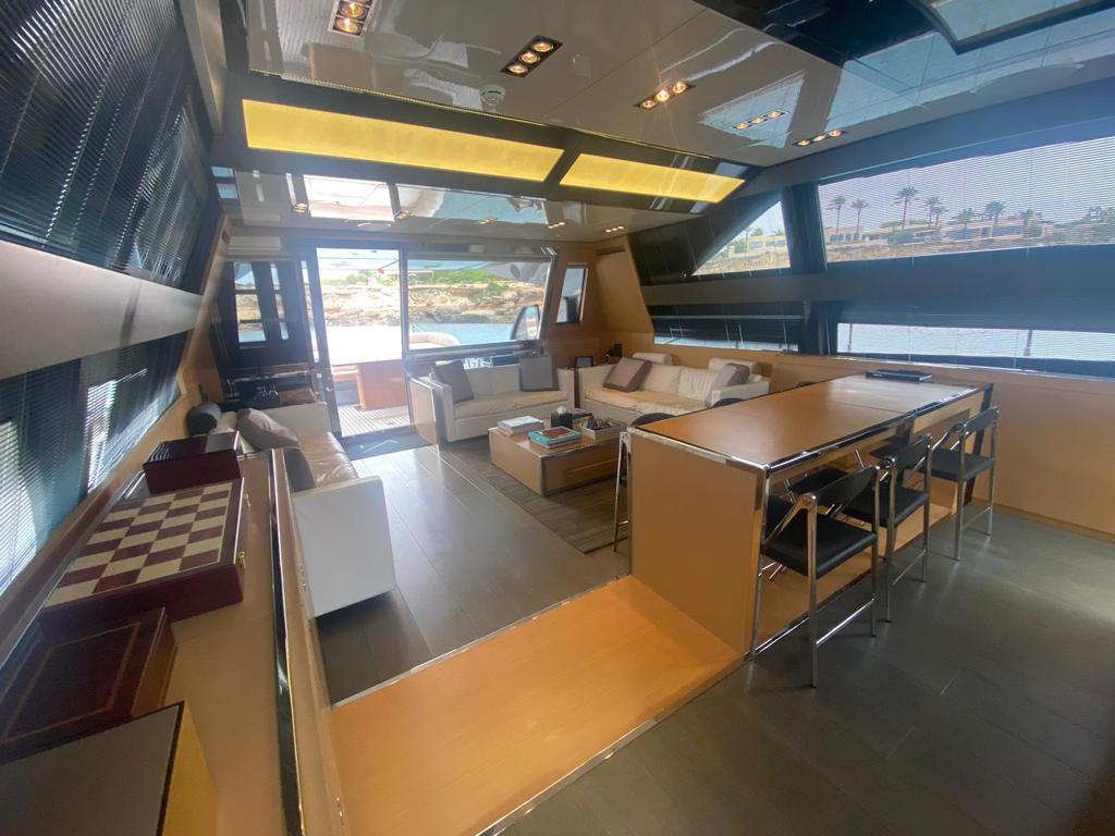Built in Italy and delivered in 2011. It is one of the prestigious Domino 86 models. Her top speed is 38.0 kn and she boasts a maximum range of 370 nm cruising speed. with power provided by twin MTU diesel engines. She can accommodate up to 8 guests in 4 cabins, with 3 /4 crew members looking forward to their every need. She has a gross tonnage of 94.0 GT and a beam of 6.2m. It was designed by Officina Italiana Design, who also designed the interior. The naval architecture was developed by Riva. She is built with a teak deck, GRP hull and GRP superstructure.
